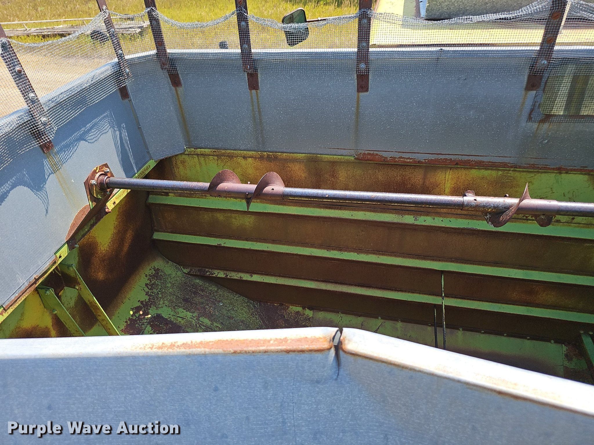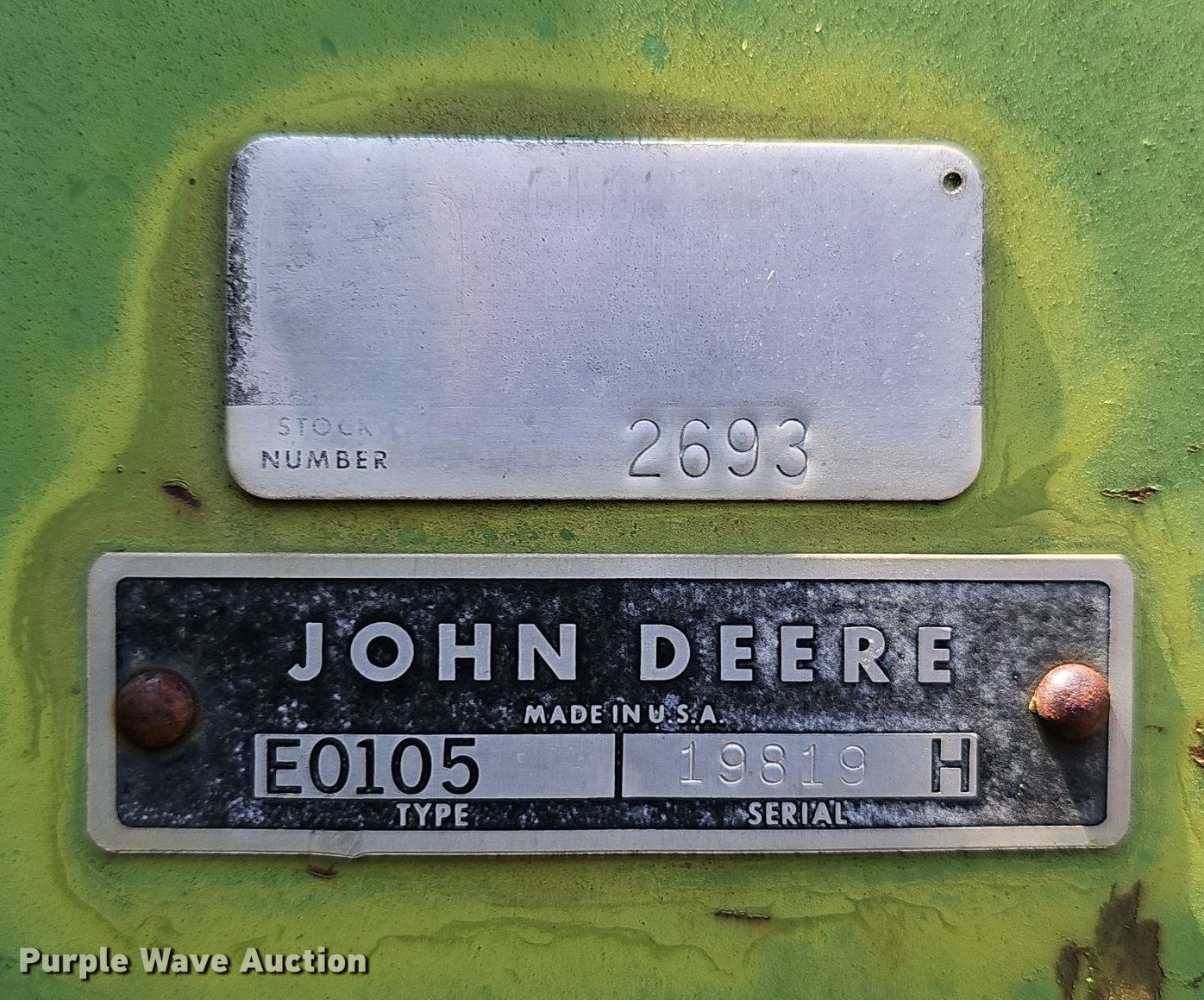 1969 John Deere 105 combine. Engine hours: 4,012 on meter, Serial: 19819. Engine Cylinders: 6, Fuel type: Gas. Transmission Manual, 4F - 1R. Features Chaff spreader, Platform head Width: 18.5', Reel: Finger, Bat reel Length: 19' 6". Tires Front: 23.1-26, Rear: 10.00-16. Notes Parts missing, Flat tires, Non-operational unit. 1969 John Deere 105 combine Engine hours: 2,789 on meter, Serial: 21014H. Engine Cylinders: 6, Fuel type: Gas. Transmission Manual, 4F - 1R. Features Chaff spreader, Unloading auger length: 11', Platform head Width: 20'. Tires Front: 23.1-26. Notes Parts missing, Flat tires, Non-operational unit. 171-199 12 Rd. Phillipsburg, KS 67661
