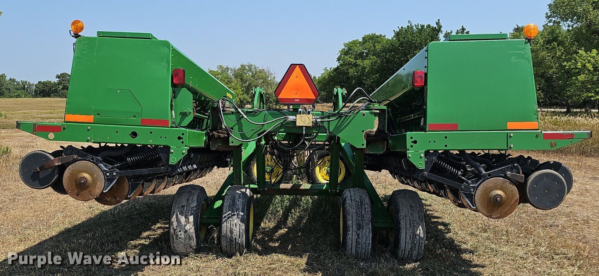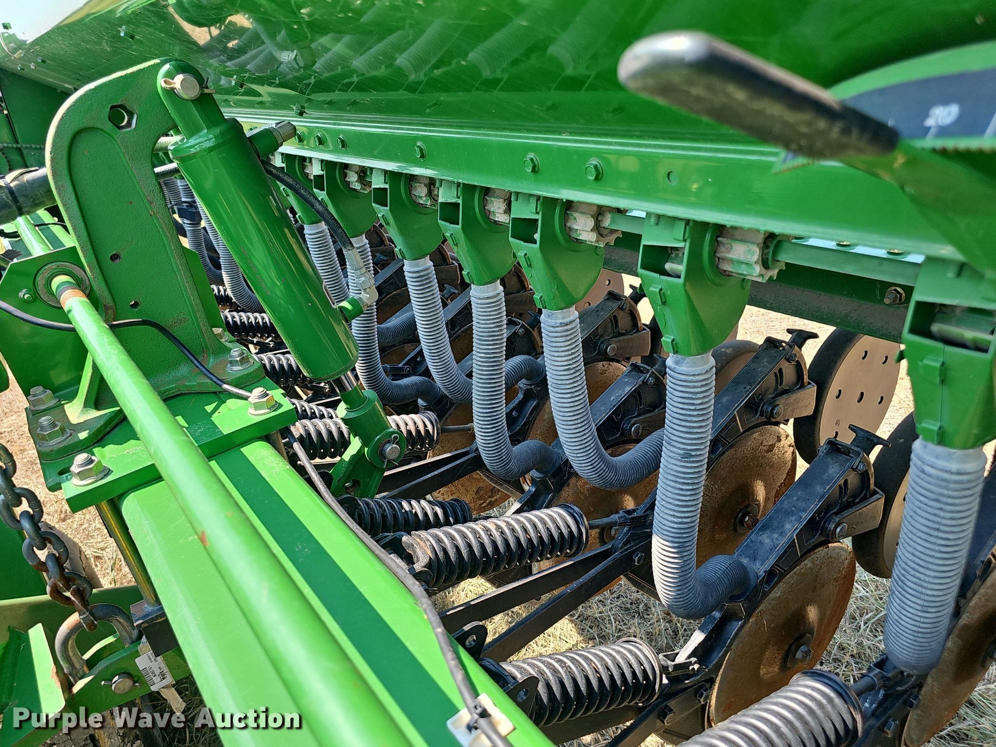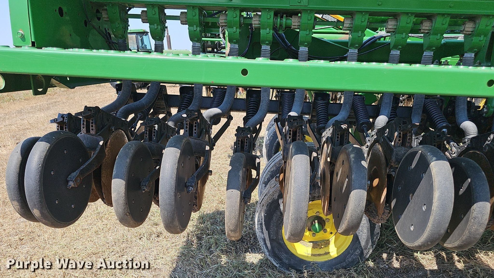 Purple Wave is selling a used Grain Drill or Seeder in Kansas. This item is a John Deere 455 grain drill with the following: Width: 24', Row units: 40, Row spacing: 7", Serial: N00455X705191