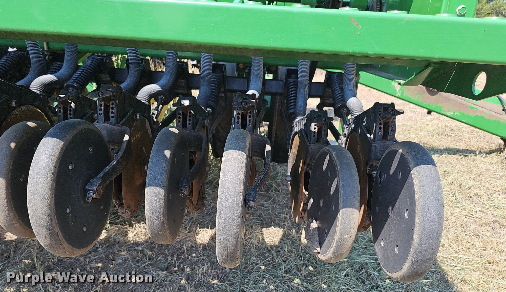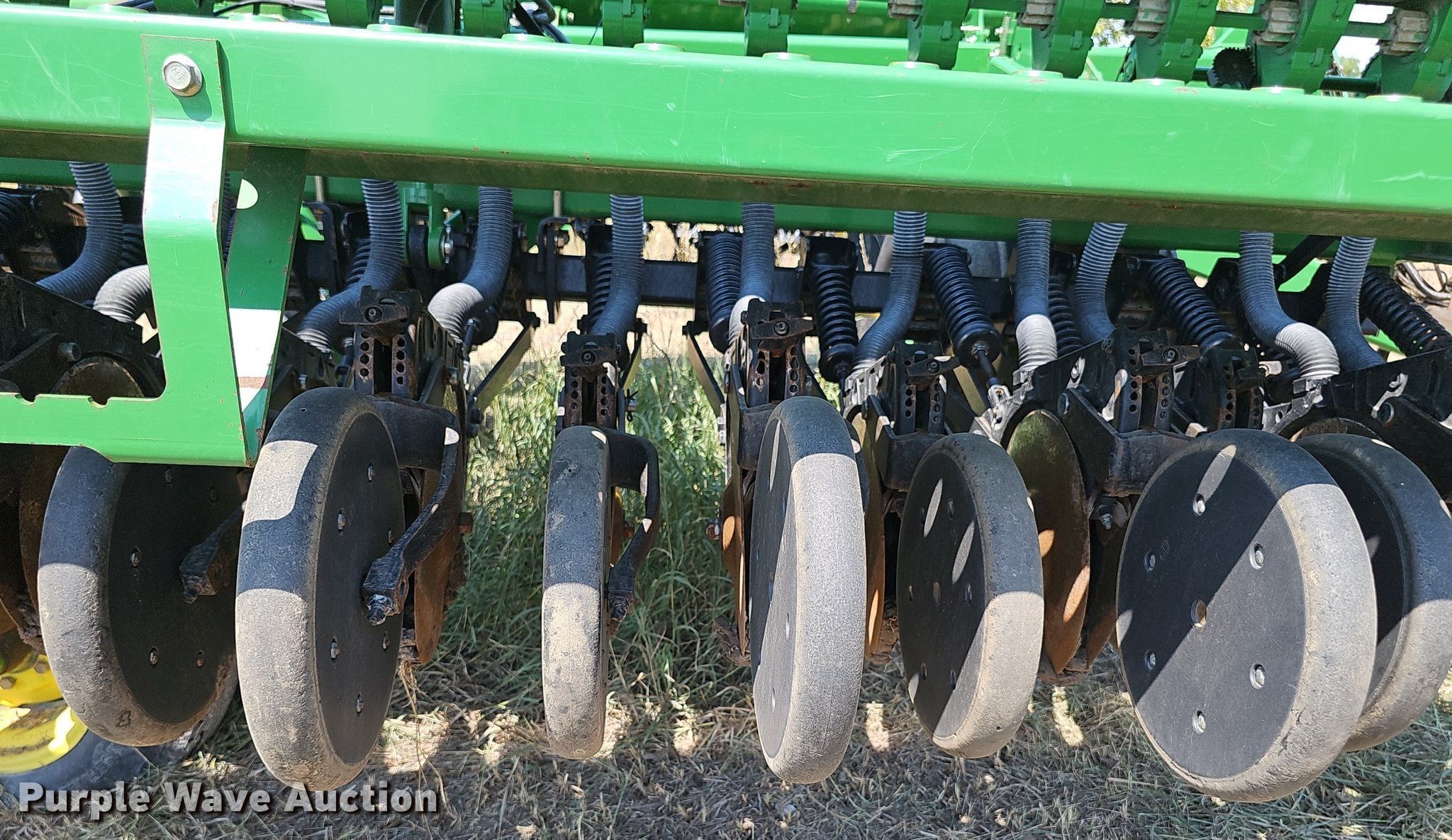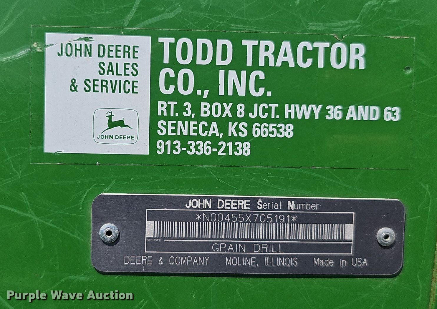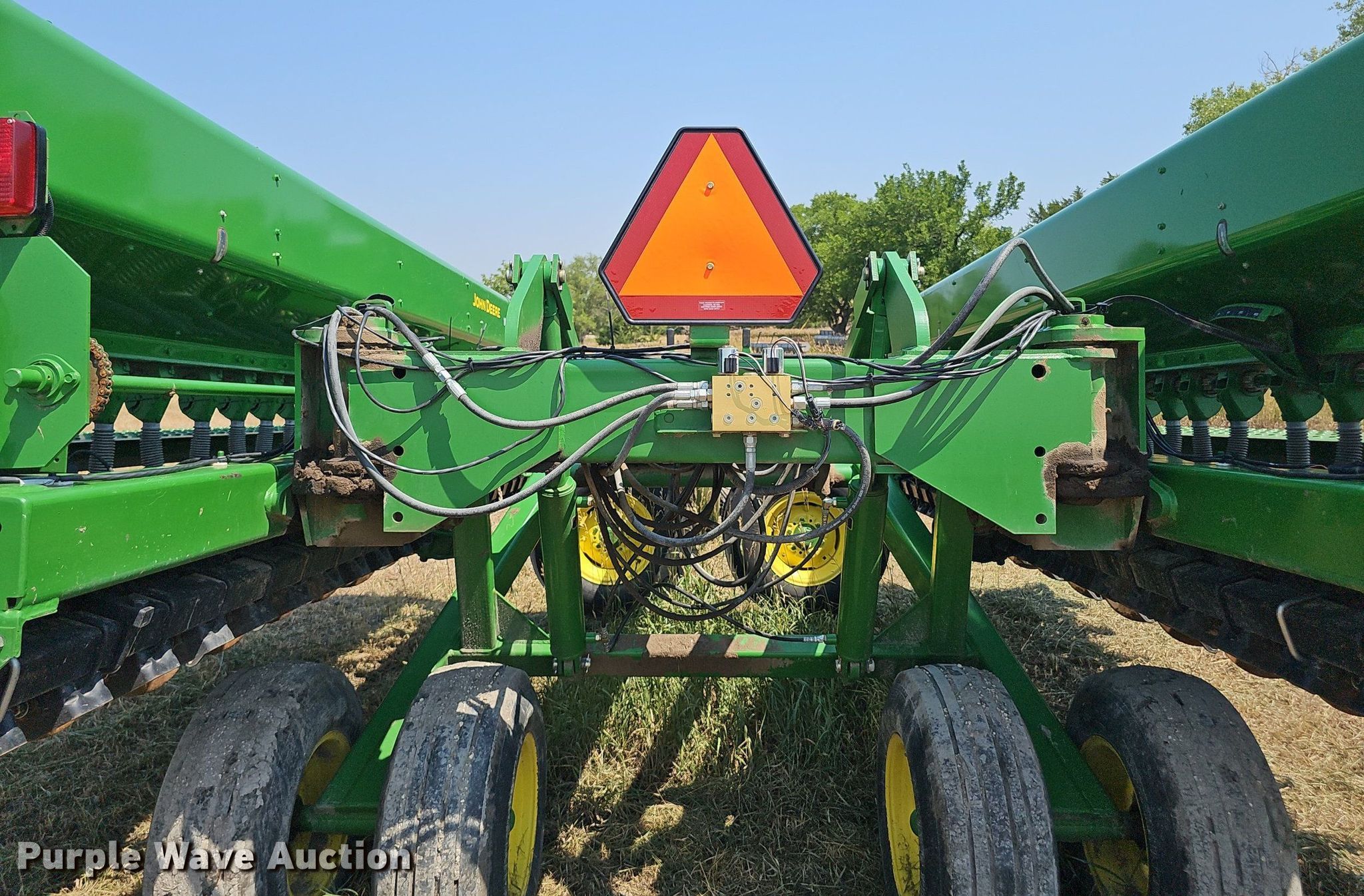 Purple Wave is selling a used Grain Drill or Seeder in Kansas. This item is a John Deere 455 grain drill with the following: Width: 24', Row units: 40, Row spacing: 7", Serial: N00455X705191