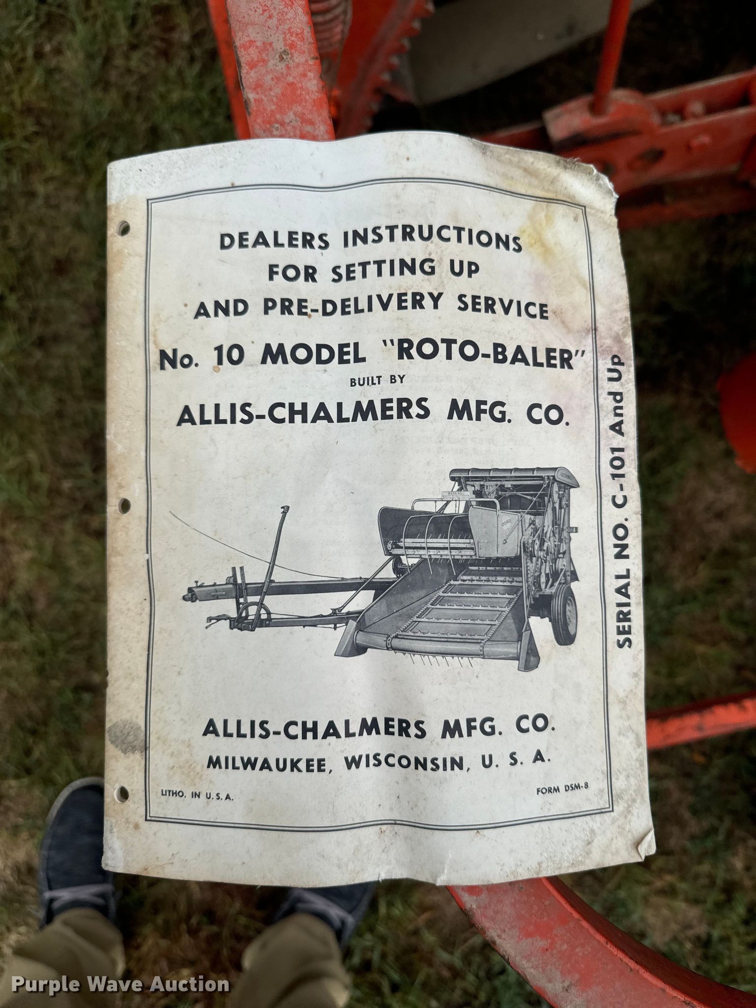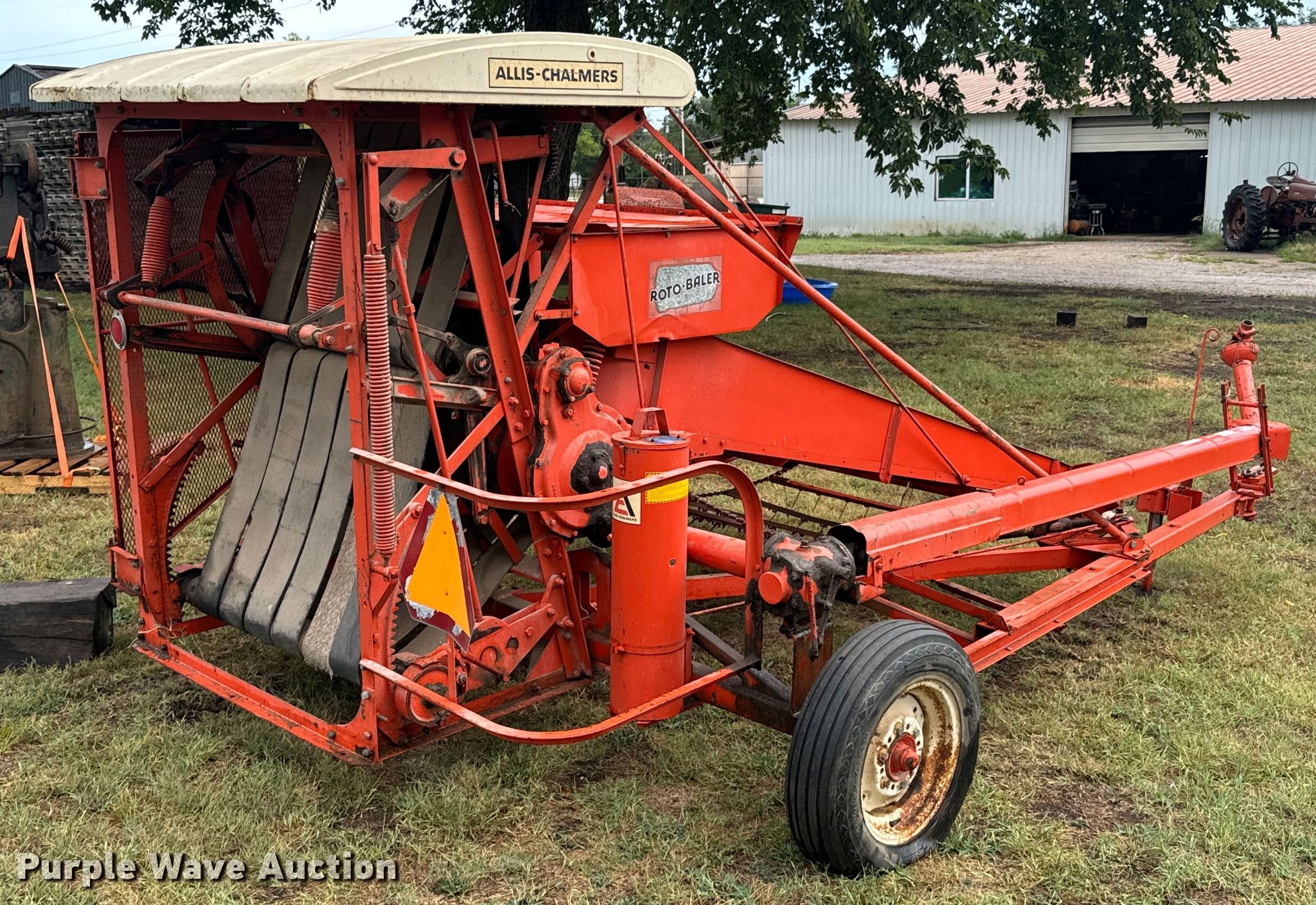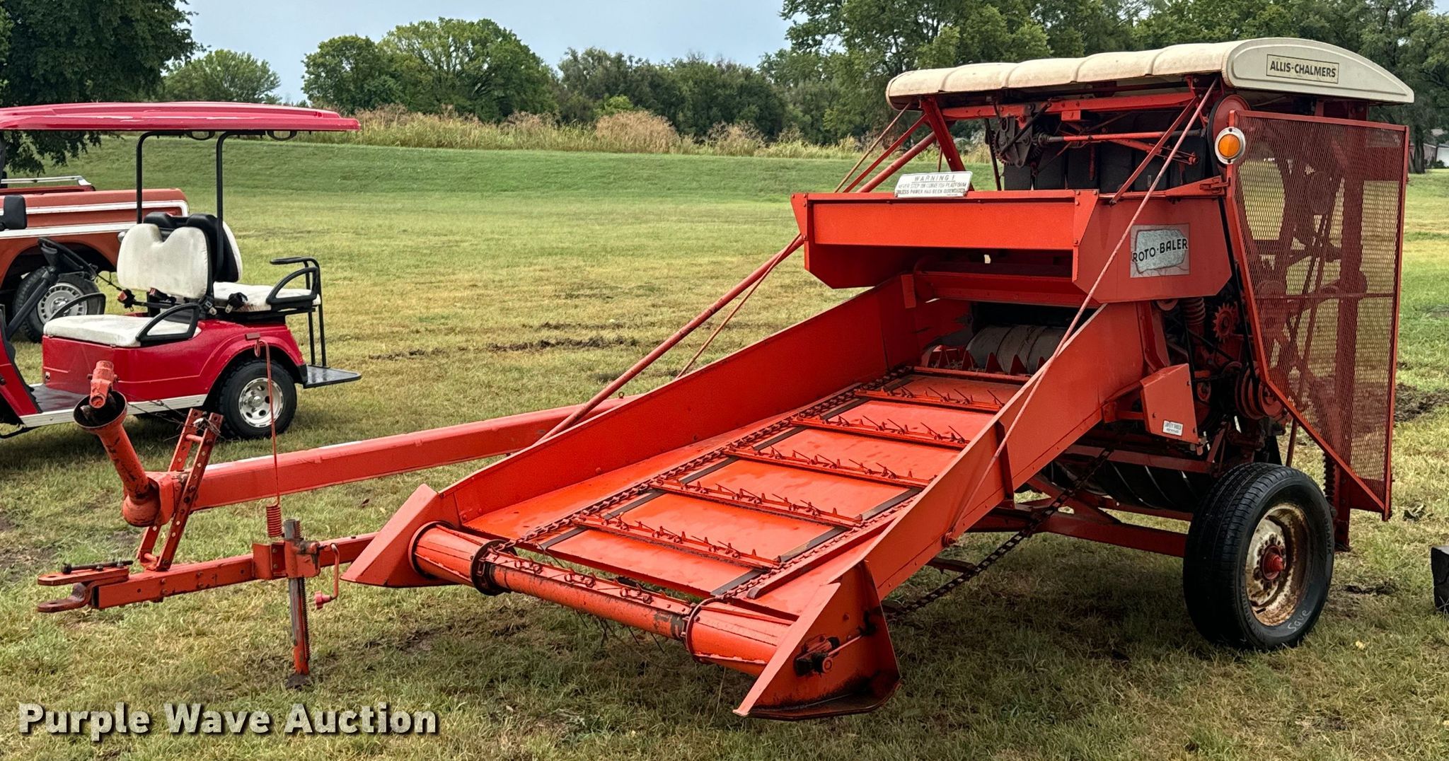 Purple Wave is selling a used Round Baler in Kansas. This item is a Allis Chalmers Roto-Baler No. 10 round baler with the following: Serial: 76629