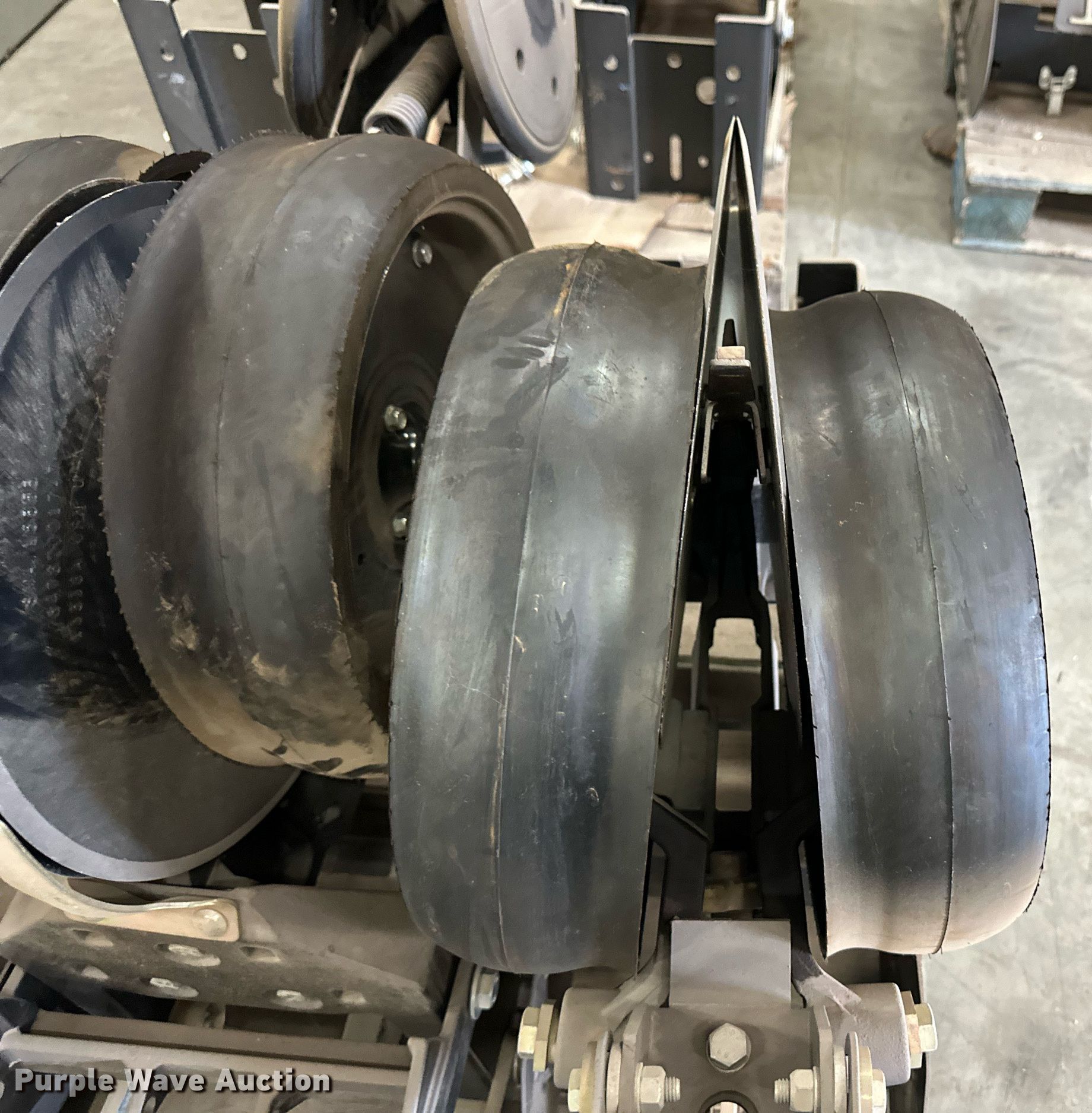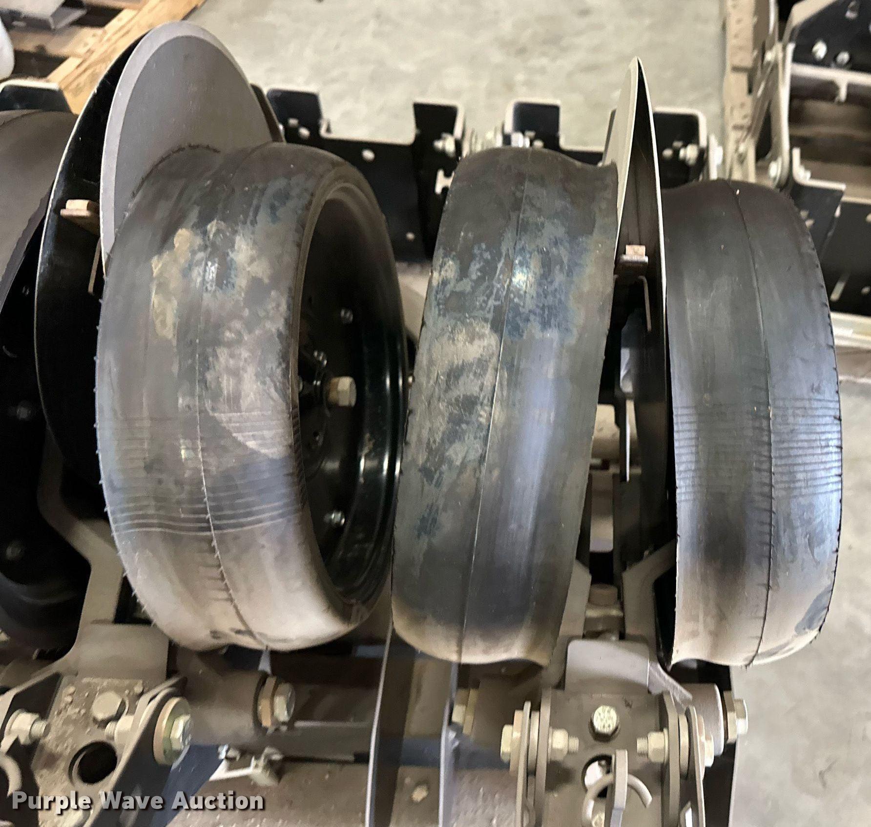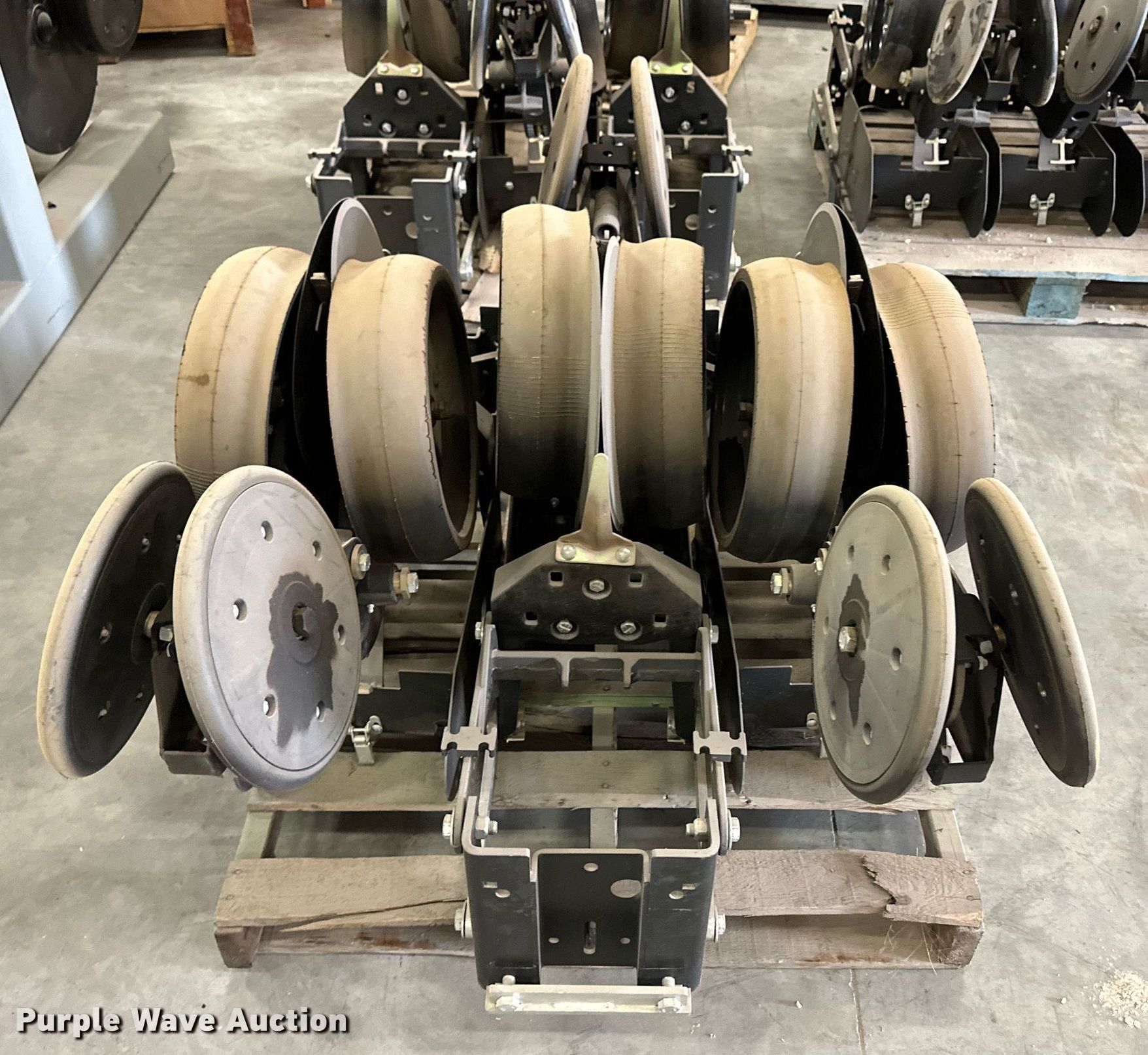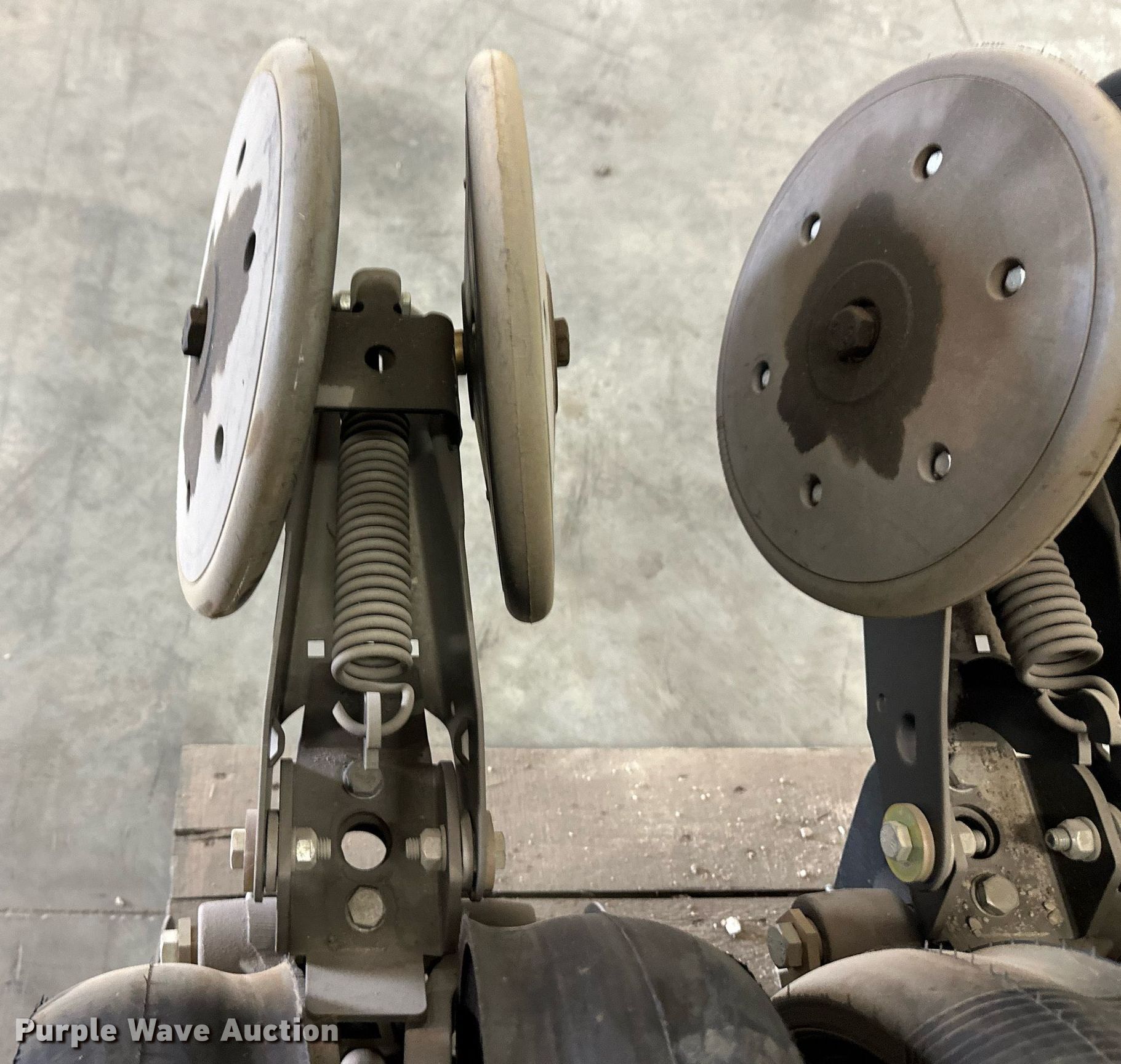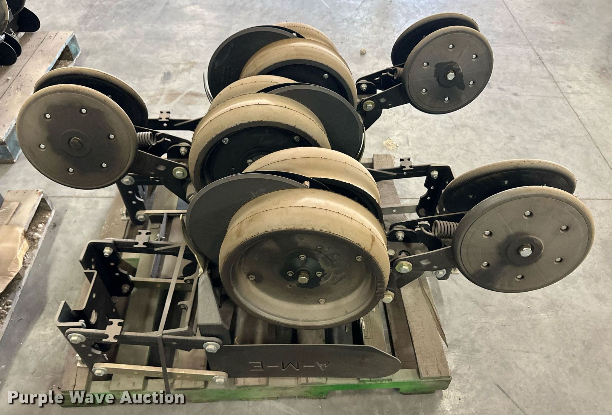 Purple Wave is selling a used Planter or Seeder Attach. in Kansas. This item is a (12) AME planter row units with the following: Shanks, 3.5mm x 15" seed disc openers, Seed tube guard-scraper, Hopper support panel, Shank mounting plate, Quick adjust gauge wheel arms, Walking gauge wheels, Tire size: 4.5" x 16", Quick adjust closing wheel arm, Rubber tires