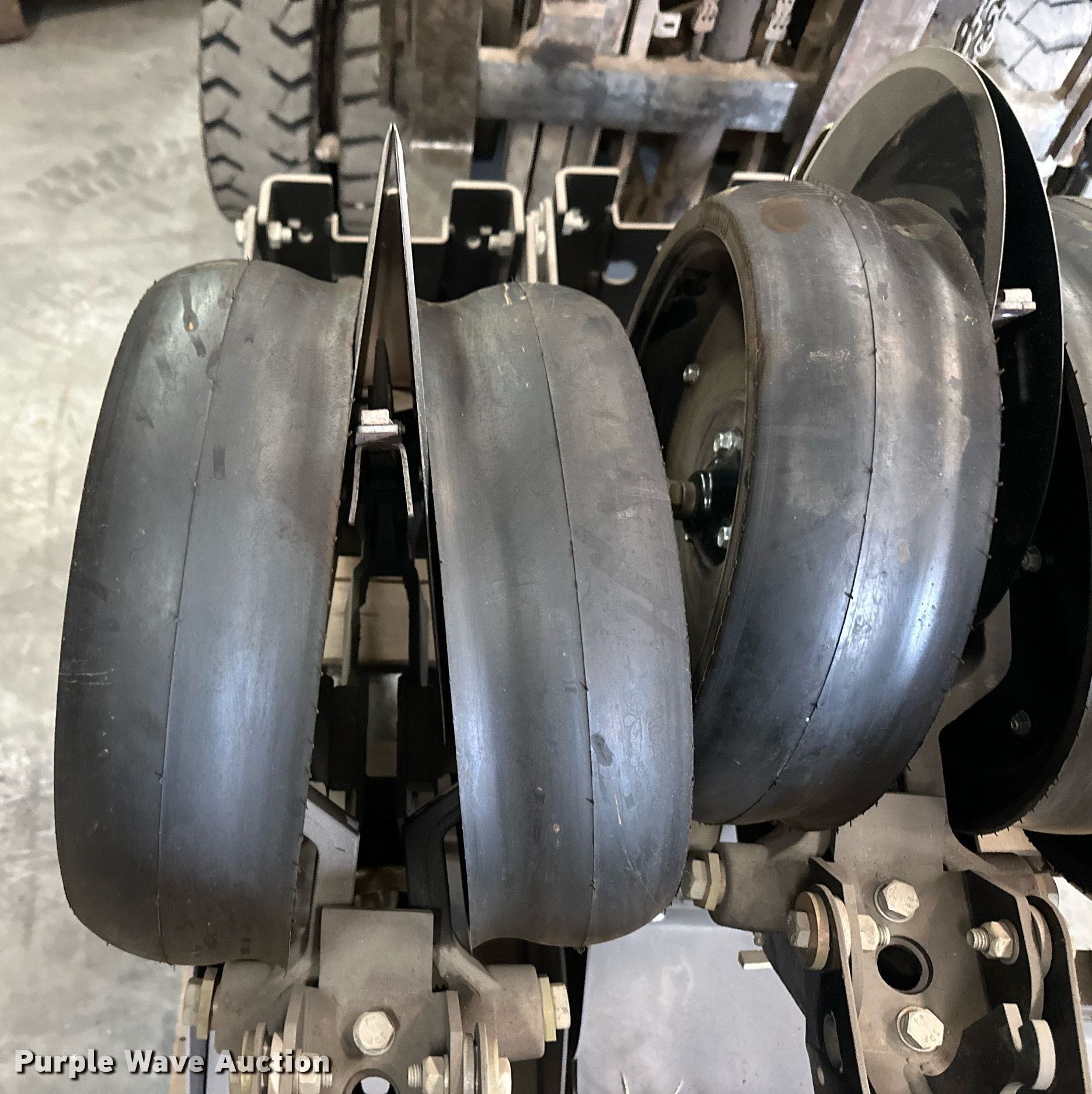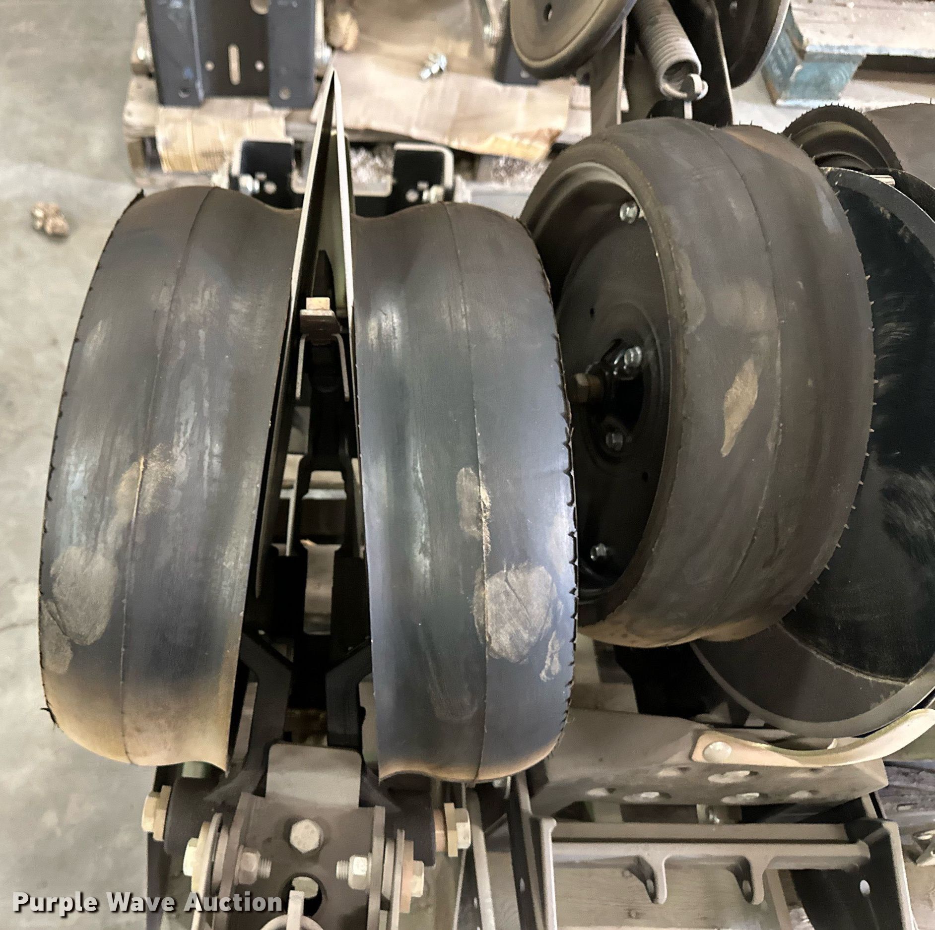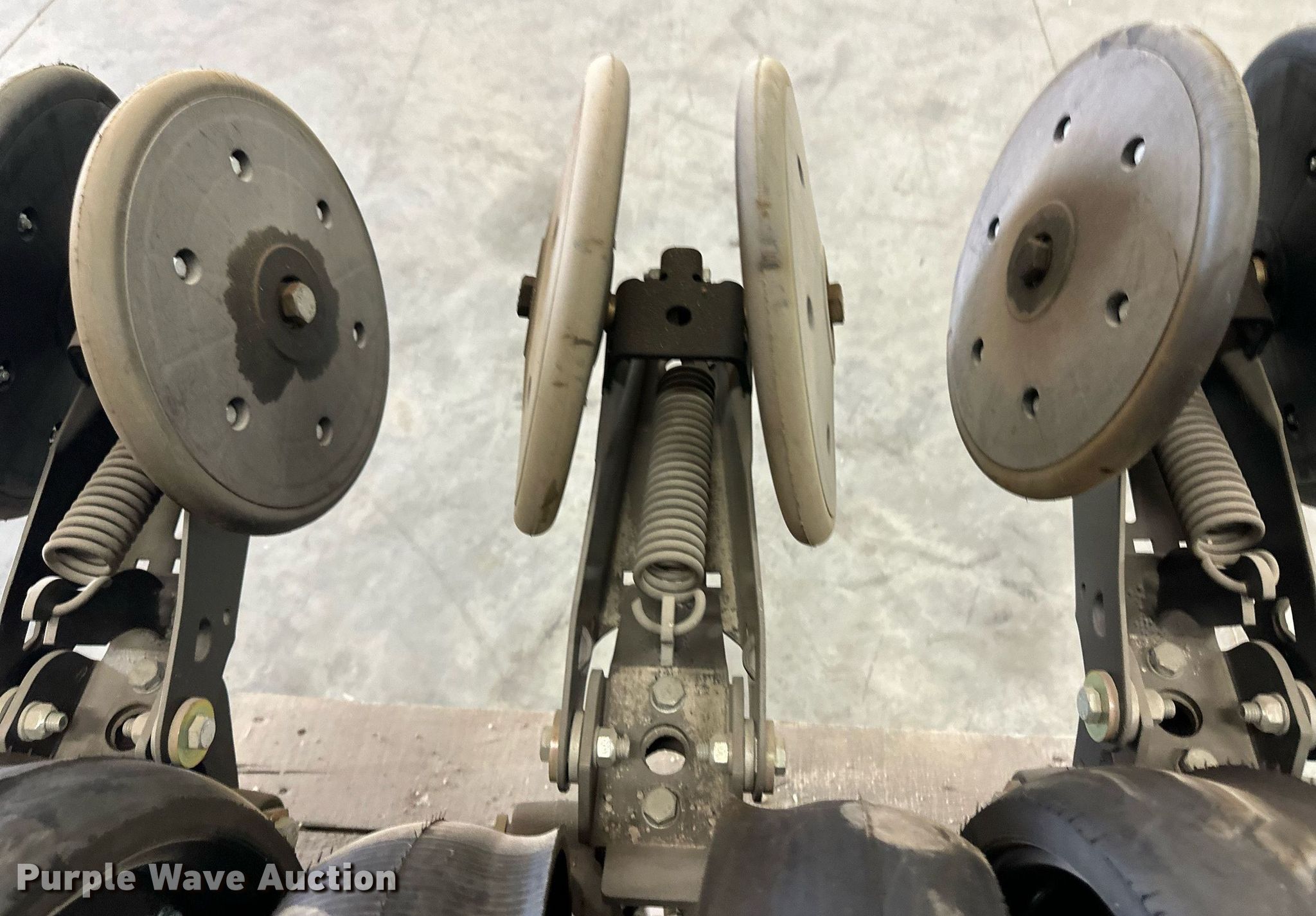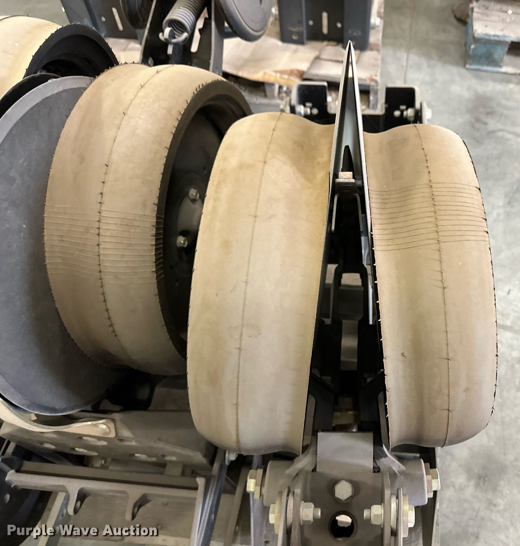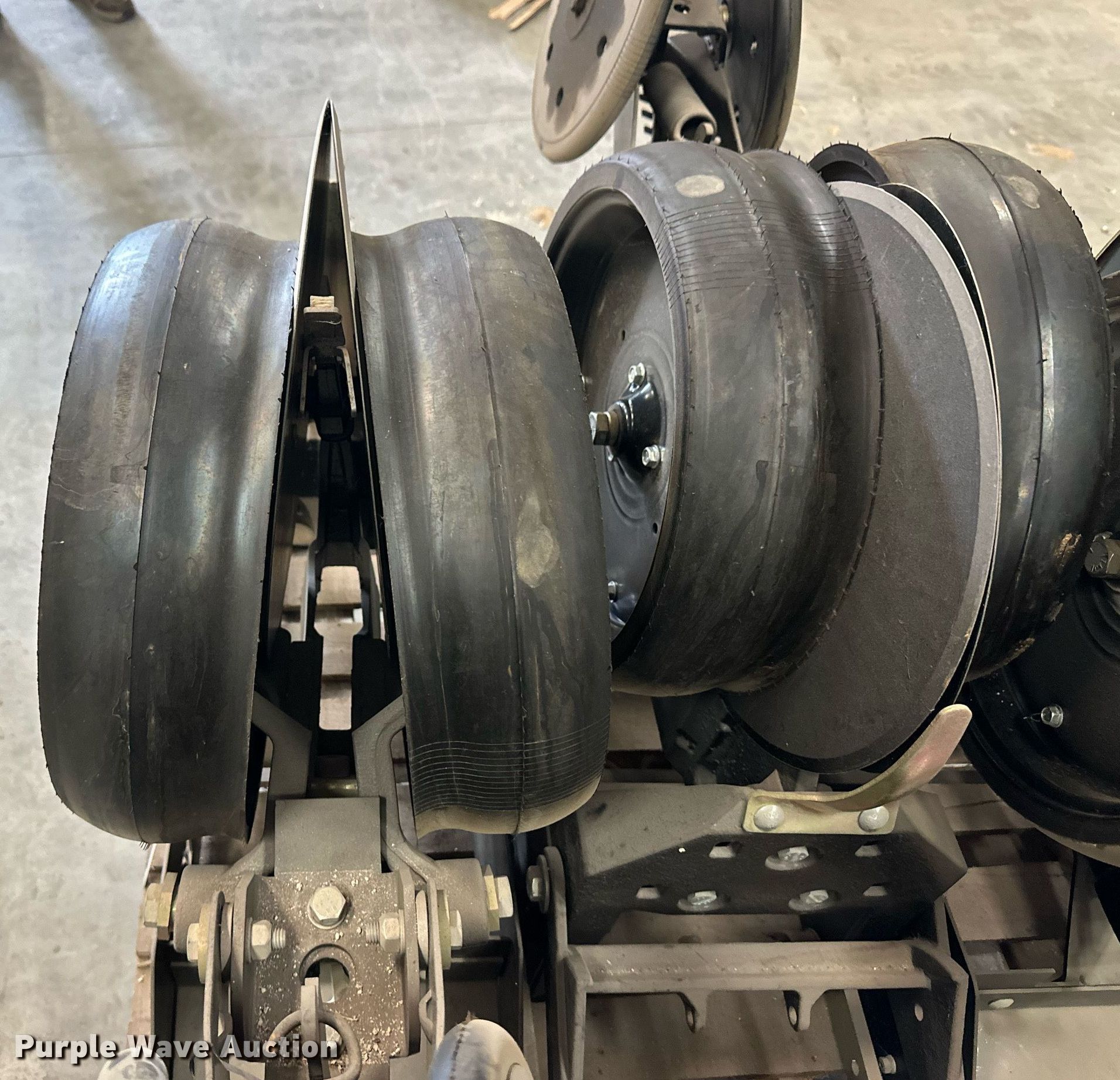 Purple Wave is selling a used Planter or Seeder Attach. in Kansas. This item is a (12) AME planter row units with the following: Shanks, 3.5mm x 15" seed disc openers, Seed tube guard-scraper, Hopper support panel, Shank mounting plate, Quick adjust gauge wheel arms, Walking gauge wheels, Tire size: 4.5" x 16", Quick adjust closing wheel arm, Rubber tires