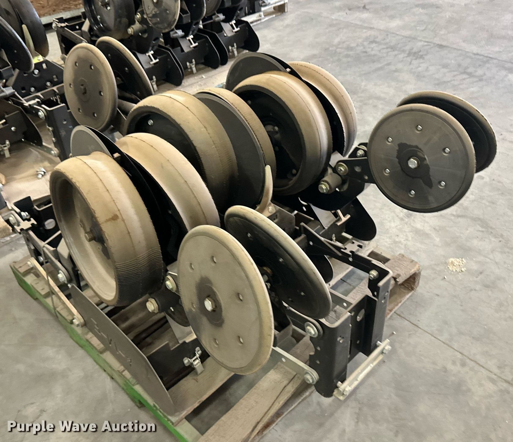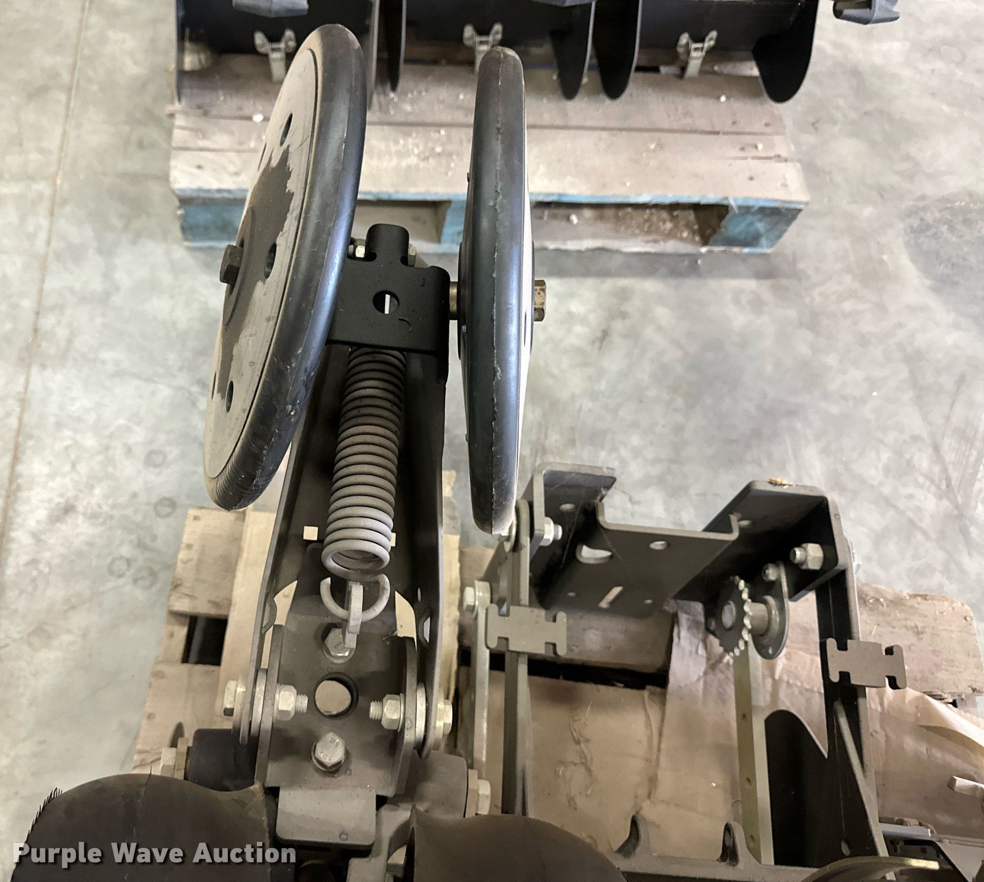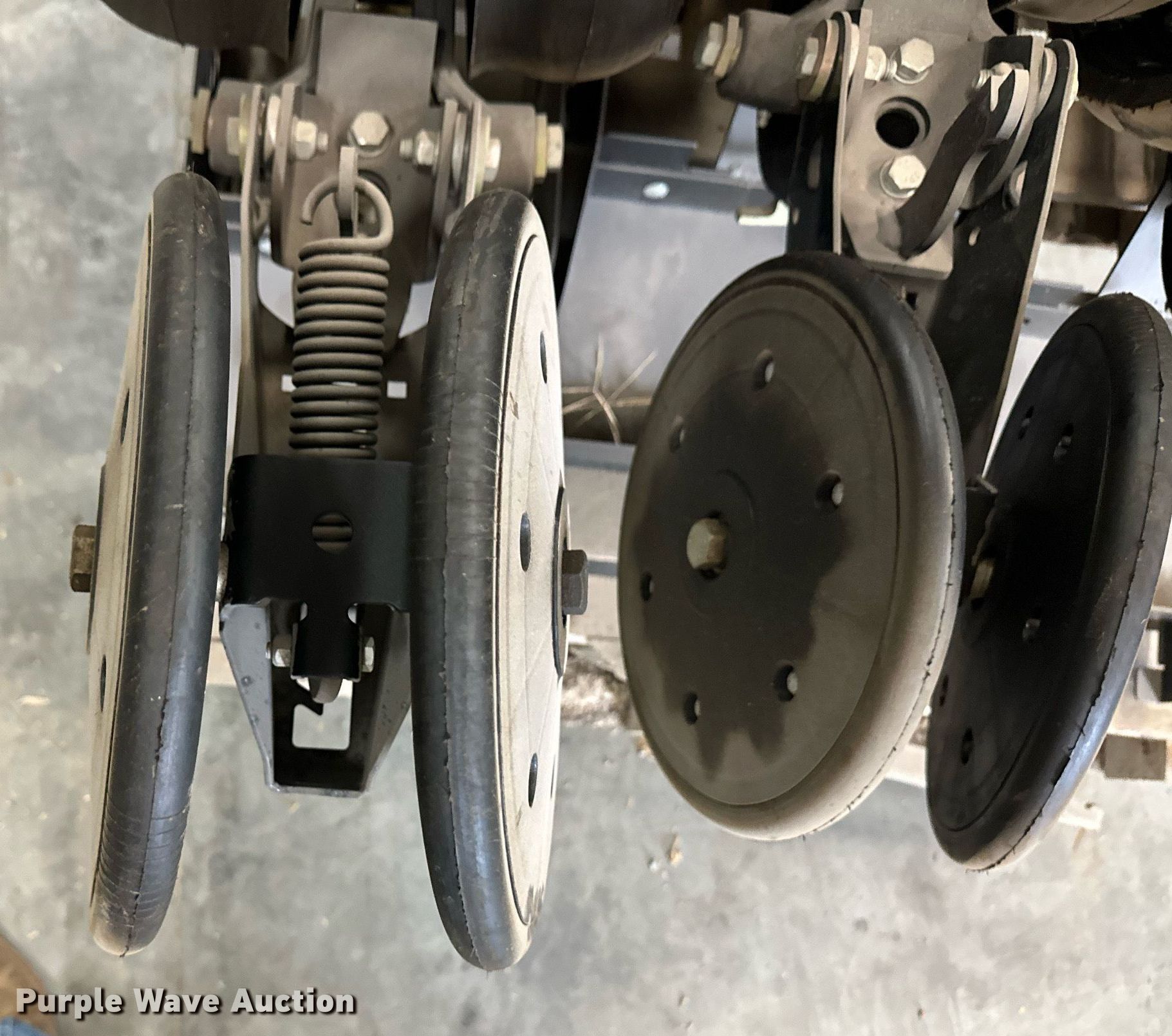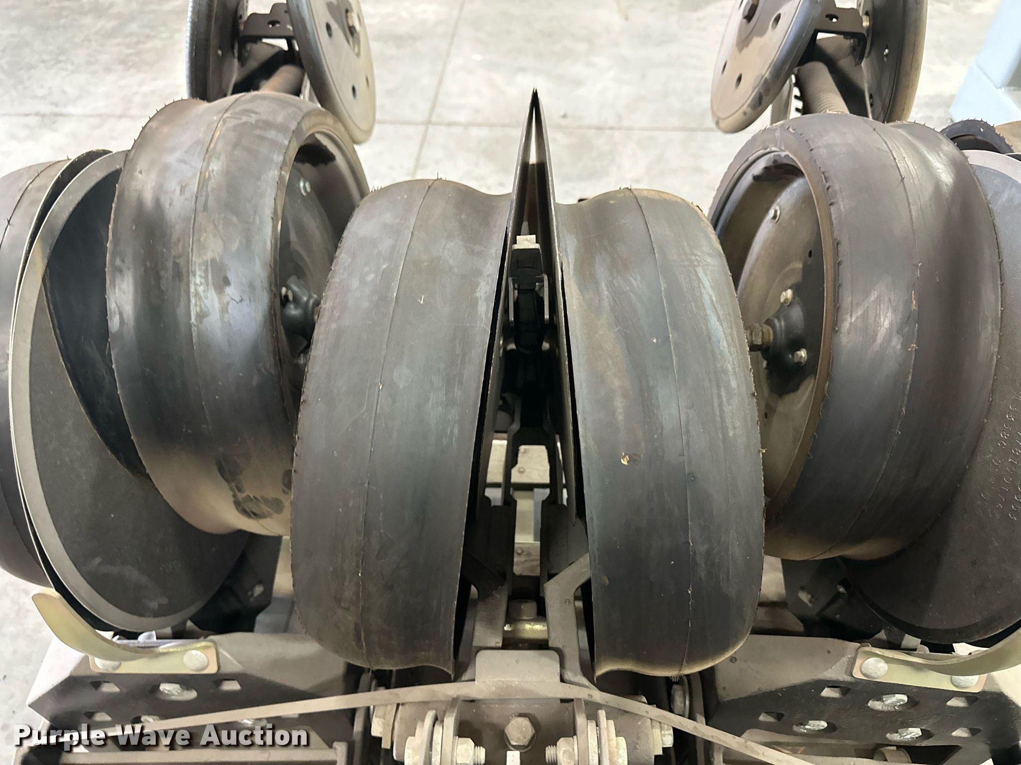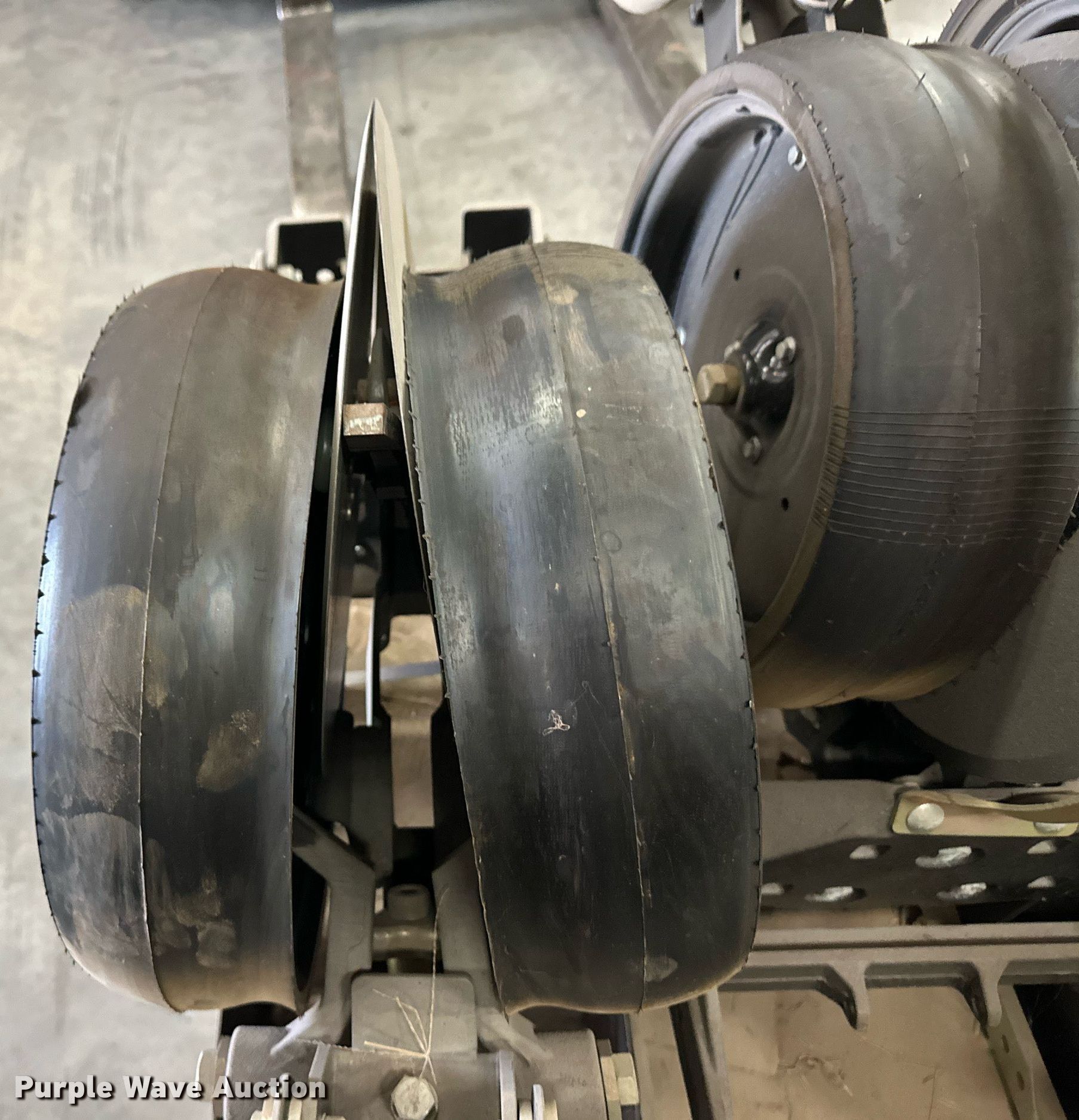 Purple Wave is selling a used Planter or Seeder Attach. in Kansas. This item is a (12) AME planter row units with the following: Shanks, 3.5mm x 15" seed disc openers, Seed tube guard-scraper, Hopper support panel, Shank mounting plate, Quick adjust gauge wheel arms, Walking gauge wheels, Tire size: 4.5" x 16", Quick adjust closing wheel arm, Rubber tires