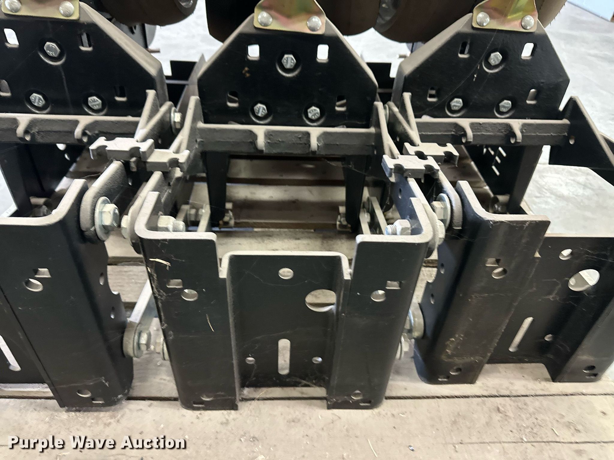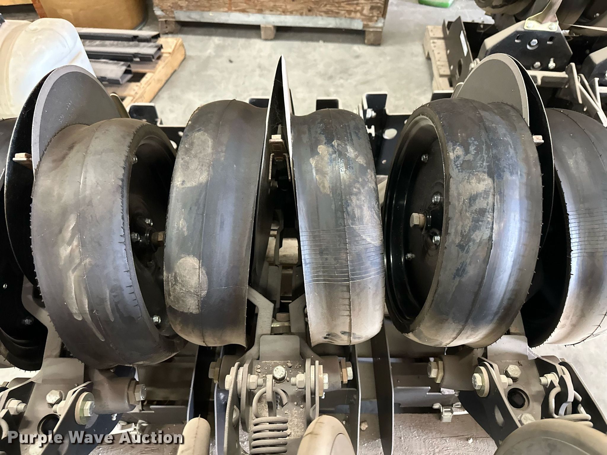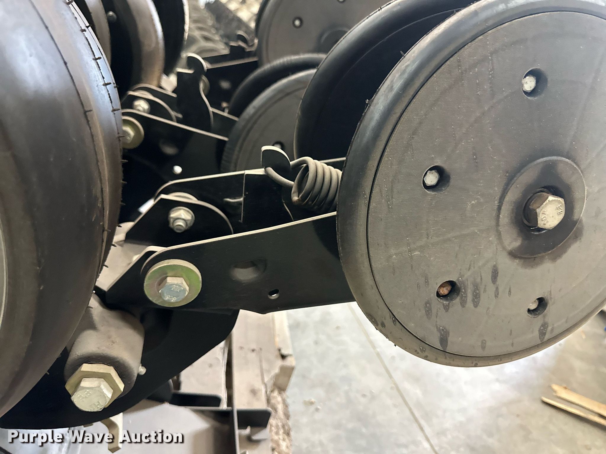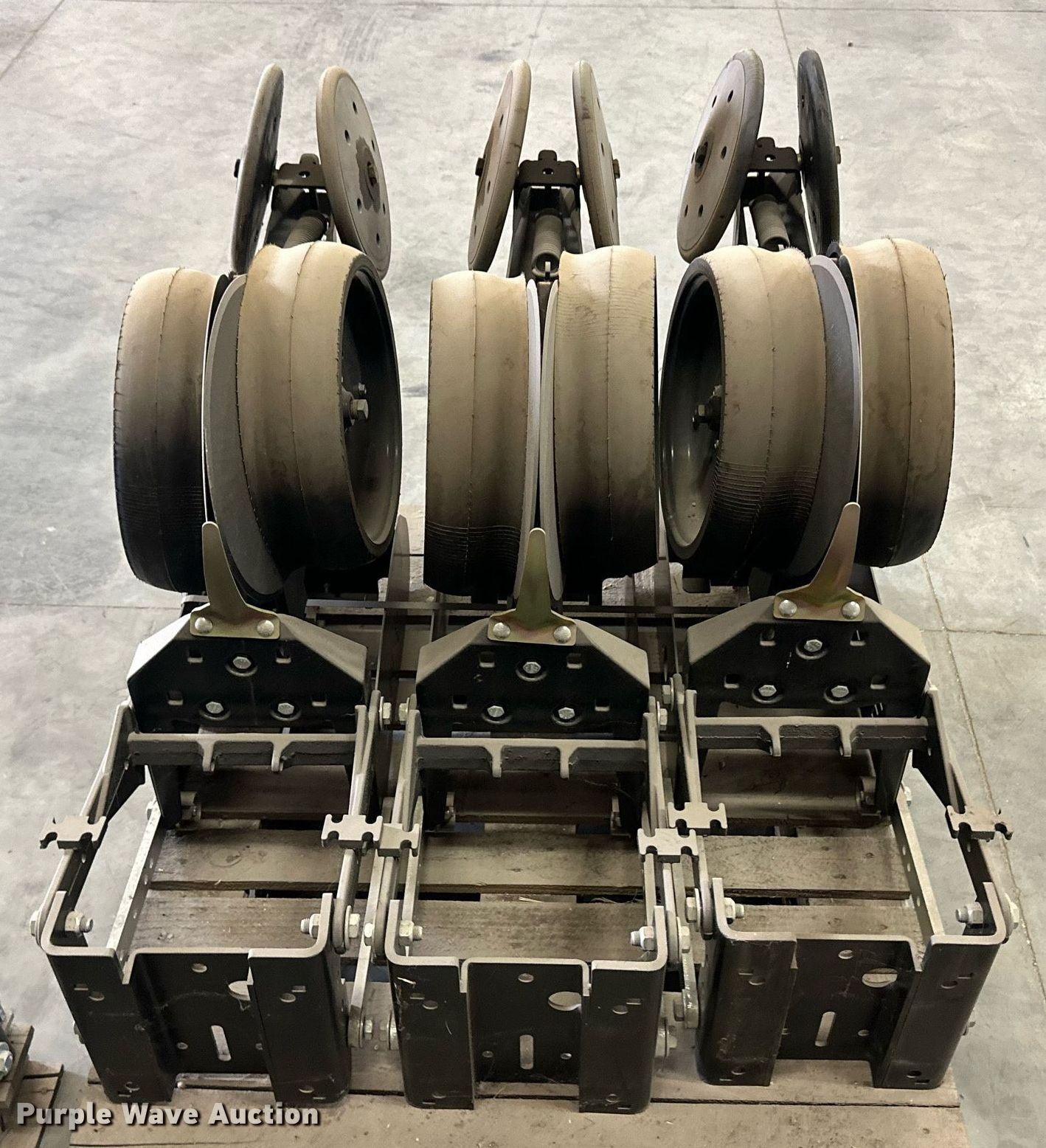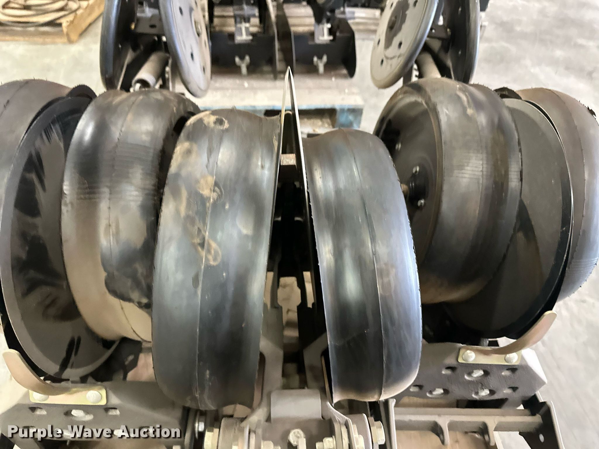 Purple Wave is selling a used Planter or Seeder Attach. in Kansas. This item is a (12) AME planter row units with the following: Shanks, 3.5mm x 15" seed disc openers, Seed tube guard-scraper, Hopper support panel, Shank mounting plate, Quick adjust gauge wheel arms, Walking gauge wheels, Tire size: 4.5" x 16", Quick adjust closing wheel arm, Rubber tires