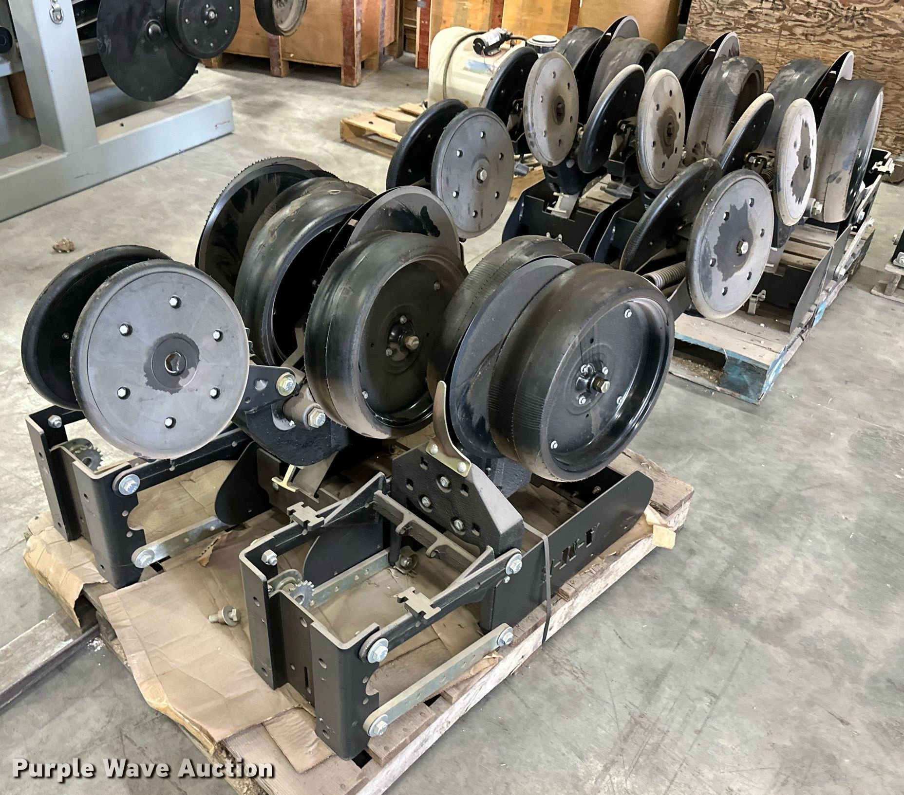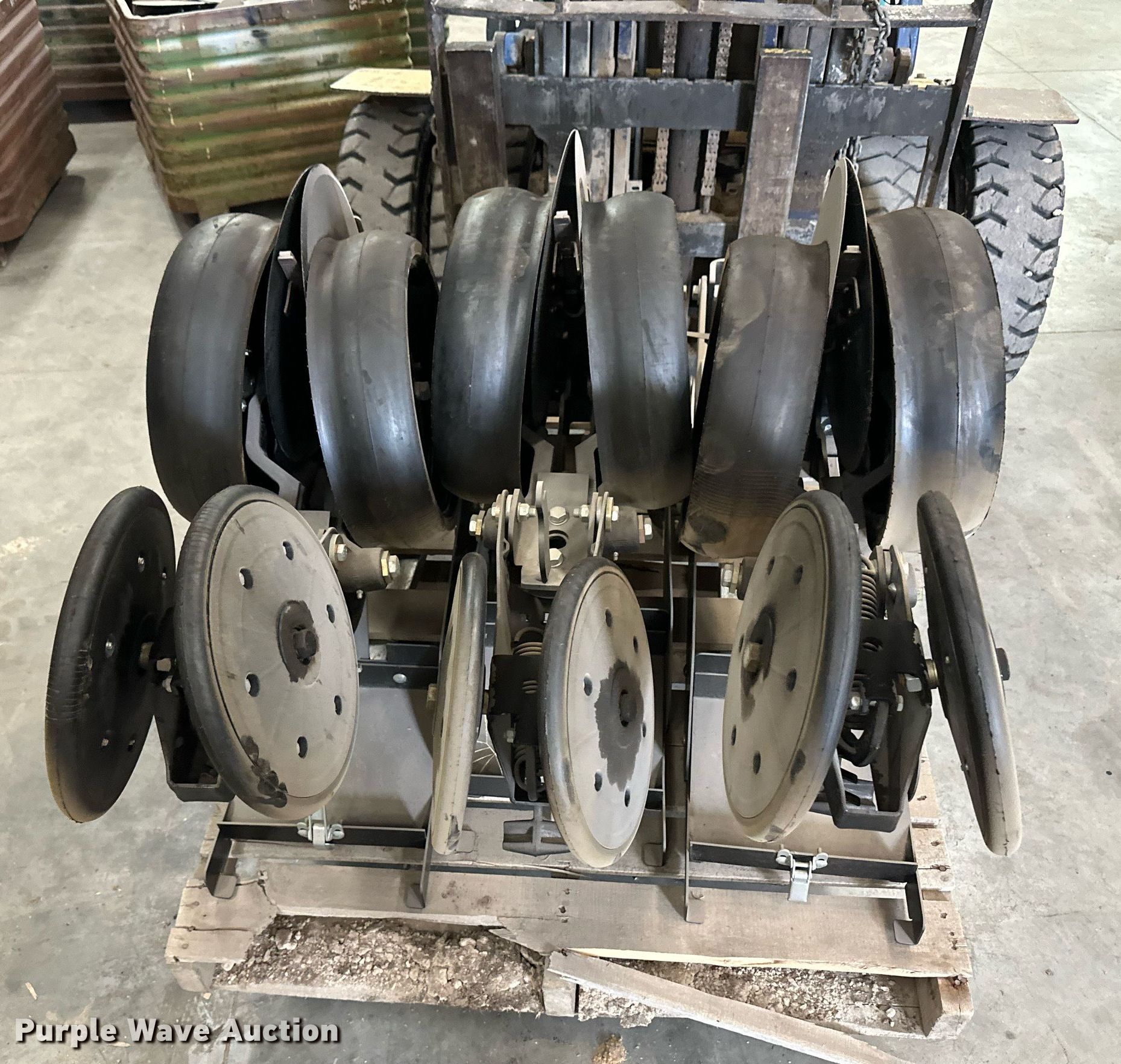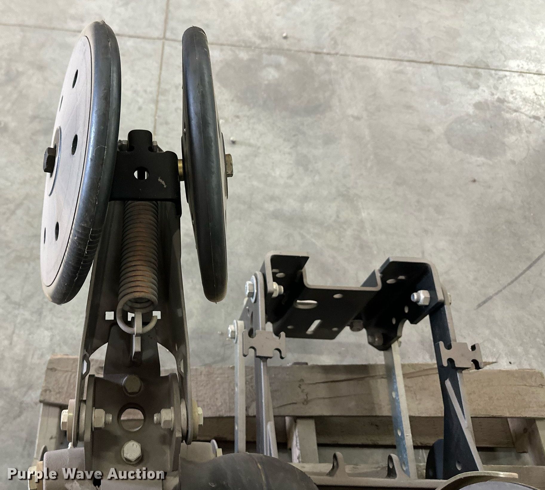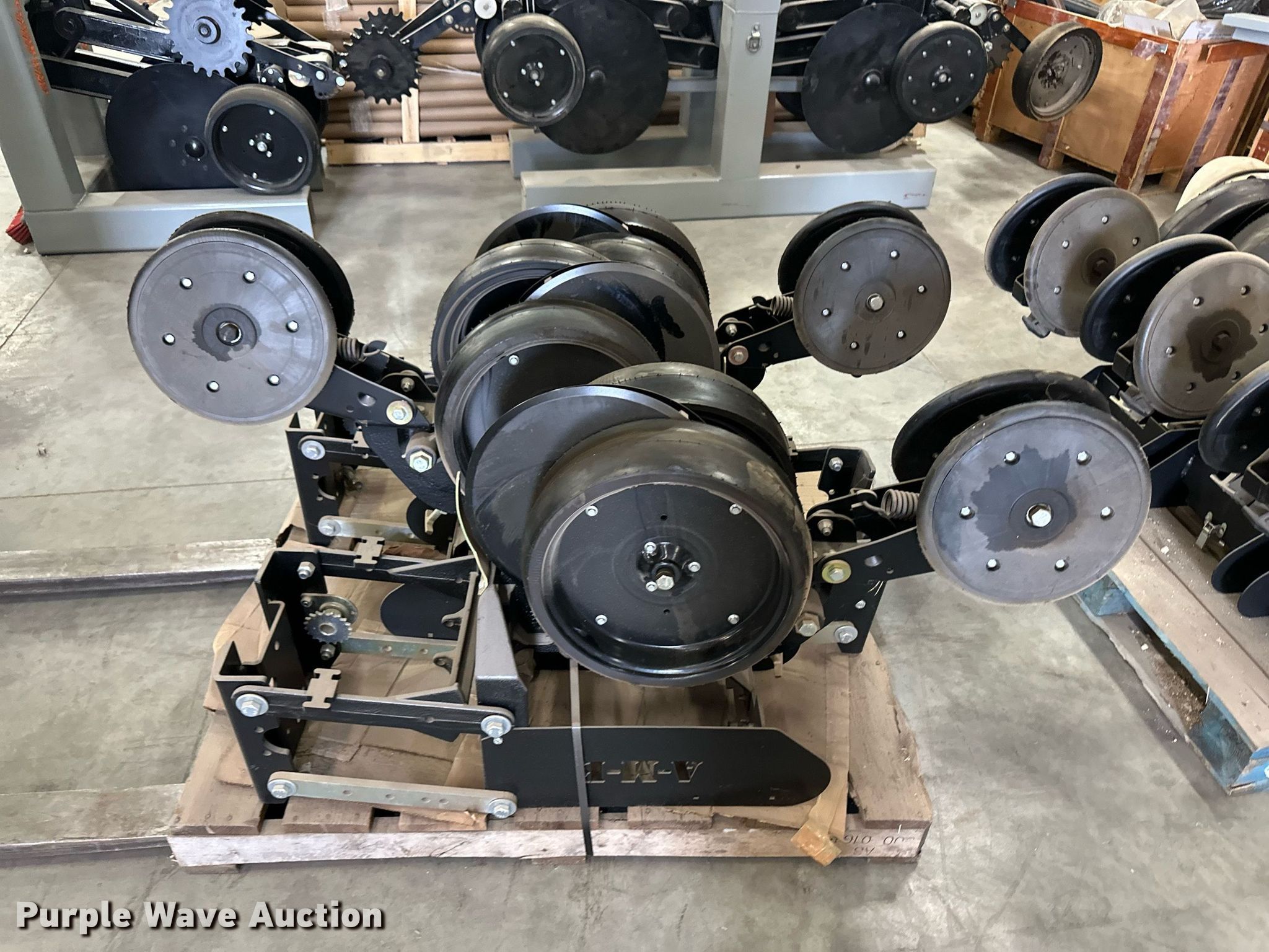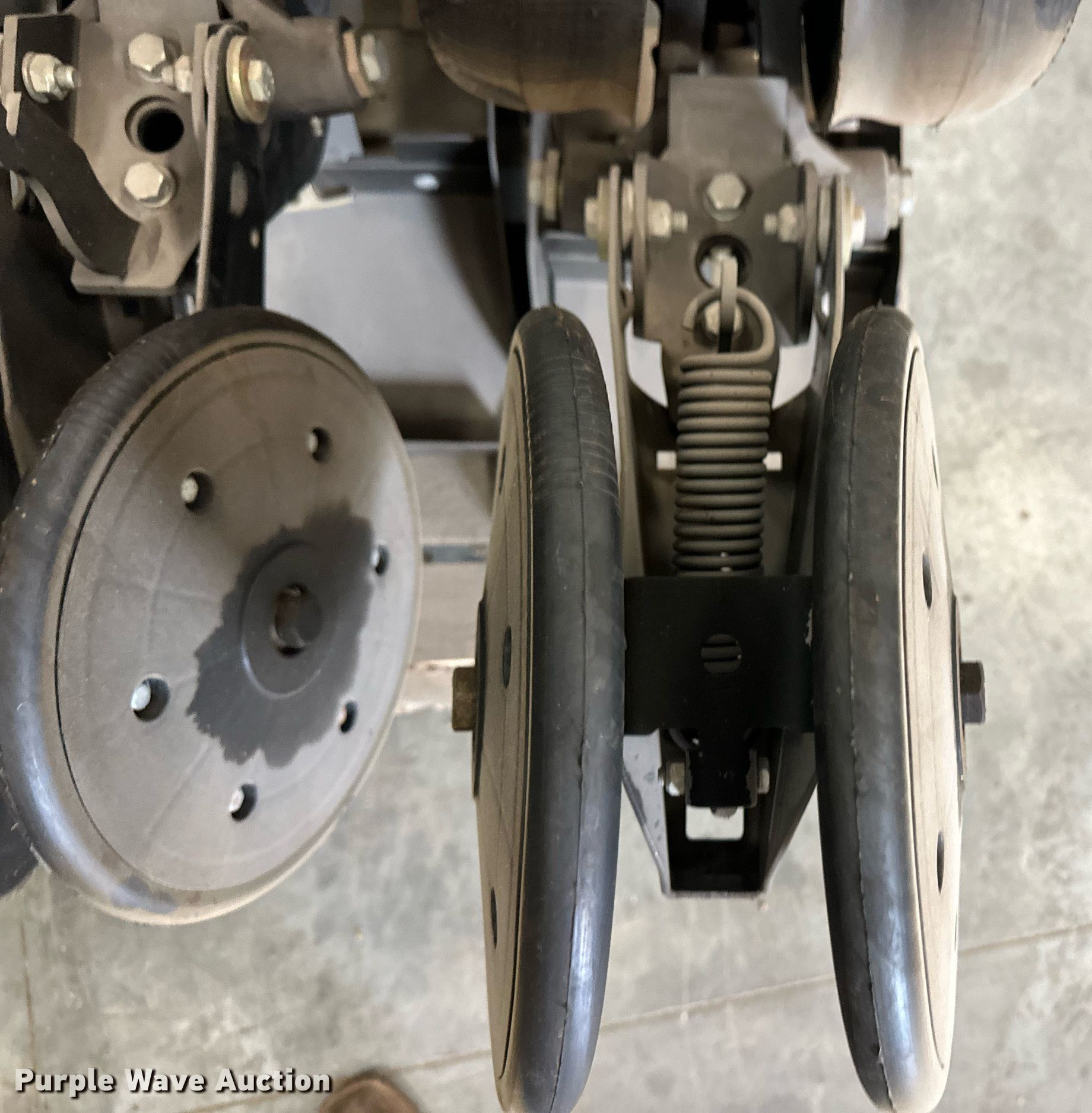Purple Wave is selling a used Planter or Seeder Attach. in Kansas. This item is a (12) AME planter row units with the following: Shanks, 3.5mm x 15" seed disc openers, Seed tube guard-scraper, Hopper support panel, Shank mounting plate, Quick adjust gauge wheel arms, Walking gauge wheels, Tire size: 4.5" x 16", Quick adjust closing wheel arm, Rubber tires
