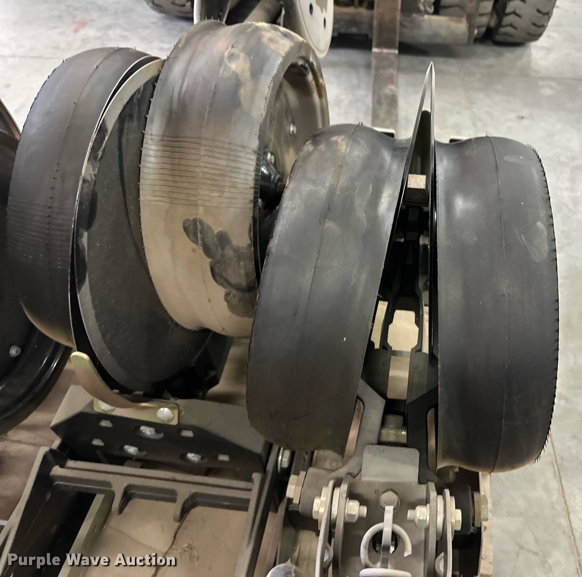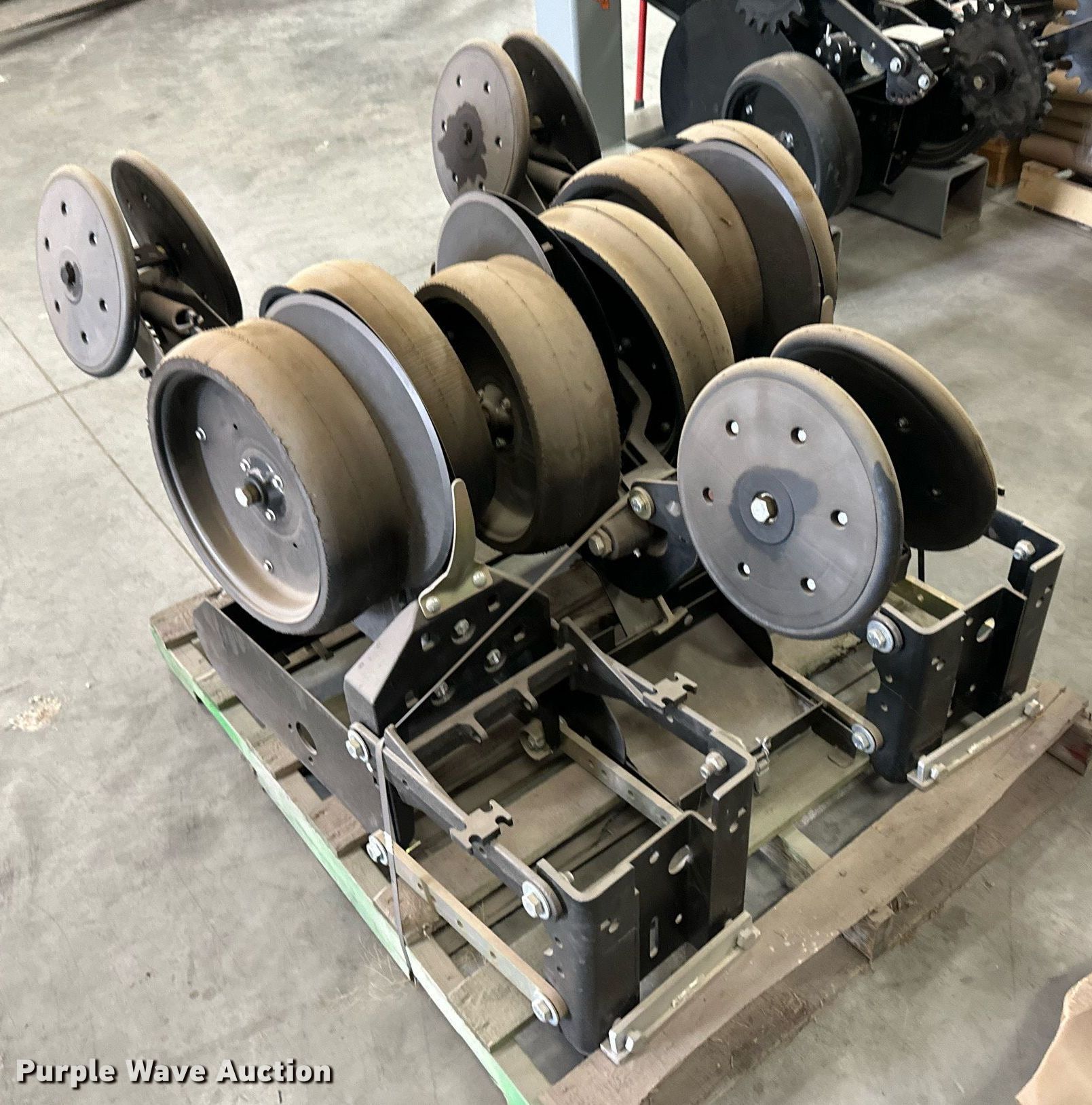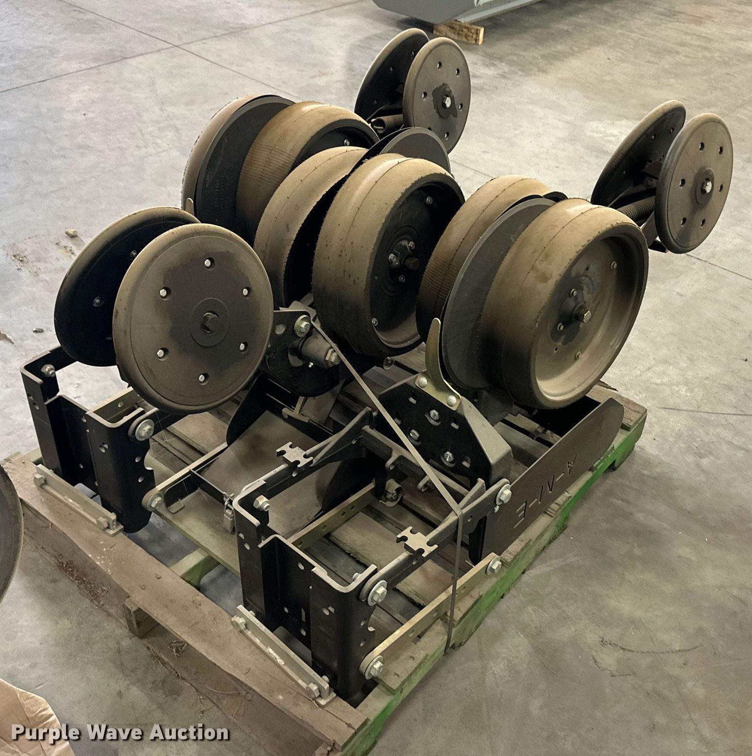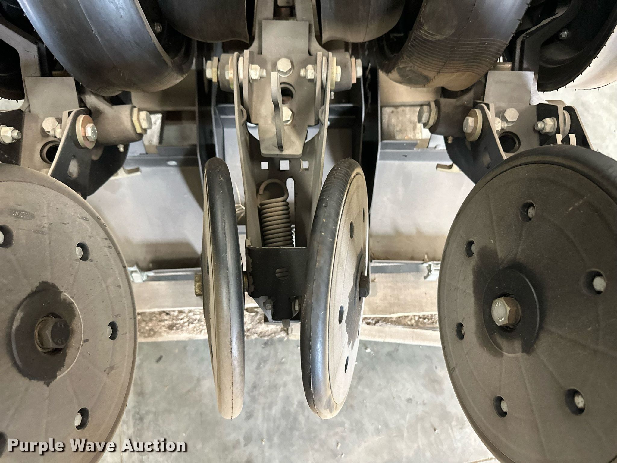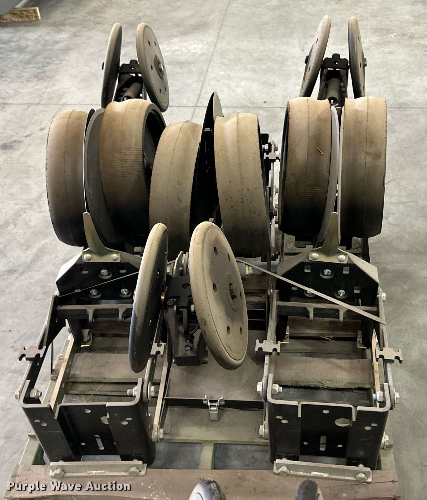 Purple Wave is selling a used Planter or Seeder Attach. in Kansas. This item is a (12) AME planter row units with the following: Shanks, 3.5mm x 15" seed disc openers, Seed tube guard-scraper, Hopper support panel, Shank mounting plate, Quick adjust gauge wheel arms, Walking gauge wheels, Tire size: 4.5" x 16", Quick adjust closing wheel arm, Rubber tires