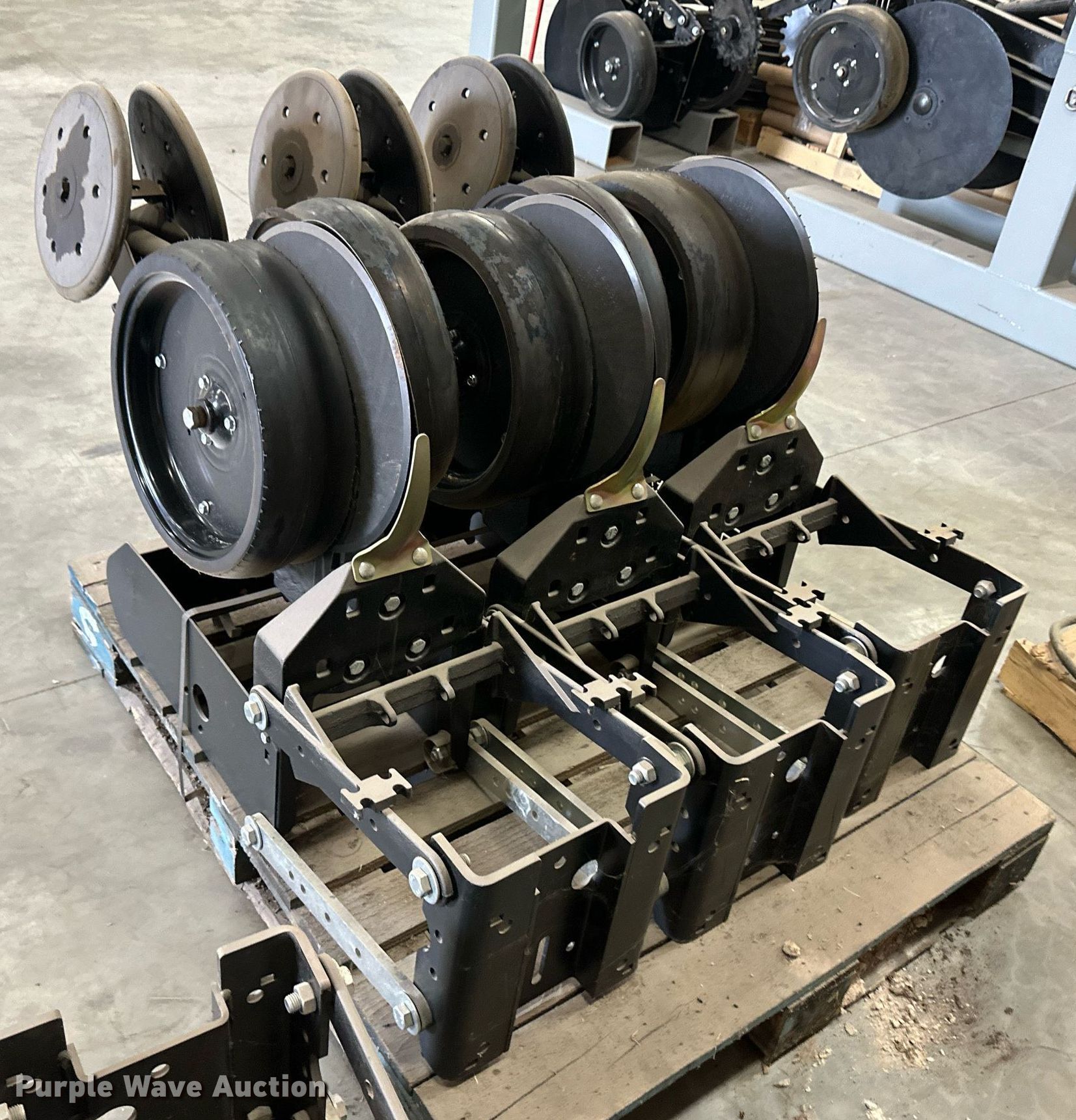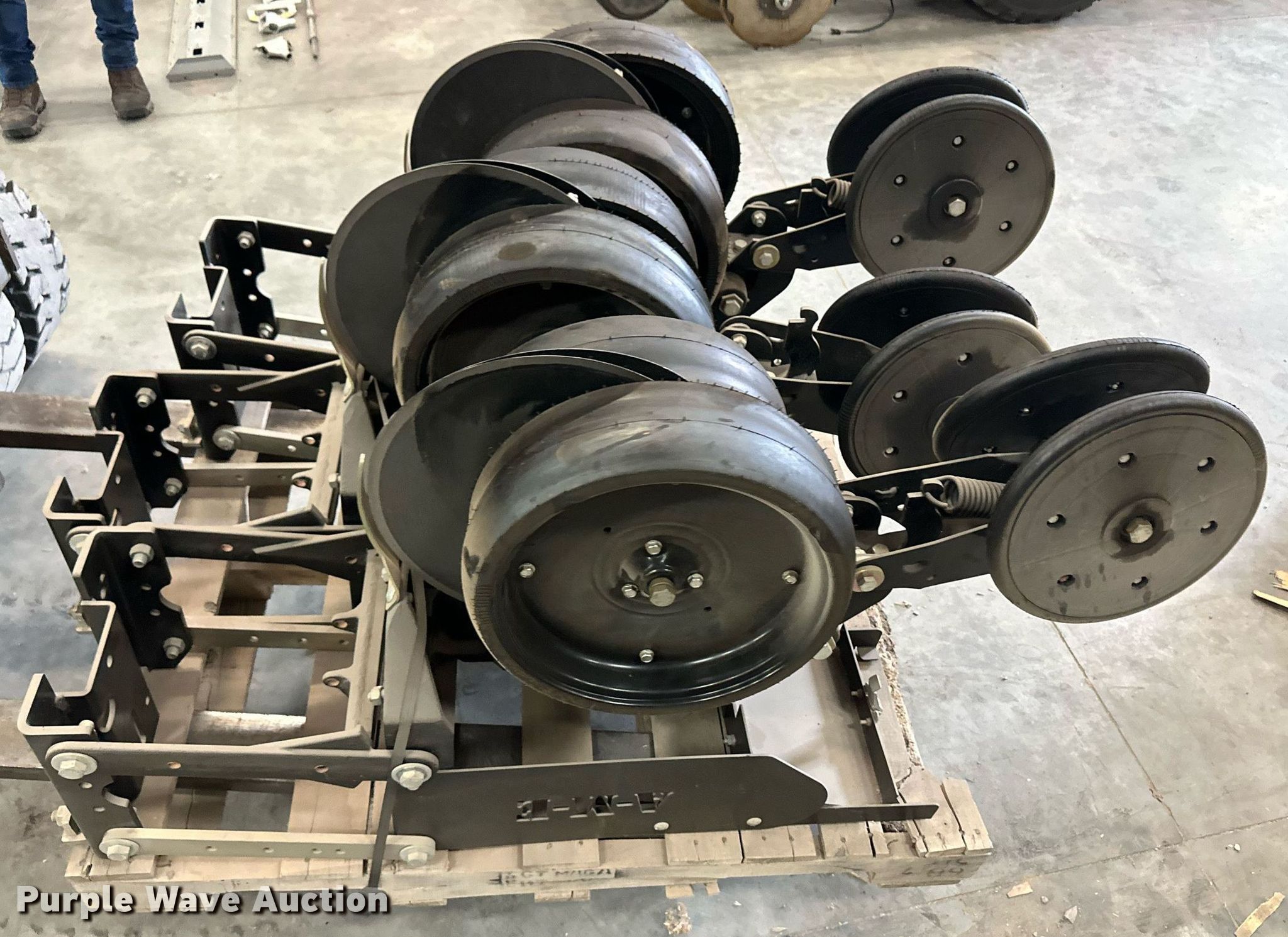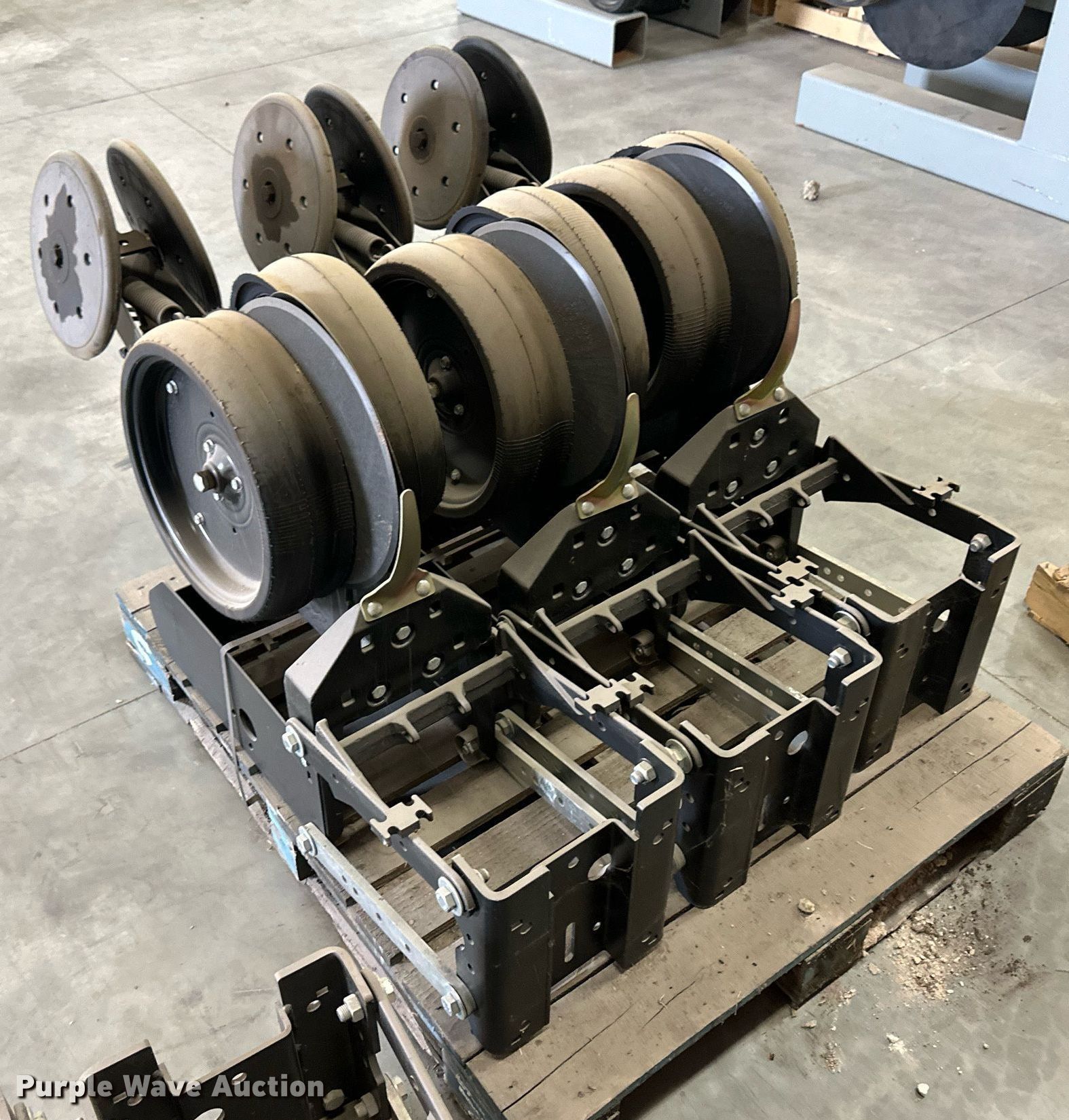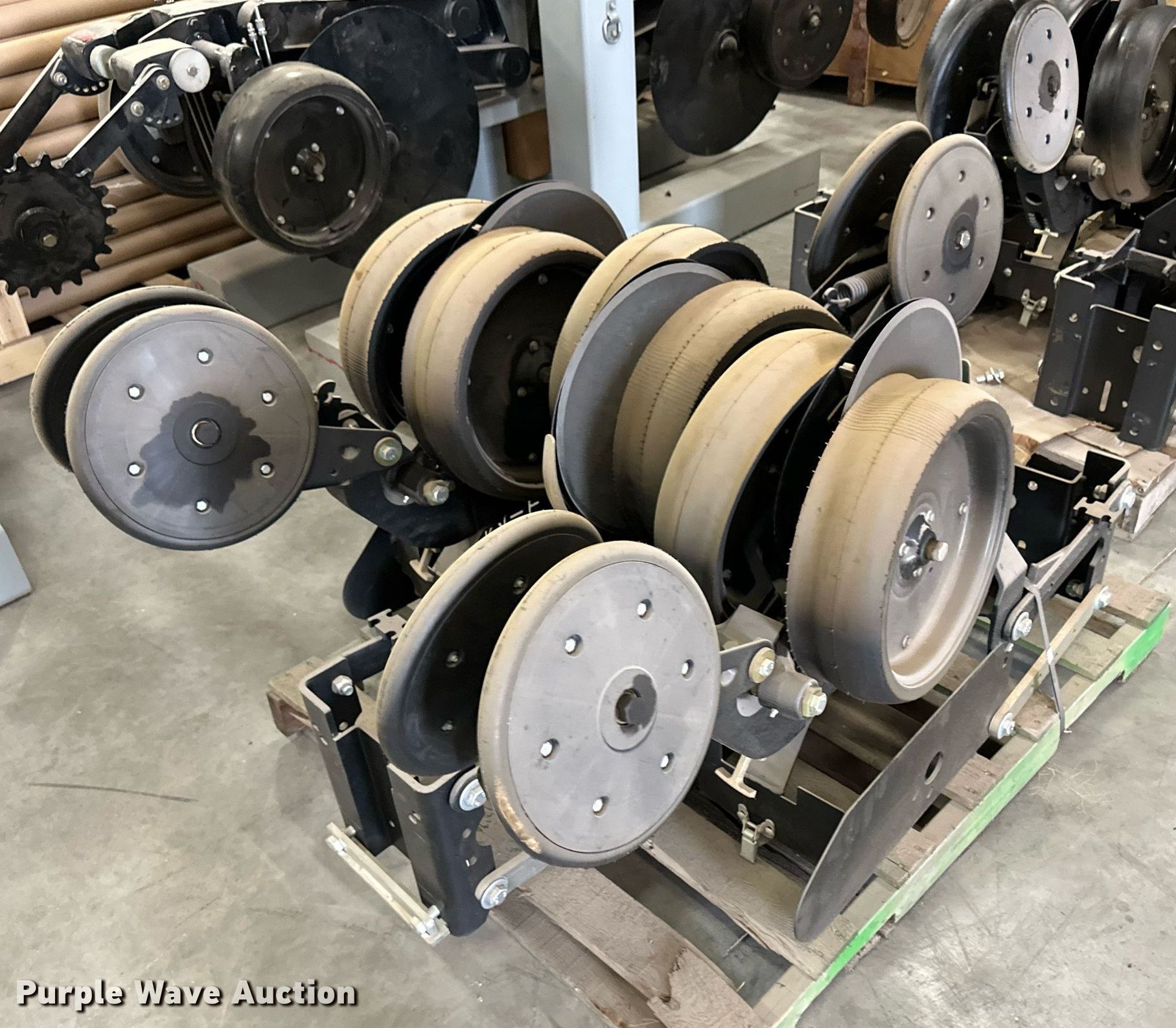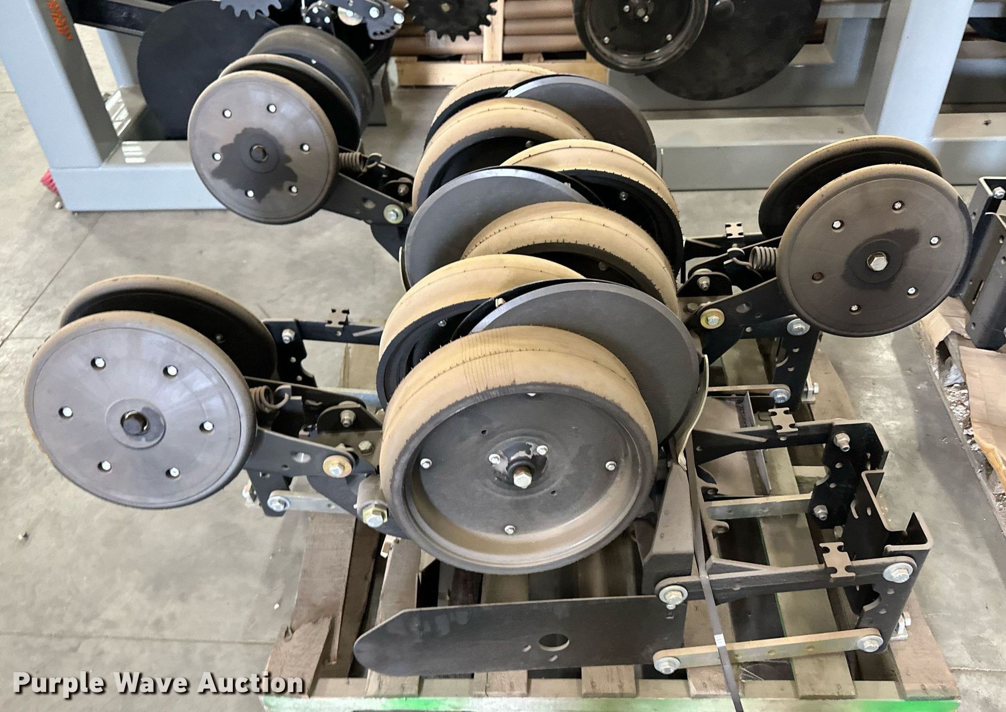 Purple Wave is selling a used Planter or Seeder Attach. in Kansas. This item is a (12) AME planter row units with the following: Shanks, 3.5mm x 15" seed disc openers, Seed tube guard-scraper, Hopper support panel, Shank mounting plate, Quick adjust gauge wheel arms, Walking gauge wheels, Tire size: 4.5" x 16", Quick adjust closing wheel arm, Rubber tires