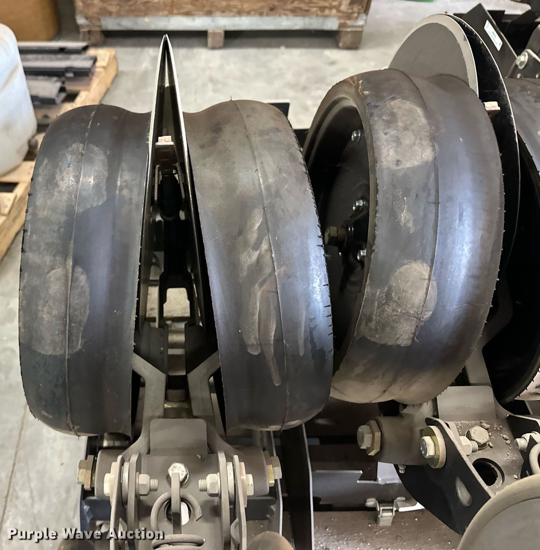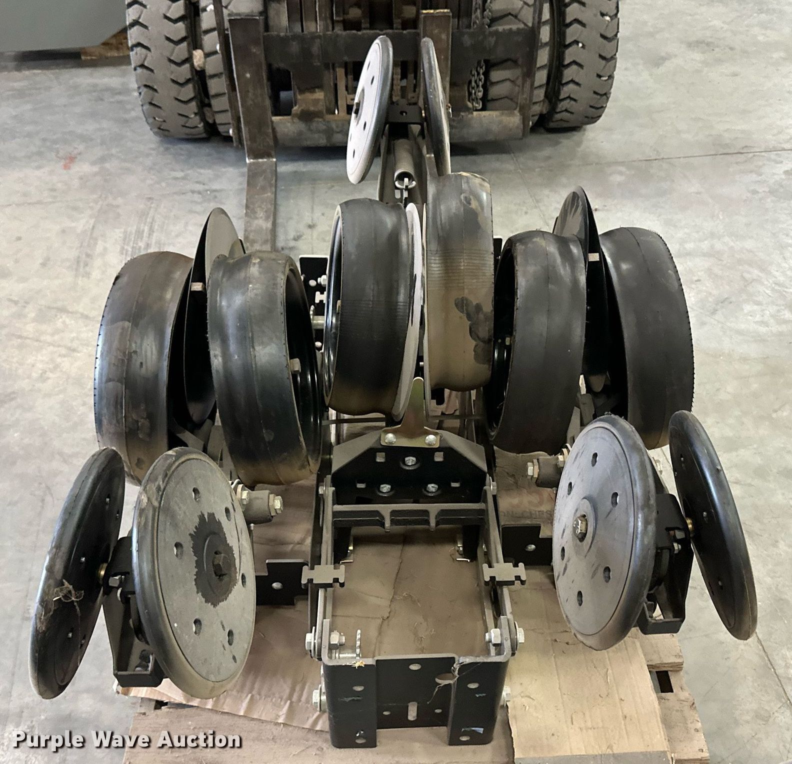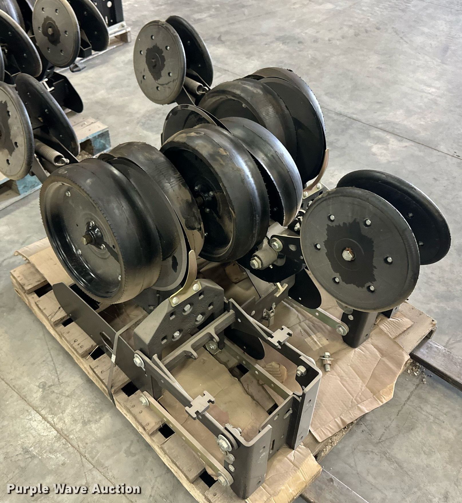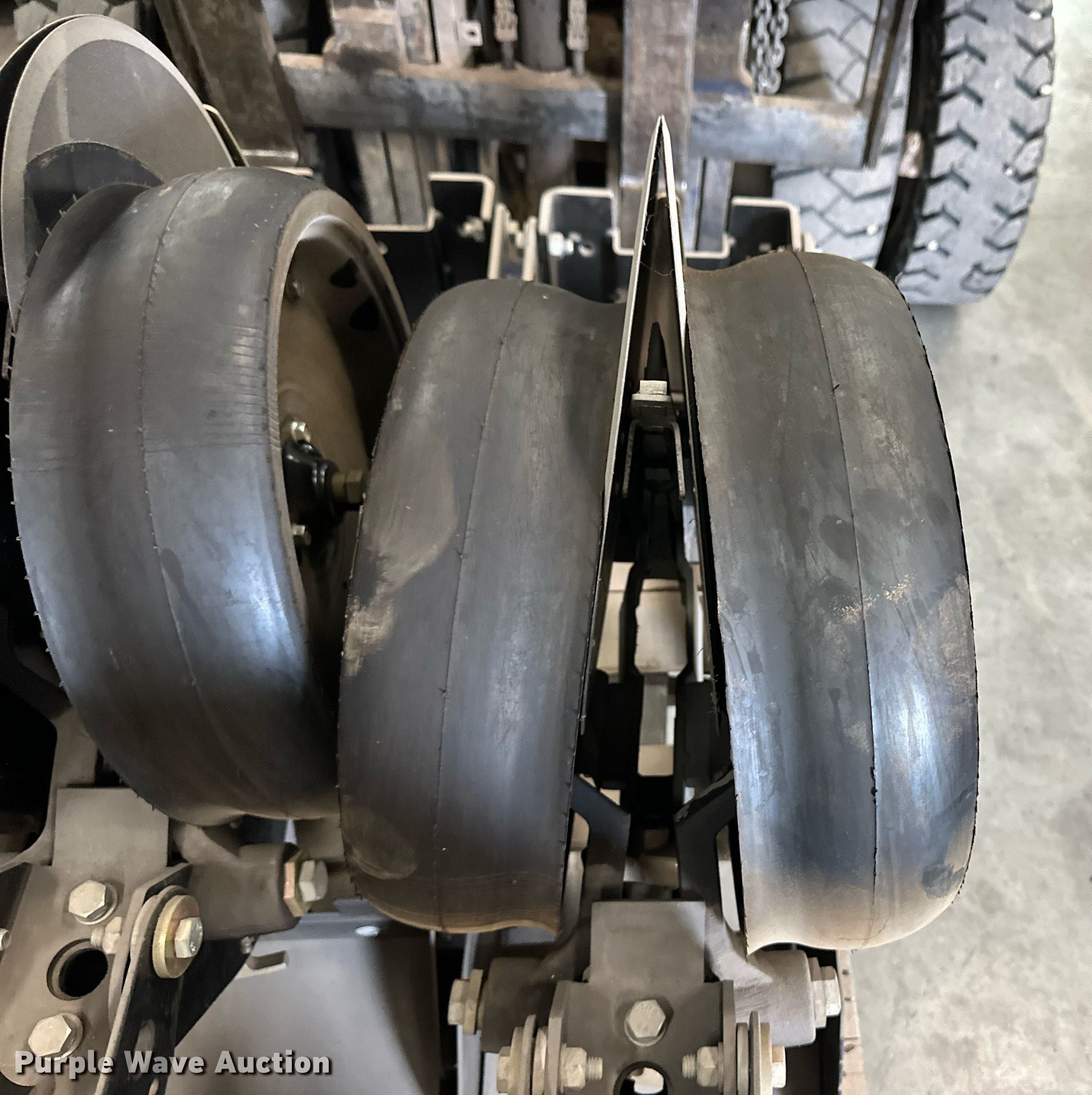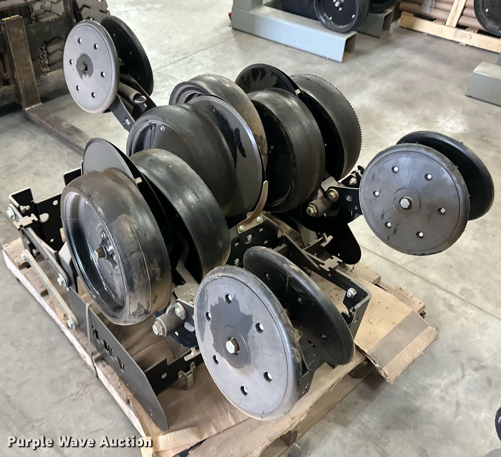 Purple Wave is selling a used Planter or Seeder Attach. in Kansas. This item is a (12) AME planter row units with the following: Shanks, 3.5mm x 15" seed disc openers, Seed tube guard-scraper, Hopper support panel, Shank mounting plate, Quick adjust gauge wheel arms, Walking gauge wheels, Tire size: 4.5" x 16", Quick adjust closing wheel arm, Rubber tires