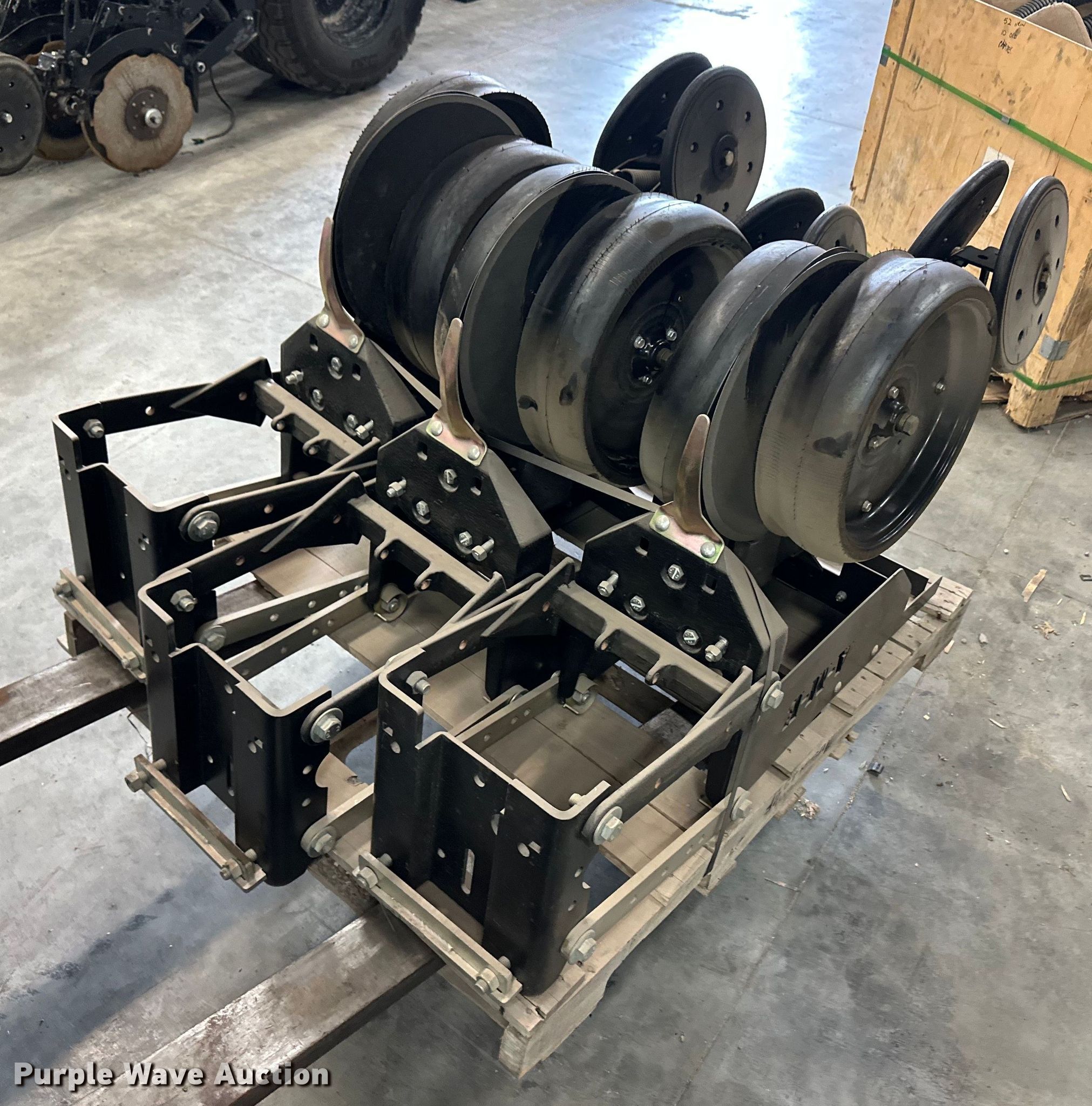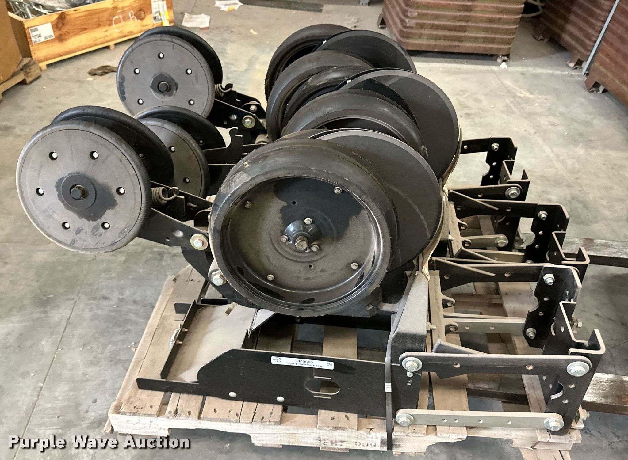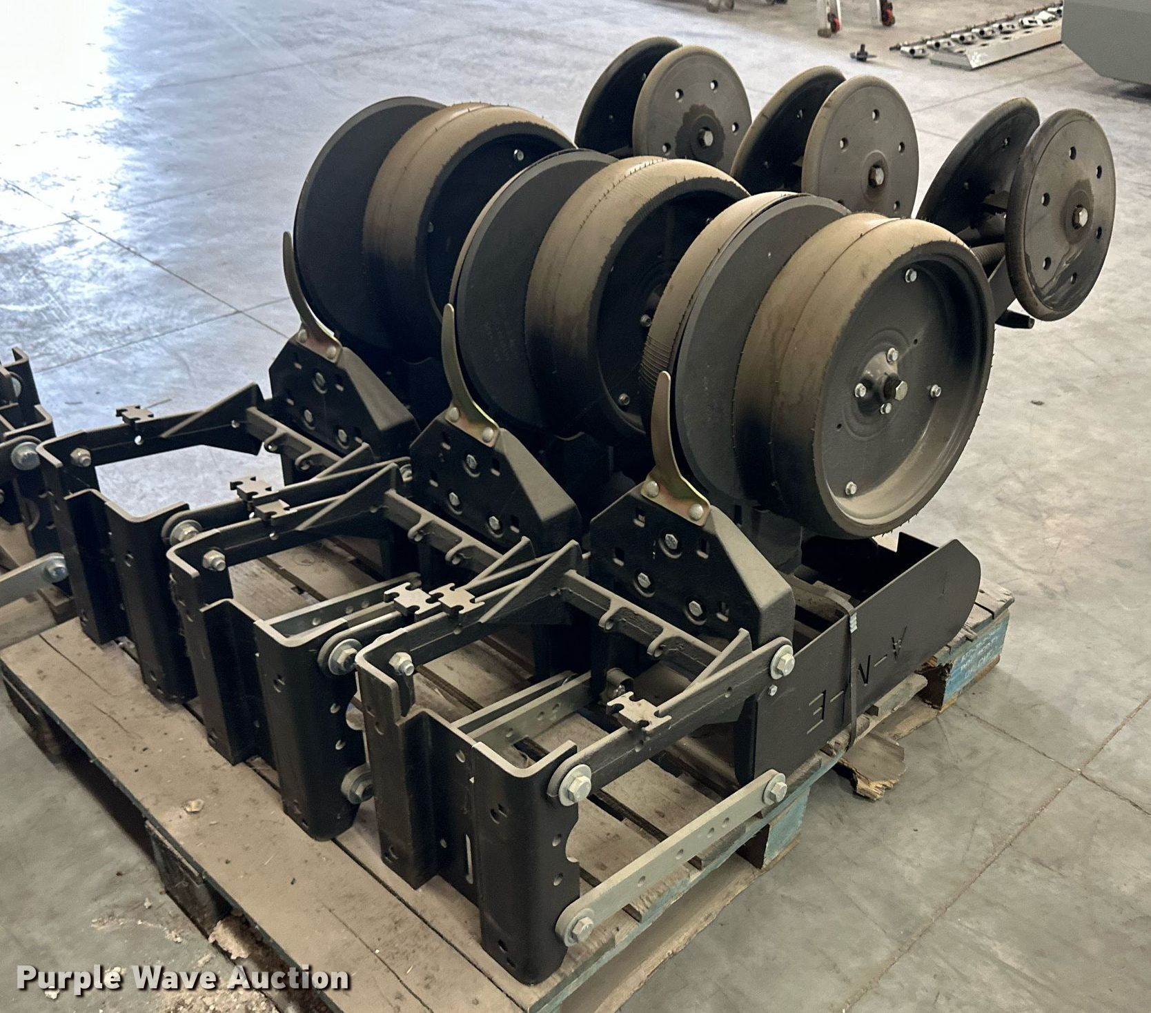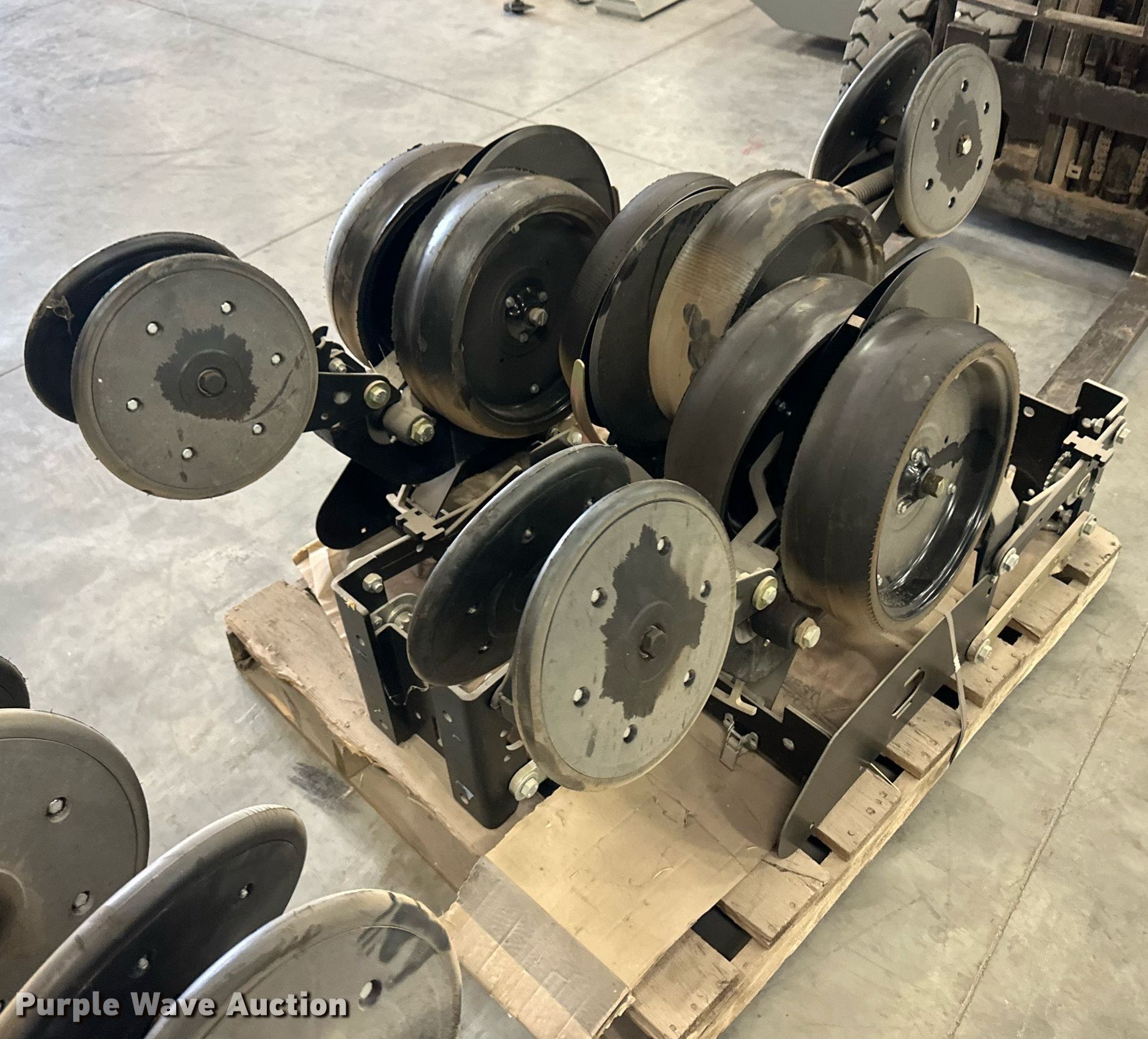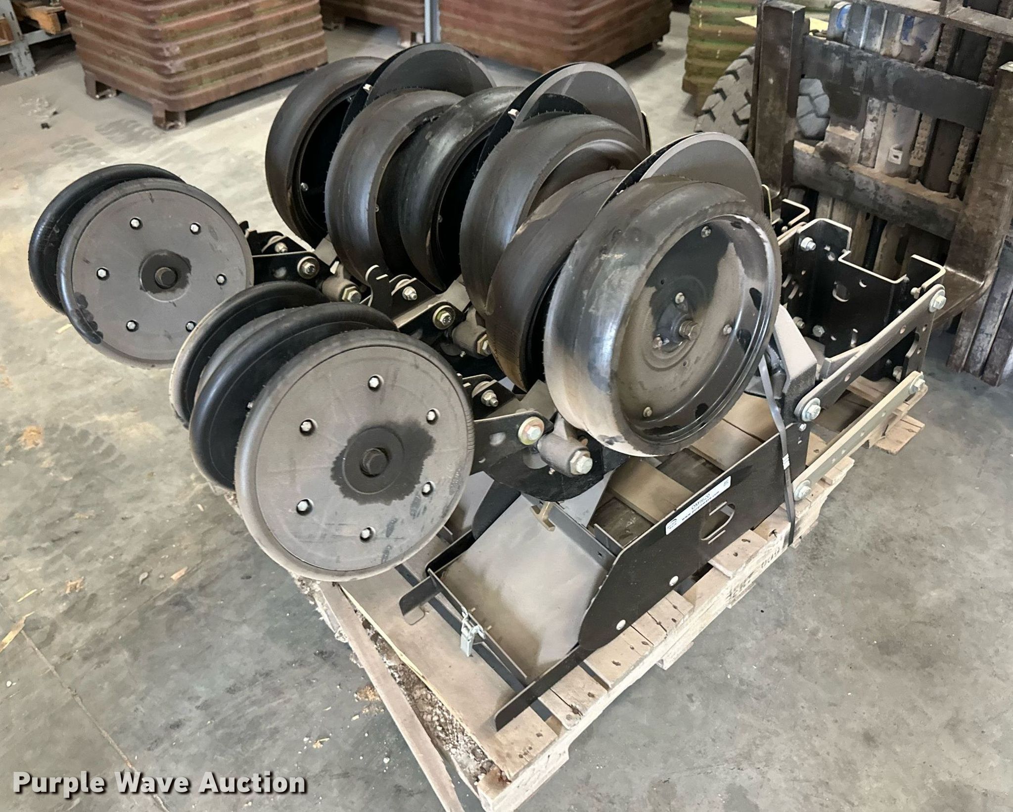 Purple Wave is selling a used Planter or Seeder Attach. in Kansas. This item is a (12) AME planter row units with the following: Shanks, 3.5mm x 15" seed disc openers, Seed tube guard-scraper, Hopper support panel, Shank mounting plate, Quick adjust gauge wheel arms, Walking gauge wheels, Tire size: 4.5" x 16", Quick adjust closing wheel arm, Rubber tires
