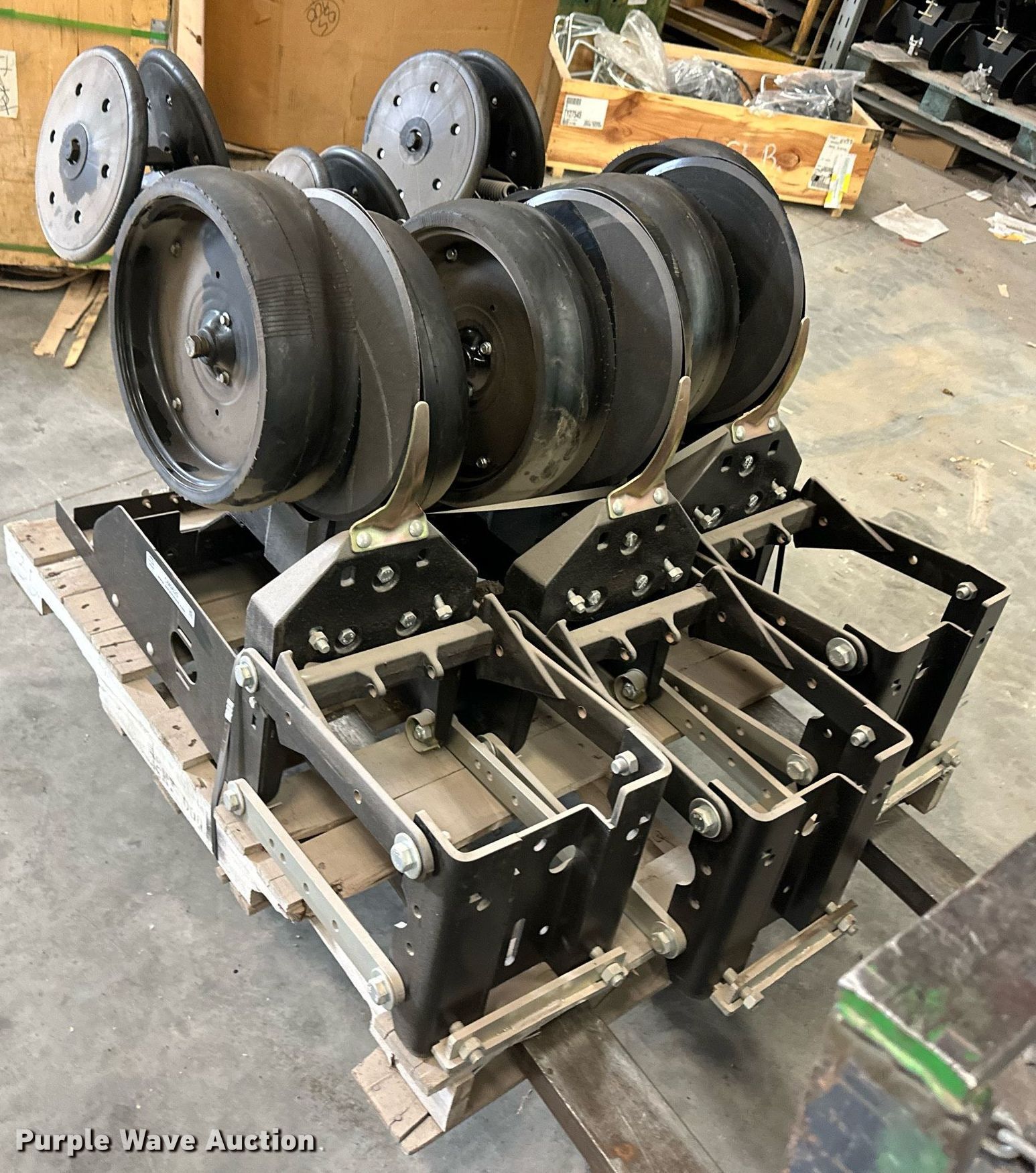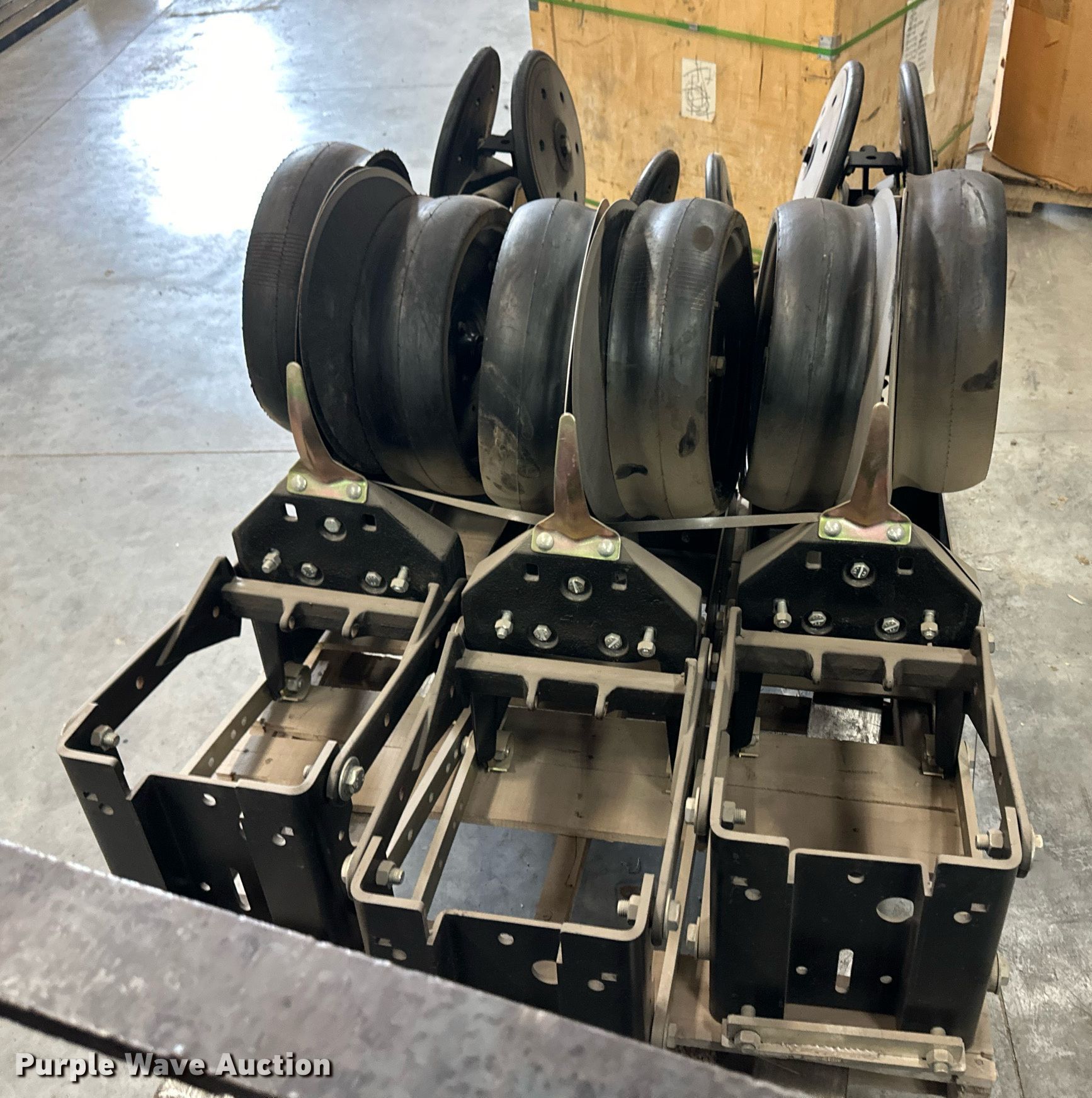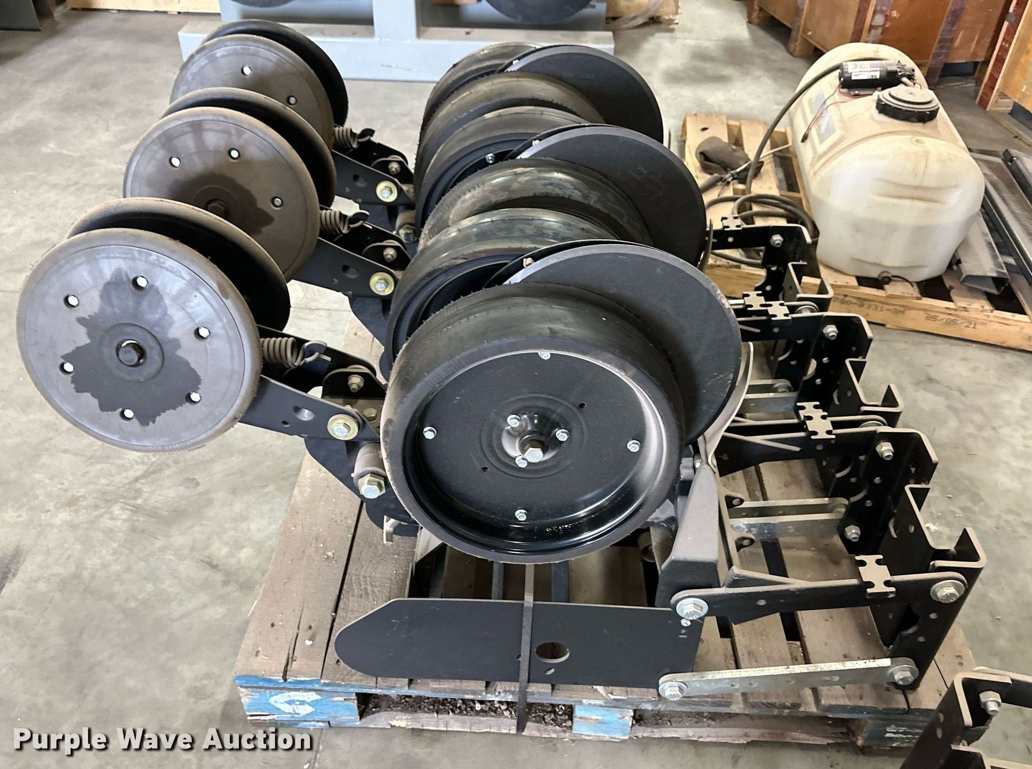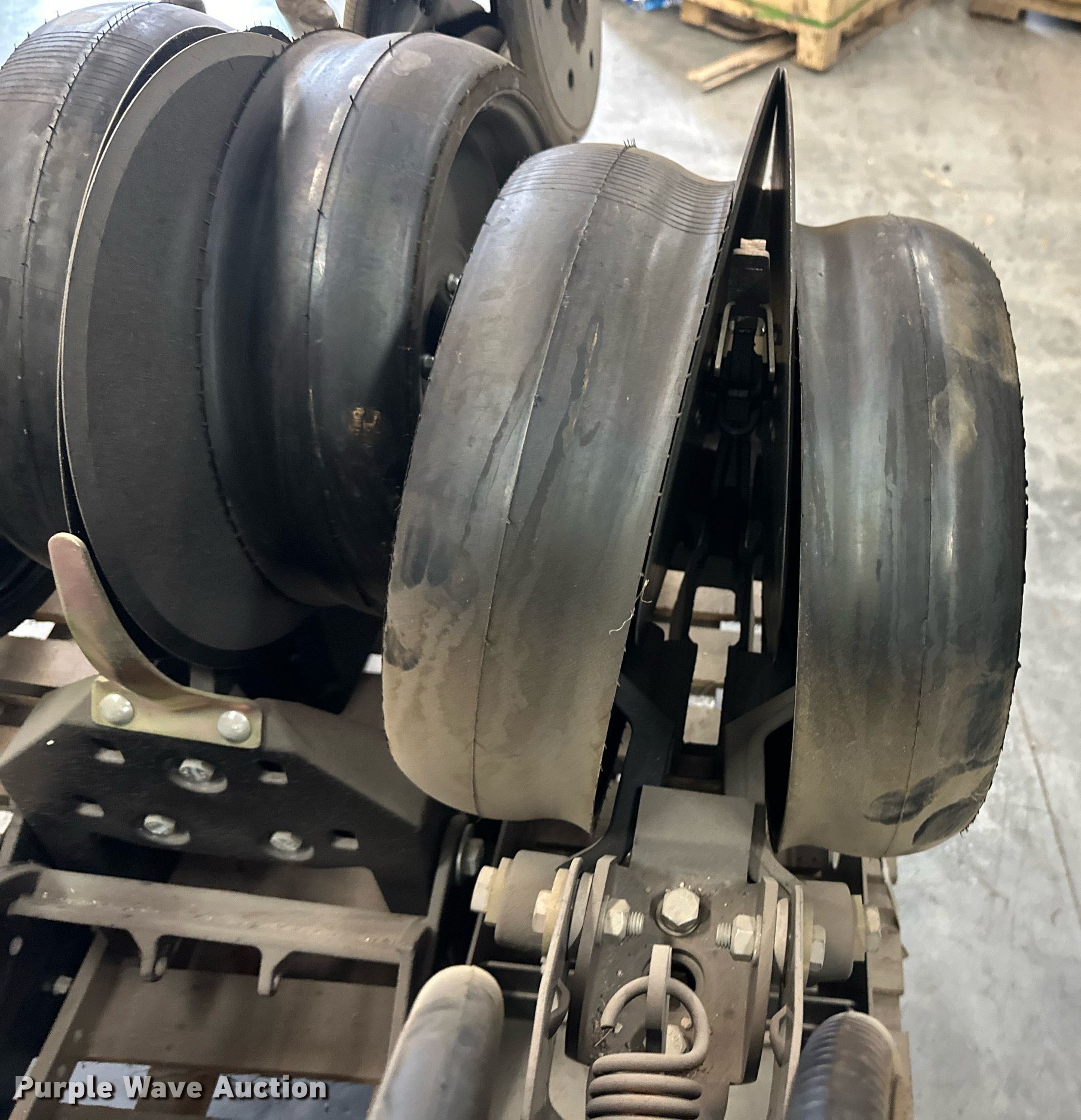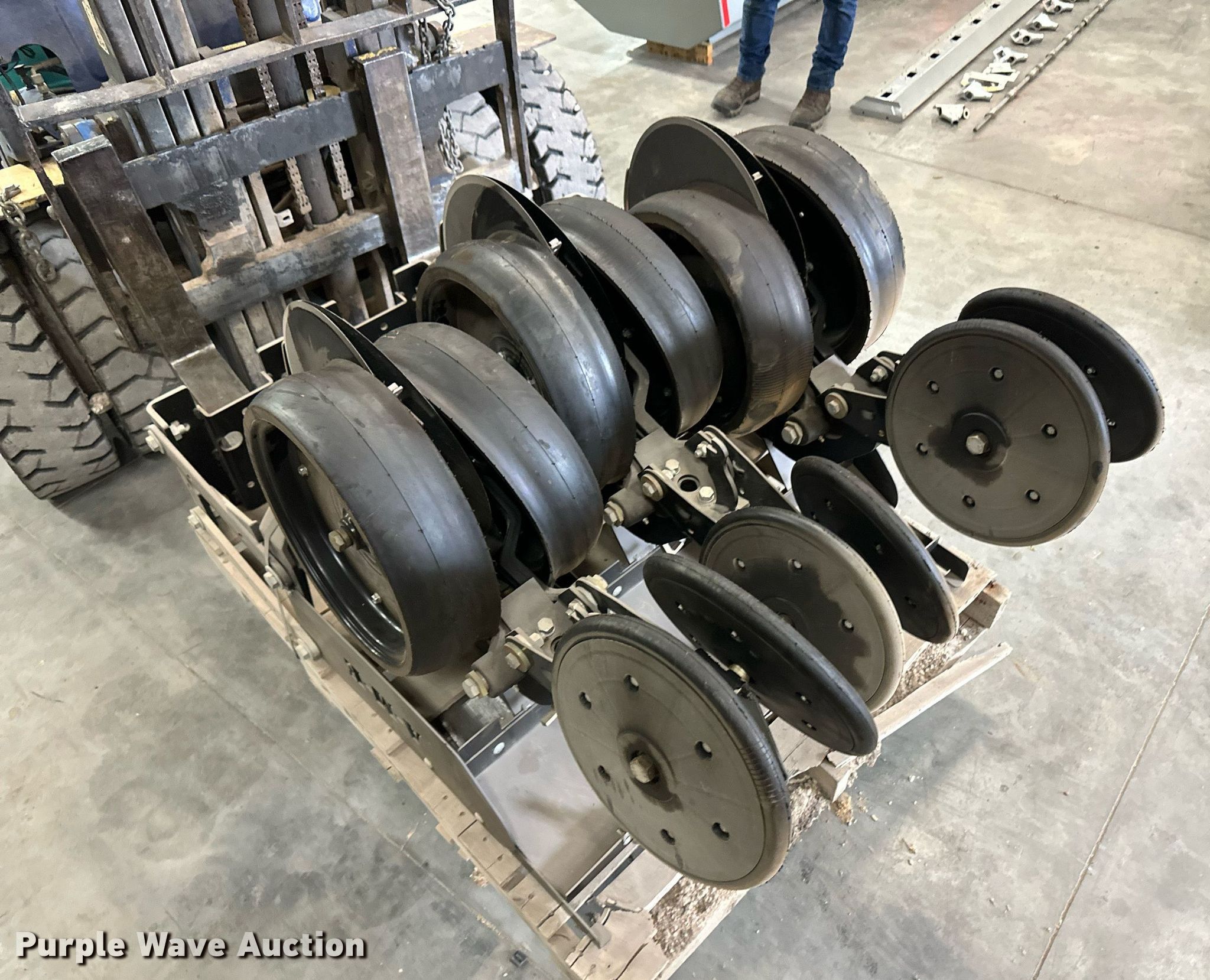 Purple Wave is selling a used Planter or Seeder Attach. in Kansas. This item is a (12) AME planter row units with the following: Shanks, 3.5mm x 15" seed disc openers, Seed tube guard-scraper, Hopper support panel, Shank mounting plate, Quick adjust gauge wheel arms, Walking gauge wheels, Tire size: 4.5" x 16", Quick adjust closing wheel arm, Rubber tires