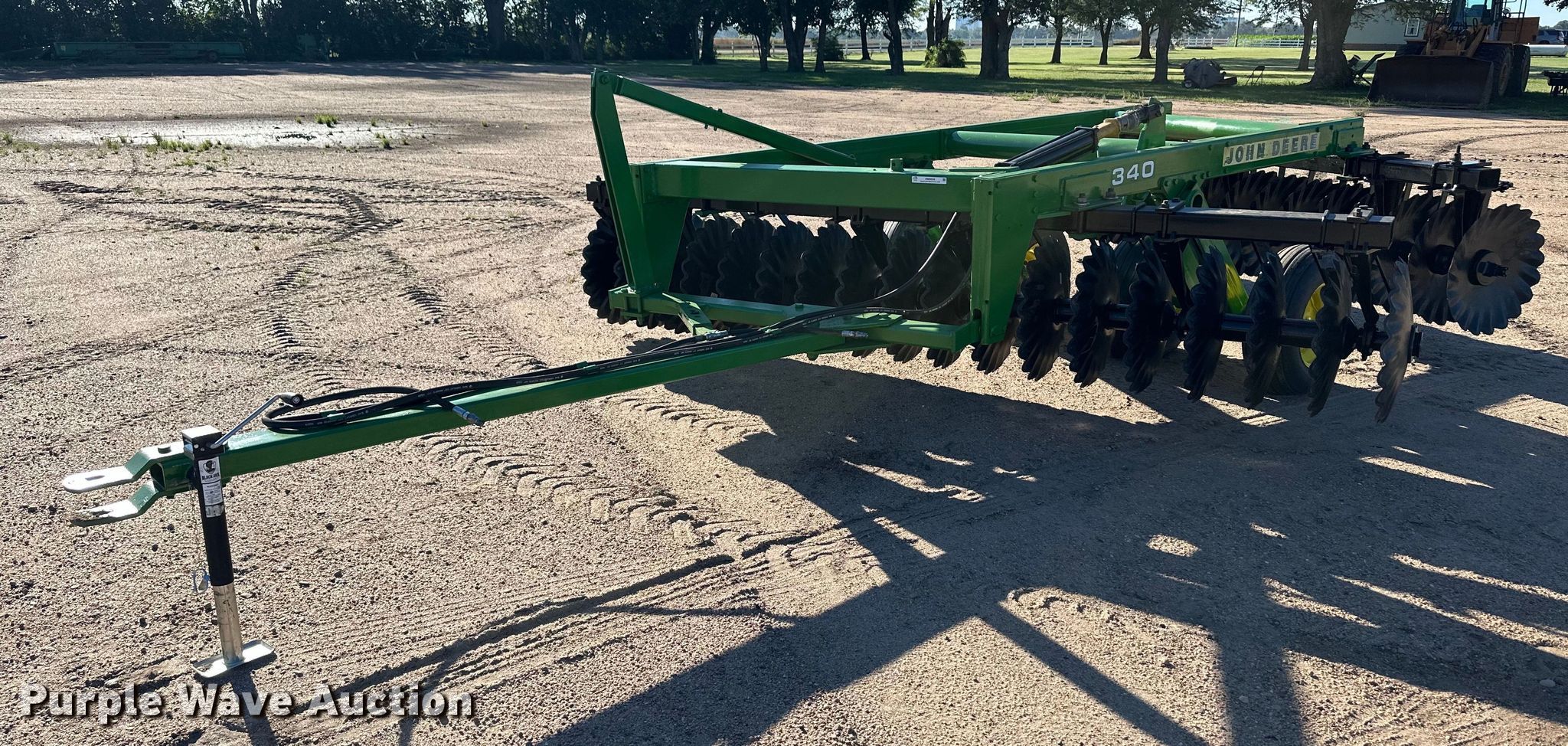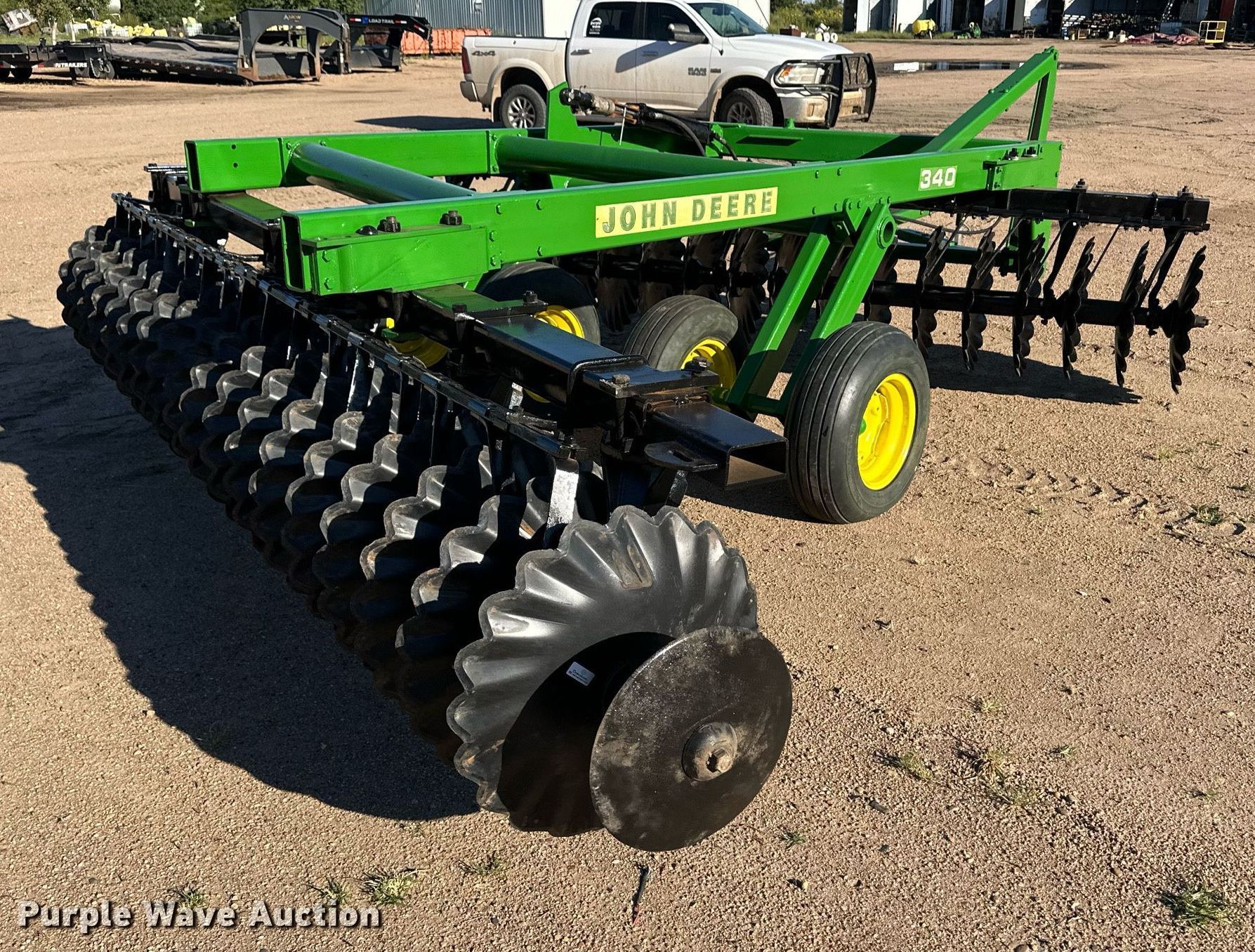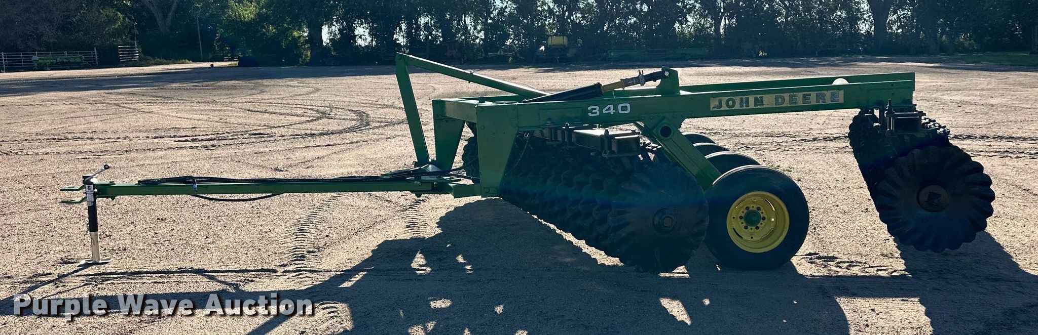 Purple Wave is selling a used Disk in Kansas. This item is a John Deere 340 off-set disk with the following: Overall width: 13'