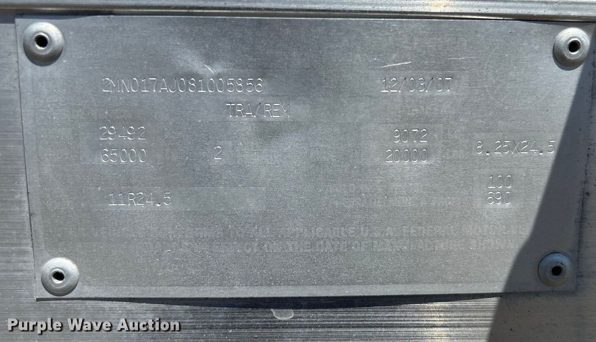 Purple Wave is selling a used Dry Van Trailer in Oklahoma. This item is a 2008 Trailmobile dry van trailer with the following: VIN: 2MN017AJ081005856