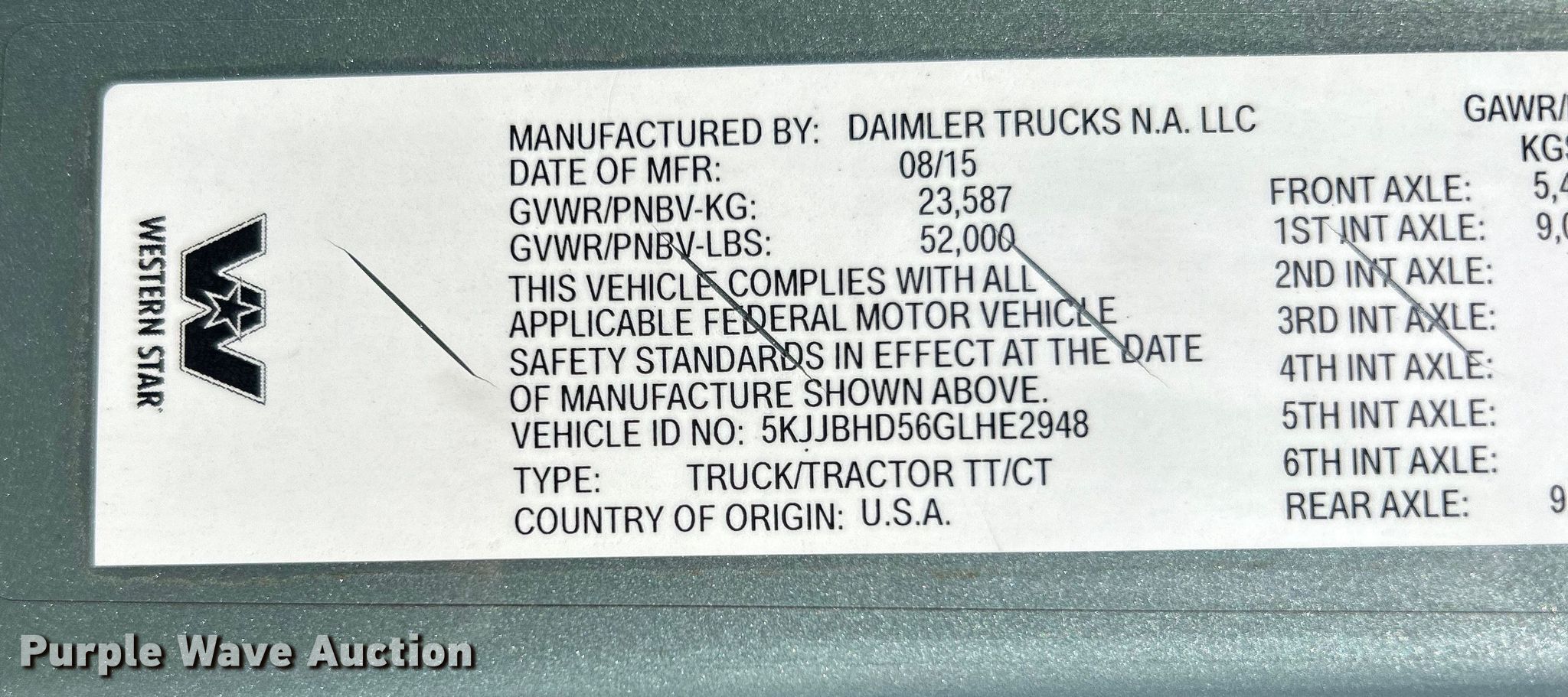 Purple Wave is selling a used Truck Tractor in Oklahoma. This item is a 2016 Western Star 5700XE semi truck with the following: Miles: 529,079 on odometer, VIN: 5KJJBHD56GLHE2948