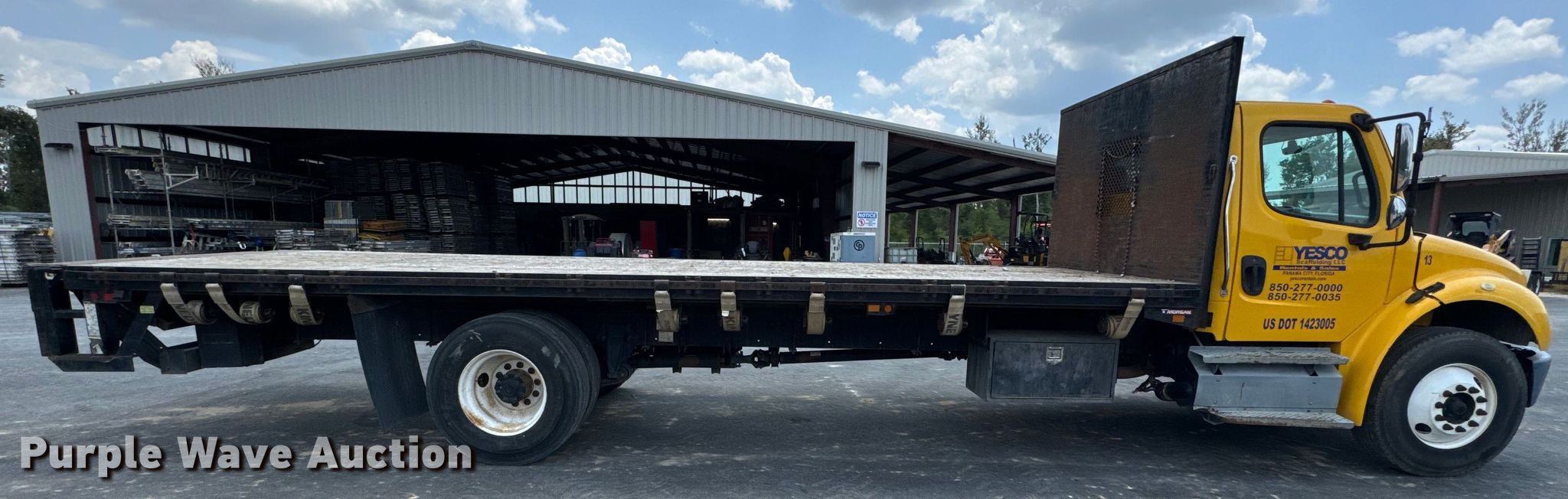 Purple Wave is selling a used Flat Bed Truck in Florida. This item is a 2013 Freightliner flatbed truck with the following: Miles: 178,306 on odometer, VIN: 1FVACWDT5DHBU8470