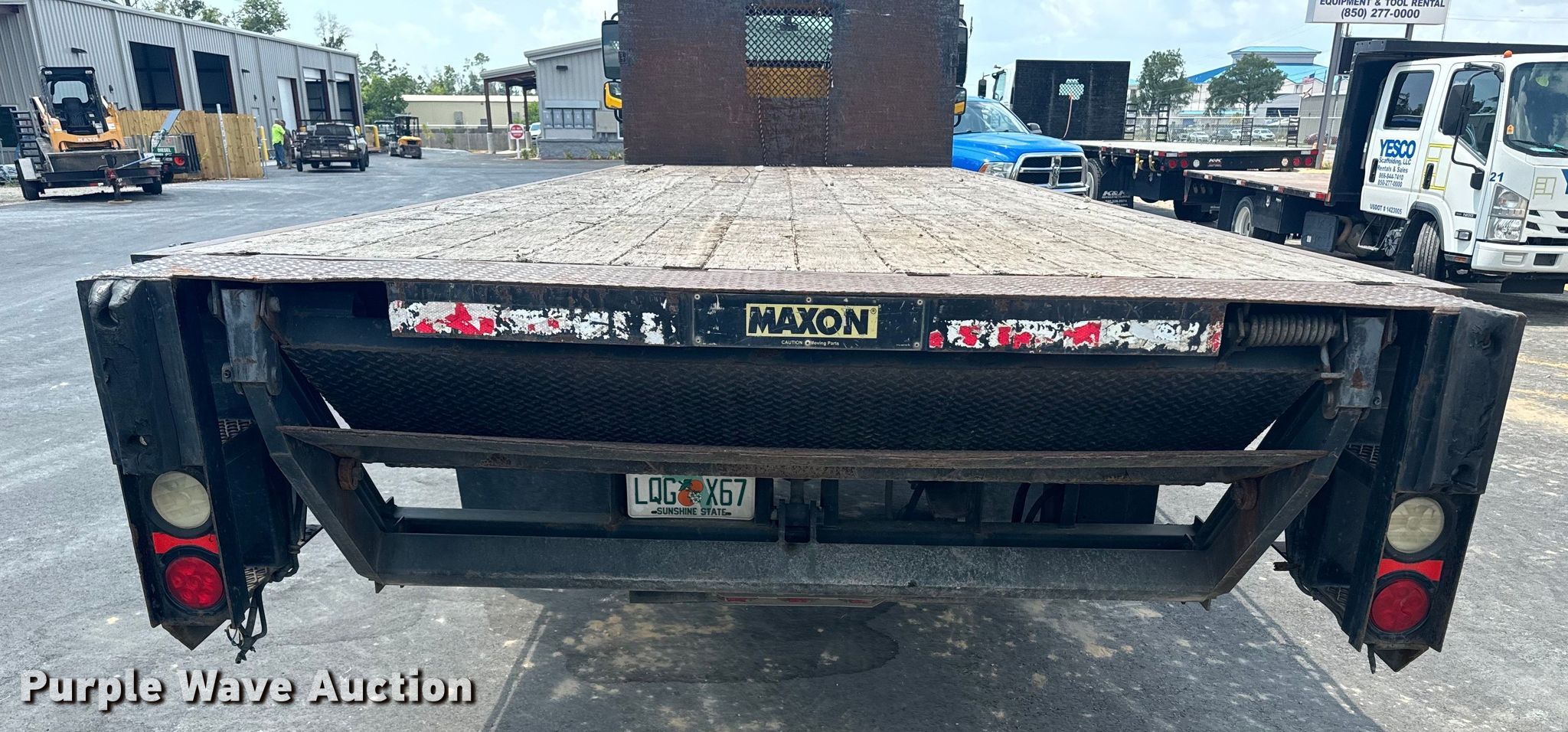 2013 Freightliner flatbed truck. Miles: 178,306 on odometer, VIN: 1FVACWDT5DHBU8470. Engine Cummins, Displacement: 6.7L, Cylinders: 6, Fuel type: Diesel. Transmission Automatic. Chassis Axles: Single, Suspension: Air, Brakes: Air, GVWR: 26,000 lbs. Interior AC, Heat, Cruise control. Features Flatbed Morgan, 25' L x 102" W, End gate lift Maxon. Tires Size: 11R22.5. Notes Dash warning indicator: Check engine. Florida title. YESCO RENTS. Panama City, FL 32405