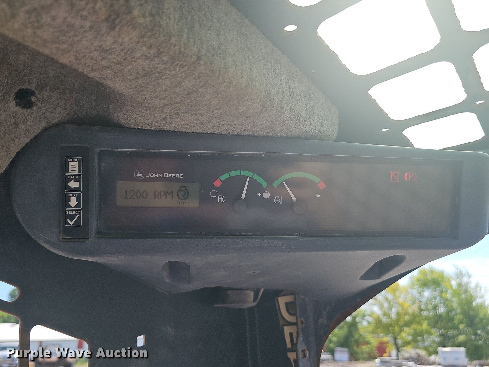 2014 John Deere 320E skid steer loader. Hours: 2,985 on meter, Serial: 1T0320EJCEJ256370. Engine John Deere, Displacement: 3.319L, Cylinders: 4, Fuel type: Diesel. Transmission Hydrostatic. Operators station OROPS, Heat, Bucket control: Hand, Pattern changer. Features Auxiliary hydraulics, Quick coupler: Hydraulic, Counter weights, Bucket Worksite Pro C72, Width: 72", Low profile, Cutting edge: Bolt-on. Tires Size: 12x16.5 NHS. Mann's Lawn & Landscaping Inc.. Saint Joseph, MO 64505