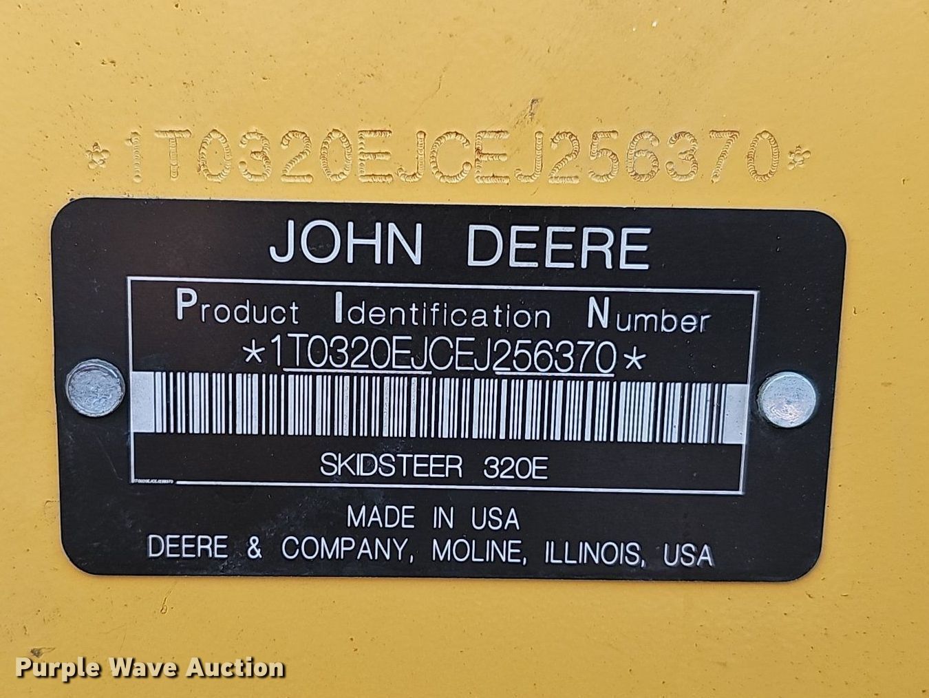 Purple Wave is selling a used Skid Steer Loader in Missouri. This item is a 2014 John Deere 320E skid steer loader with the following: Hours: 2,985 on meter, Serial: 1T0320EJCEJ256370