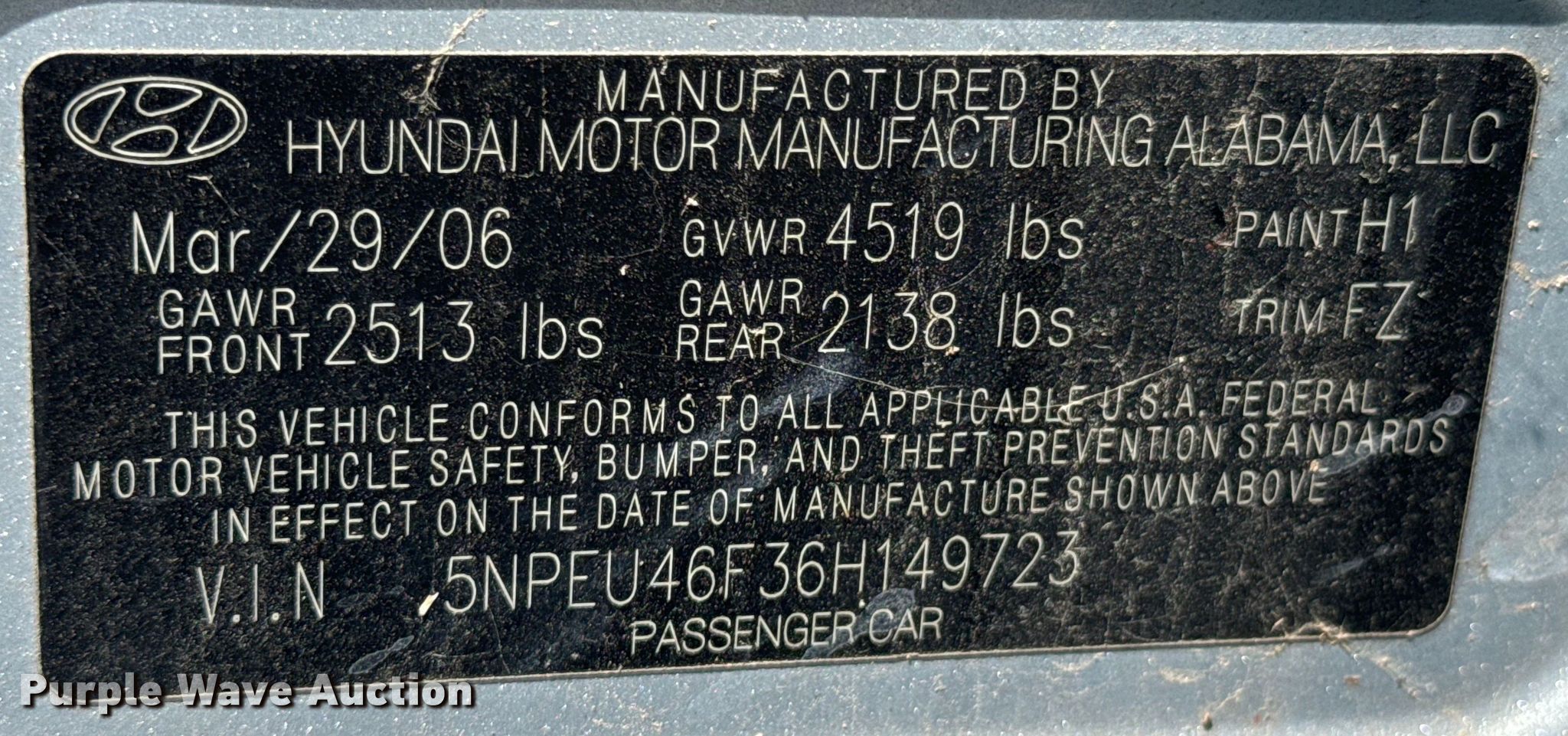 Purple Wave is selling a used Passenger Vehicle in Arkansas. This item is a 2006 Hyundai Sonata with the following: Miles: 202,548 on odometer, VIN: 5NPEU46F36H149723