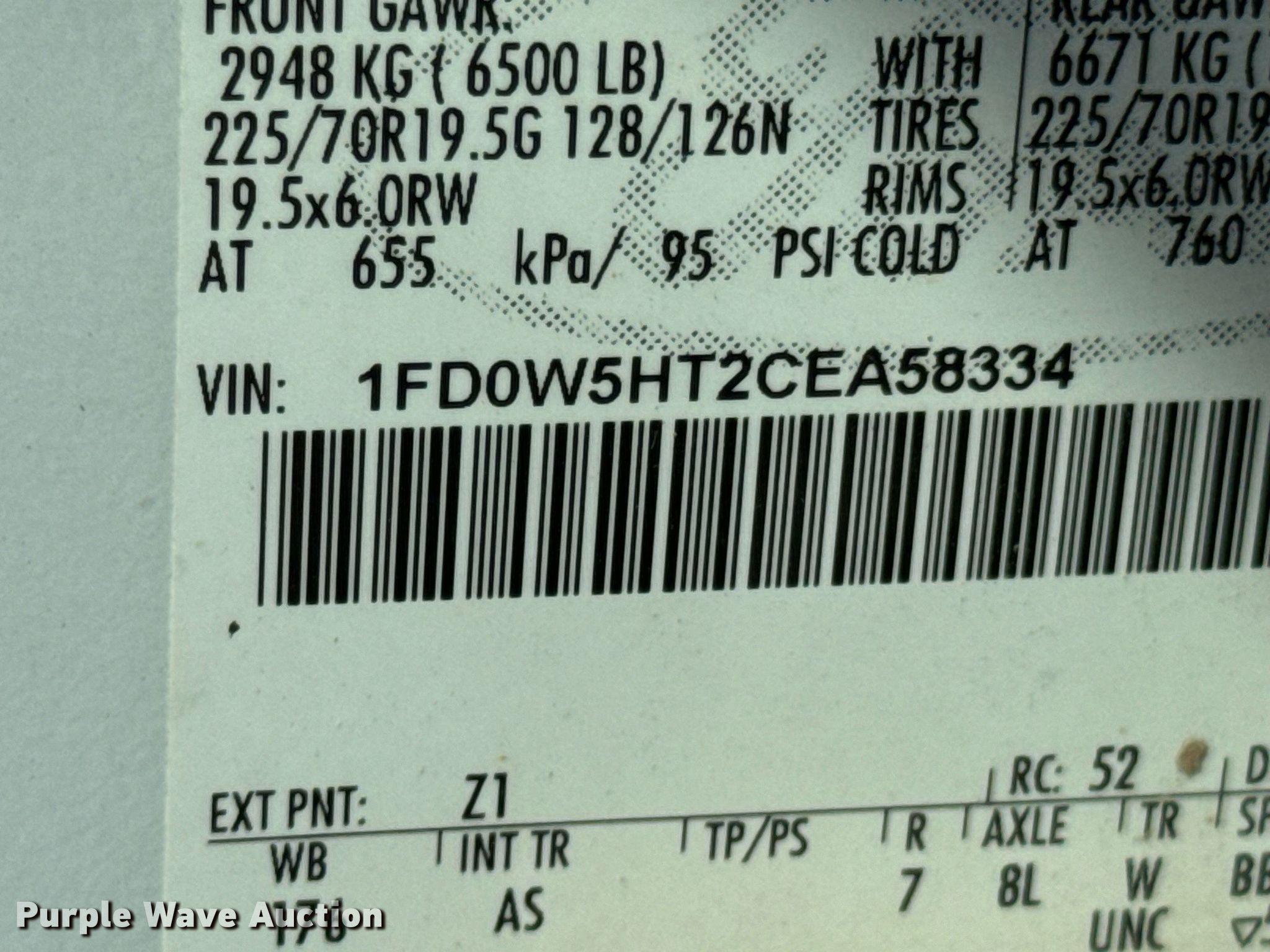 2012 Ford F550 Super Duty Crew Cab flatbed truck. Miles: 153,049 on odometer, VIN: 1FD0W5HT2CEA58334. Engine Displacement: 6.7L, Cylinders: 8, Fuel type: Diesel. Transmission Automatic. Chassis Four wheel drive, Axles: Single, Suspension: Spring, Brakes: Hydraulic, GVWR: 19,500 lbs, Wheelbase: 176". Interior AC, Heat, Cruise control, Auxiliary controls, Brake controller. Features Flatbed 9' L x 94" W, Hitch: Gooseneck. Tires Size: 225/70R19.5. Notes Windshield chipped or cracked. Oklahoma title. Title distribution may be delayed up to 14 days from verification of funds. Northeast Electric Cooperative. Vinita, OK 74301