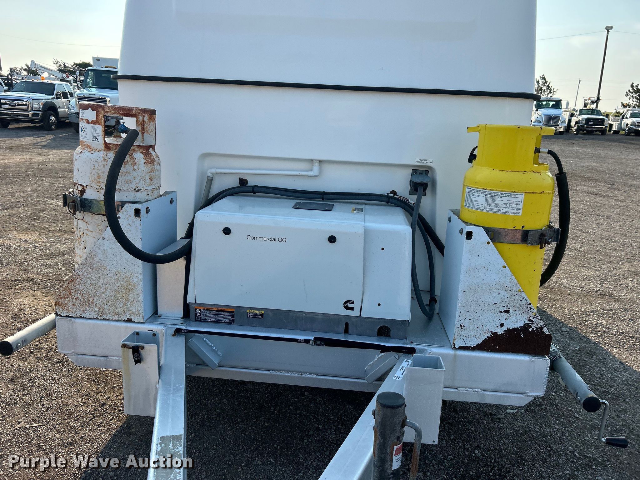 2012 T.A. Pelsue Co. FLXCEN-001 fiber optic trailer. VIN: 1P9XF6J23C1139043. Dimensions Overall: 18' L x 94" W, Body: 11' 3" L x 72" W. Features Deck type: Wood, Onan generator Hours: 266 on meter, Fuel: Propane Tanks included, Climate controls. Chassis Hitch: Pintle, Landing gear: Single, Brakes: Electric, Axles: Tandem, GVWR: 5,000 lbs, GAWR: 2,500 lbs. Tires Steel wheels, Size: ST205/75R15. Oklahoma title. Title distribution may be delayed up to 14 days from verification of funds. Collinsville, OK 74021