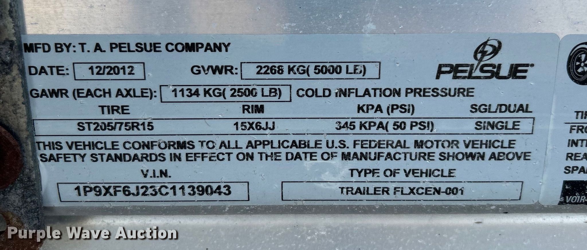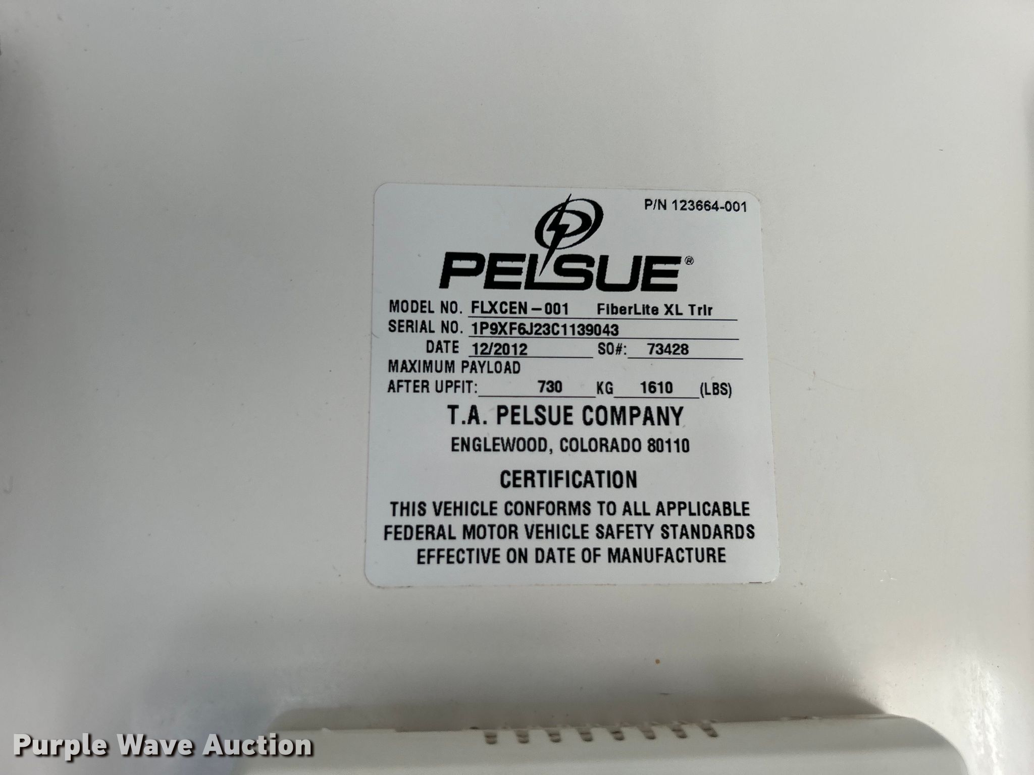 Purple Wave is selling a used Enclosed Cargo Trailer in Oklahoma. This item is a 2012 T.A. Pelsue Co. FLXCEN-001 fiber optic trailer with the following: VIN: 1P9XF6J23C1139043