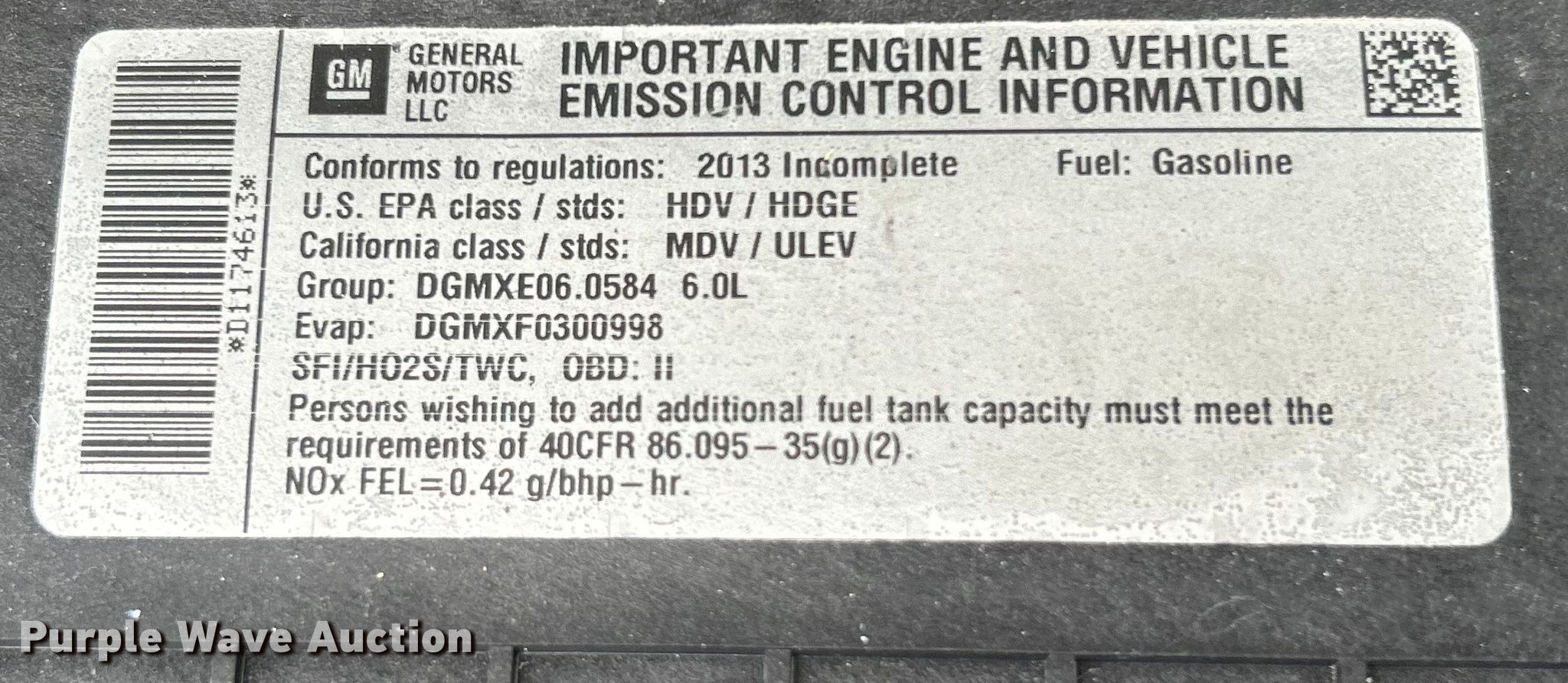 Purple Wave is selling a used Box Truck in Oklahoma. This item is a 2013 Chevrolet Express 3500 box truck with the following: Miles: 121,924 on odometer, VIN: 1GB3G3CG2D1174613