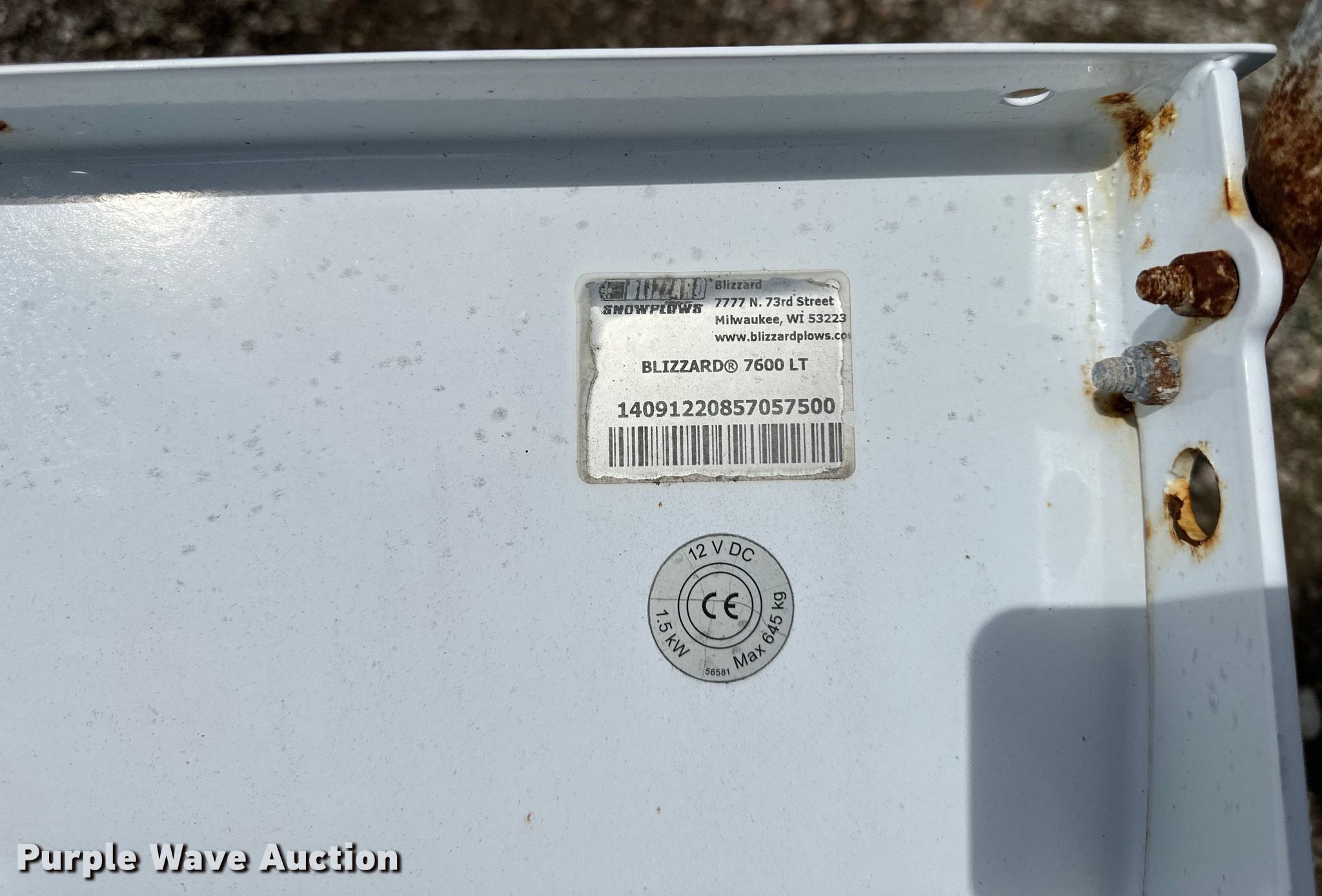 Purple Wave is selling a used Automotive Parts or Acces. in Kansas. This item is a Blizzard 7600 LT snow plow with the following: Width: 7' 6"