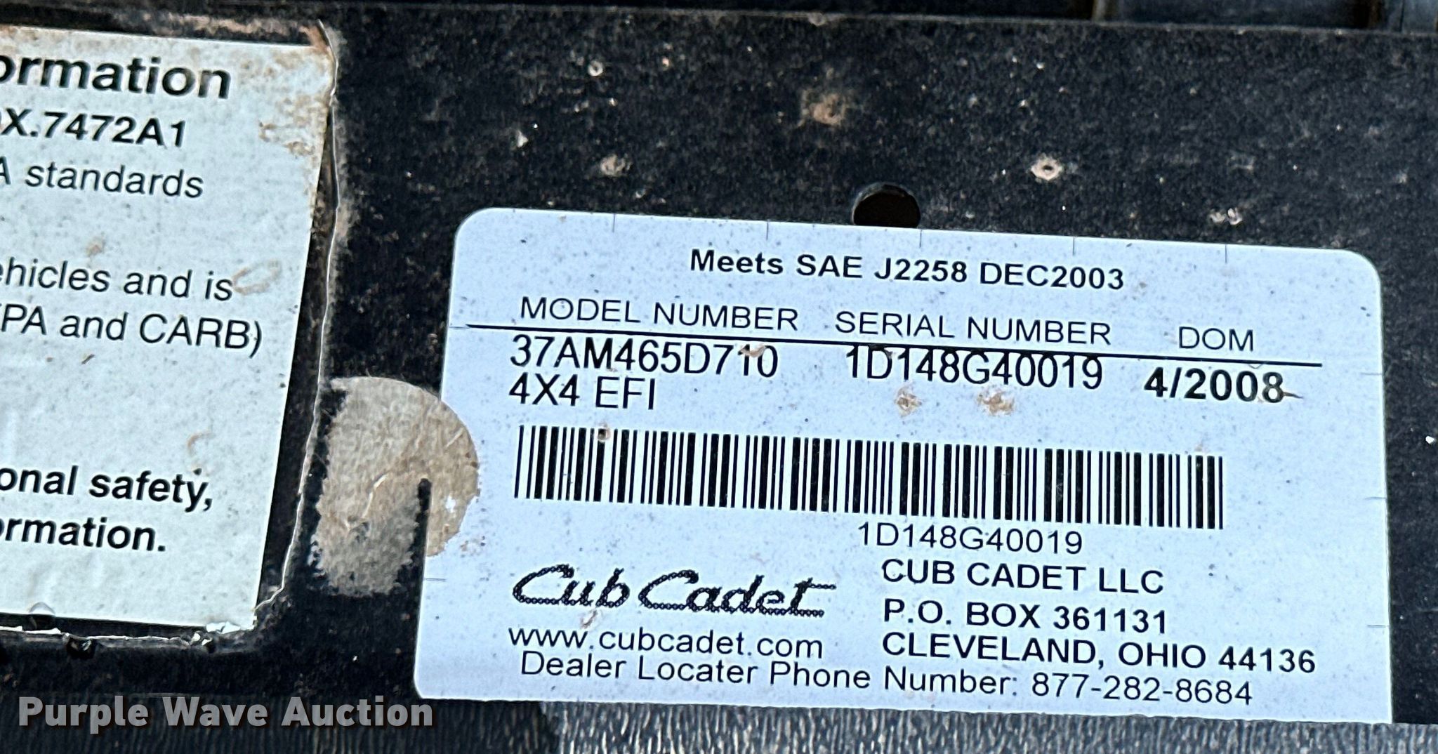 Purple Wave is selling a used Utility Vehicle in Oklahoma. This item is a 2008 Cub Cadet Volunteer utility vehicle with the following: Hours: 341 on meter, Serial: 1D148G40019