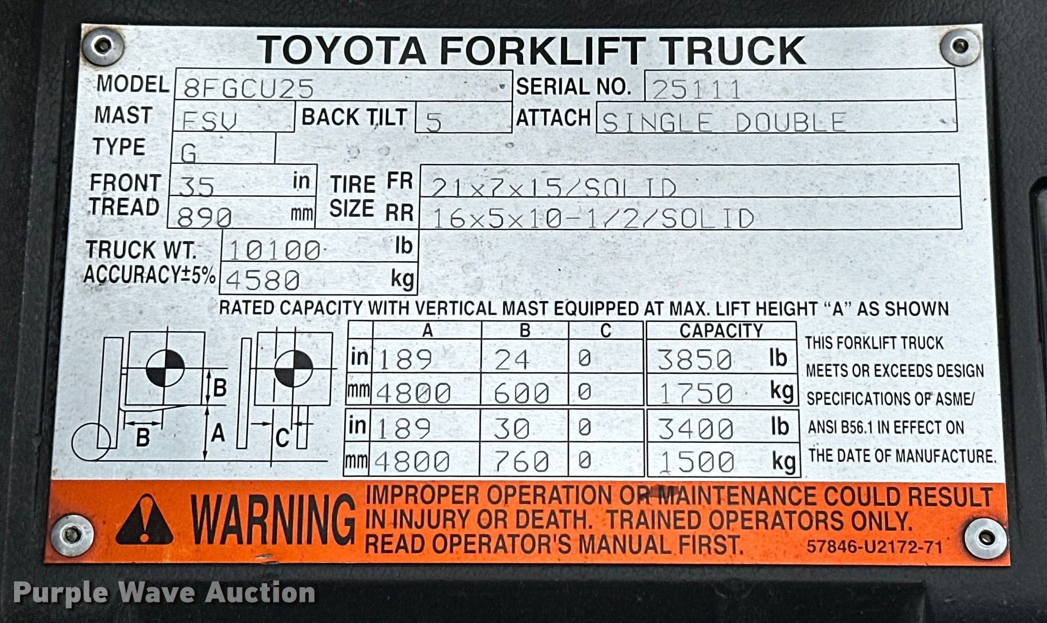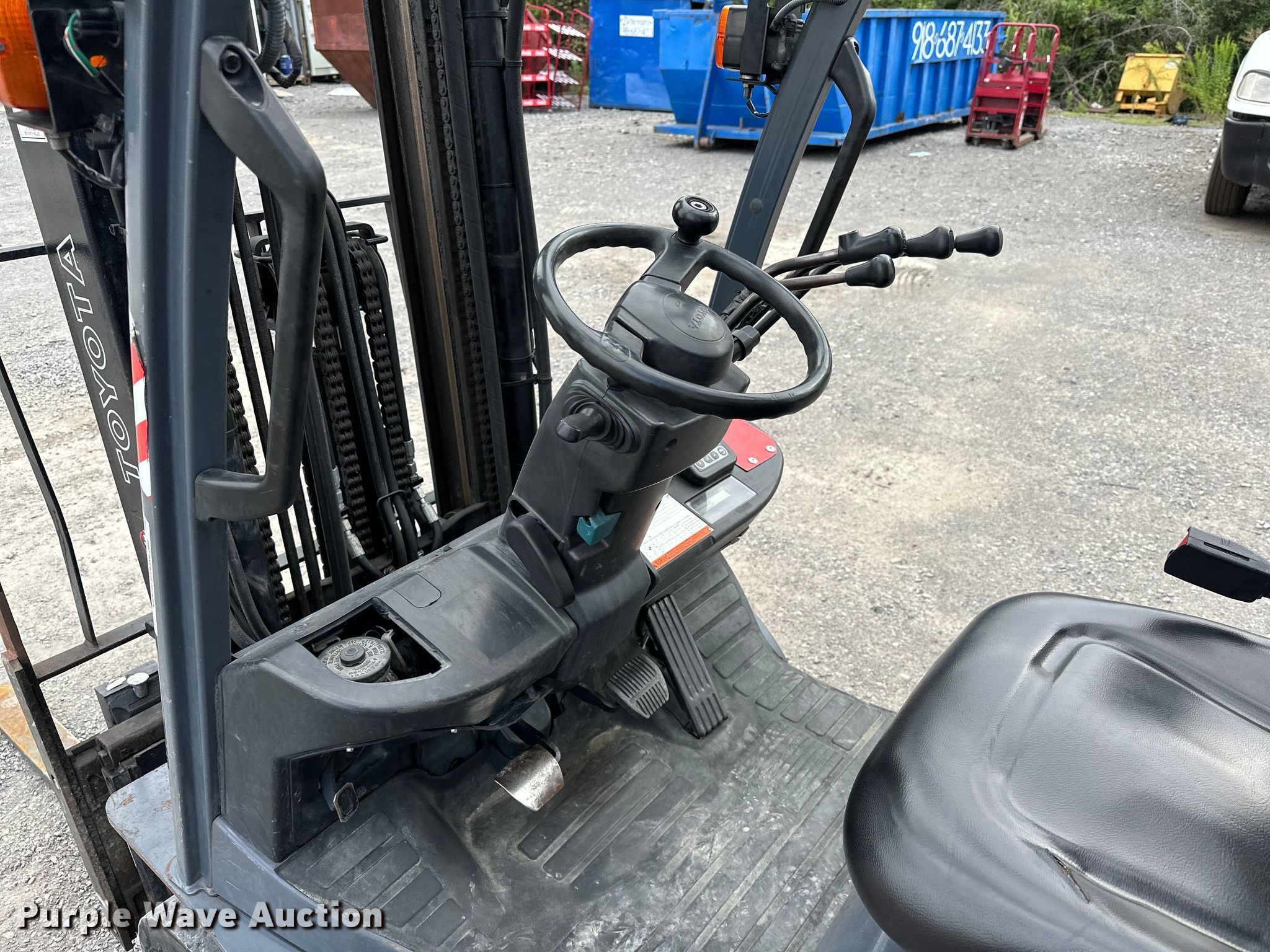 Purple Wave is selling a used Warehouse Forklift in Oklahoma. This item is a 2009 Toyota 8FGCU25 forklift with the following: Hours: 20,864 on meter, Serial: 25111