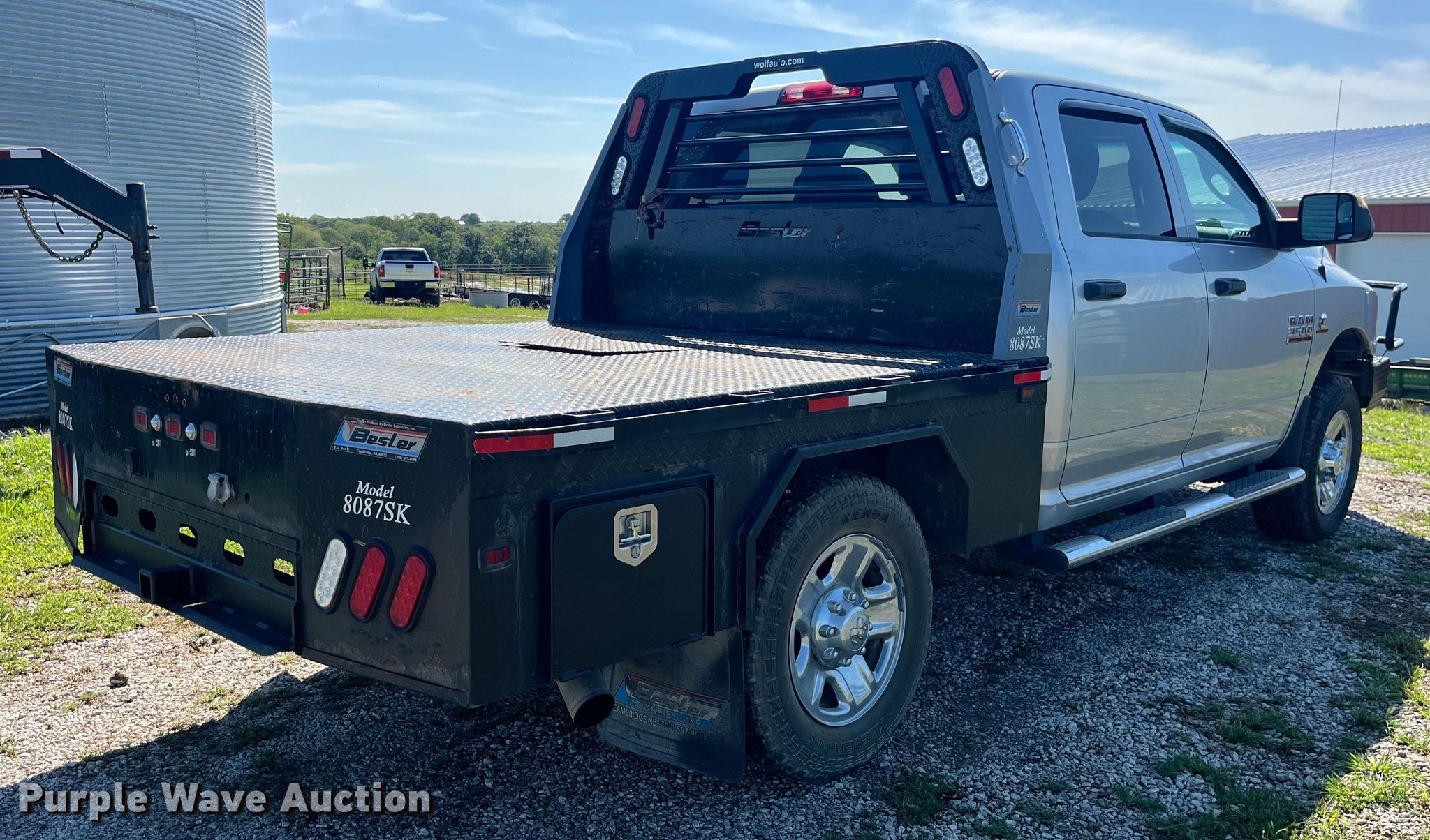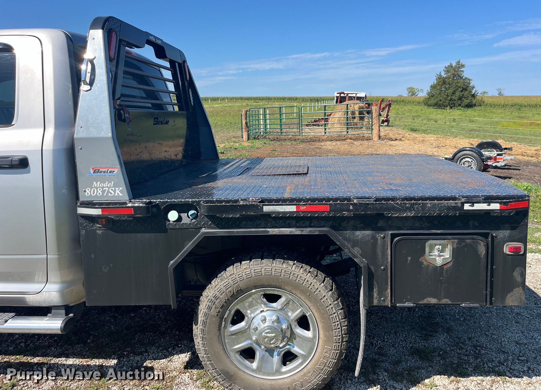 2015 Dodge Ram 3500HD Crew Cab flatbed pickup truck. Miles: 262,996 on odometer, VIN: 3C63R3CL4FG523754. Engine Displacement: 6.7L L6 OHV, Cylinders: 6, Fuel type: Diesel. Transmission Automatic, Four wheel drive. Interior AC, Heat, Heated mirrors, Power windows, Power locks, Cruise control. Features Flatbed Besler 8087SK, 84" L x 80" W, Hitch: Gooseneck. Tires Size: 265/70R18. Notes Dash warning indicator: Service tire pressure system, Service required, Windshield chipped or cracked, Turn signal lamps need replaced. Iowa title. Seller is an Iowa licensed motor vehicle dealer. The buyer may be required to pay sales tax and/or registration fees to the dealer prior to taking possession. Title will be assigned and distributed by the dealer. Please contact the seller for distribution questions. Southern Iowa Wholesale Inc.. Leon, IA 50144