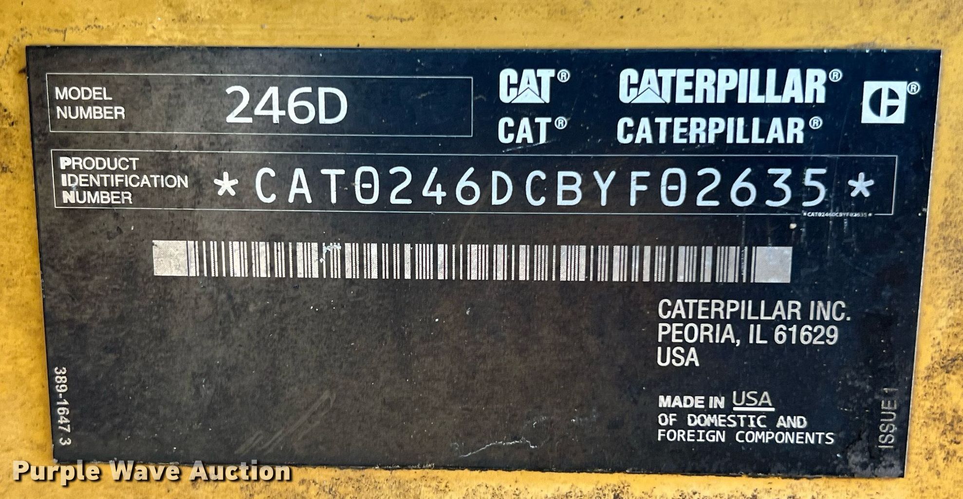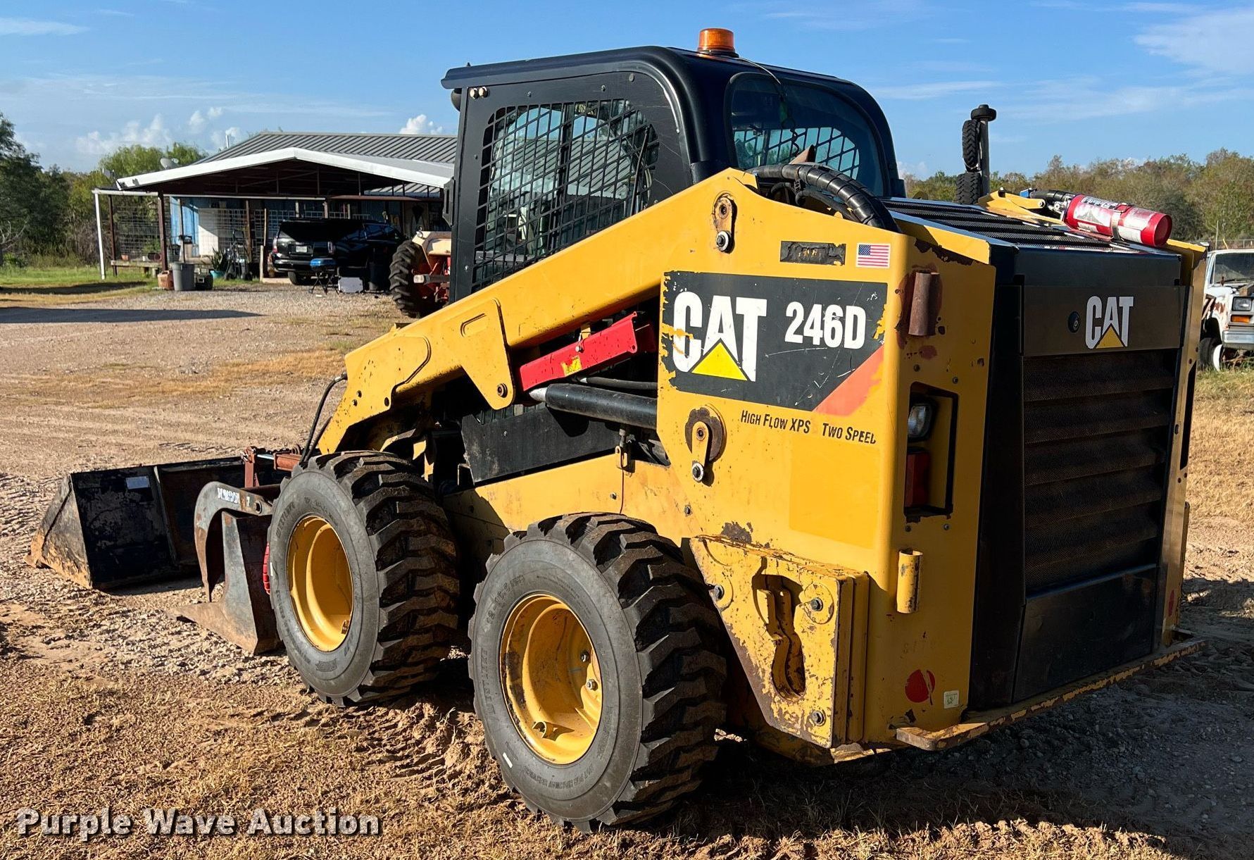 Purple Wave is selling a used Skid Steer Loader in Texas. This item is a 2016 Caterpillar 246D skid steer loader with the following: Hours: 7,520 on meter, Serial: CAT0246DCBYF02635