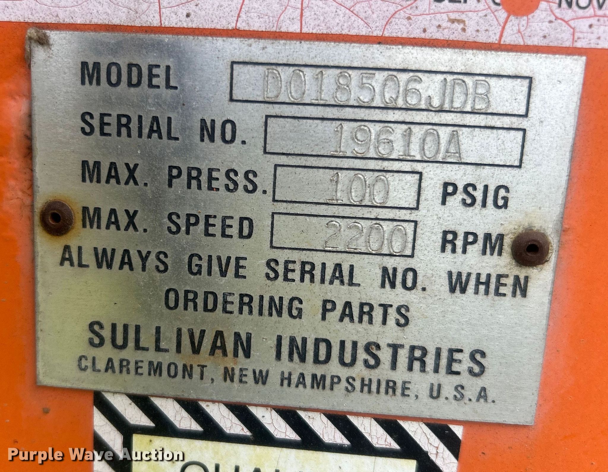 Purple Wave is selling a used Air Compressor in Oklahoma. This item is a 1999 Sullivan Industries DO185Q6JDB air compressor with the following: Hours: 1,936 on meter