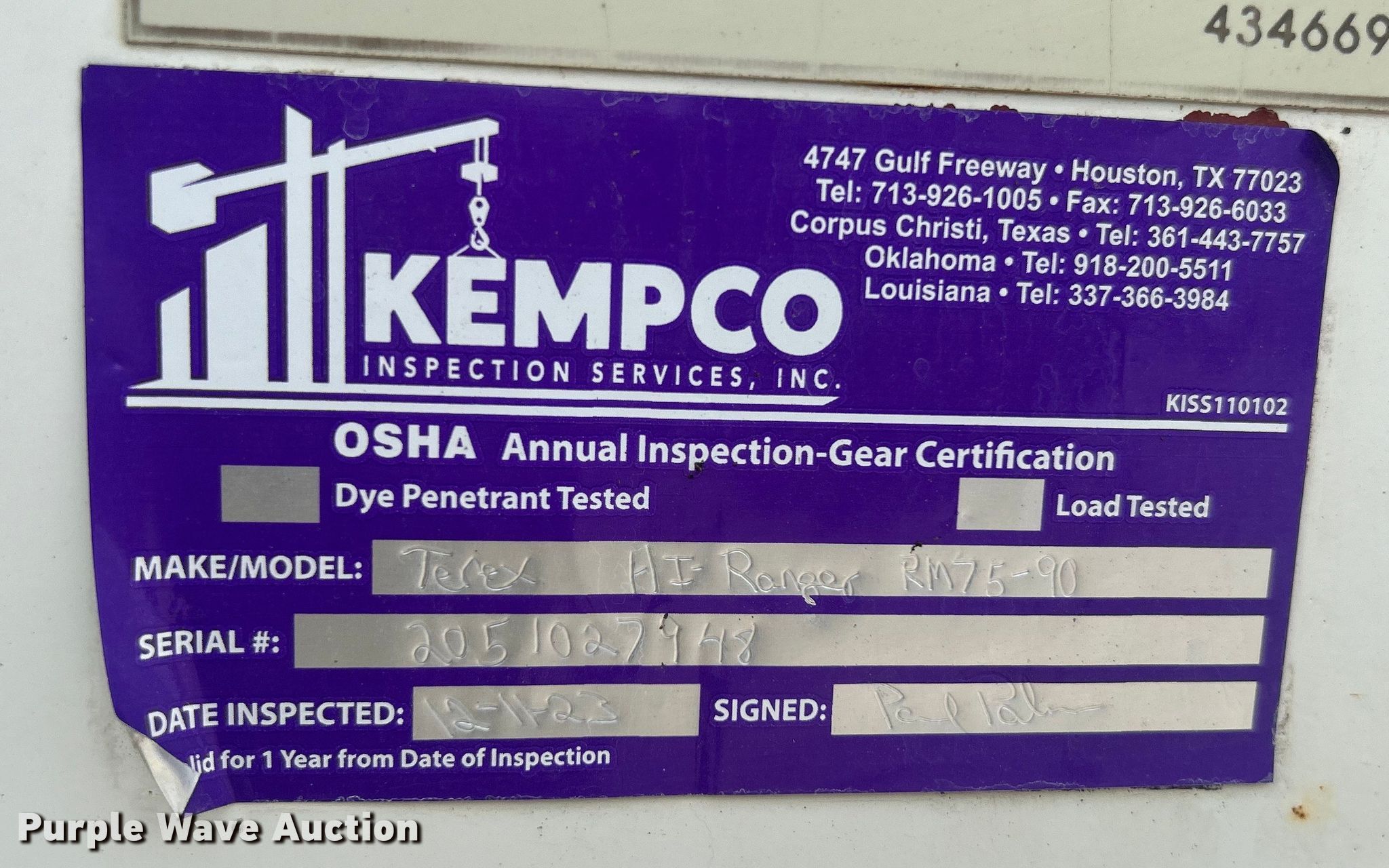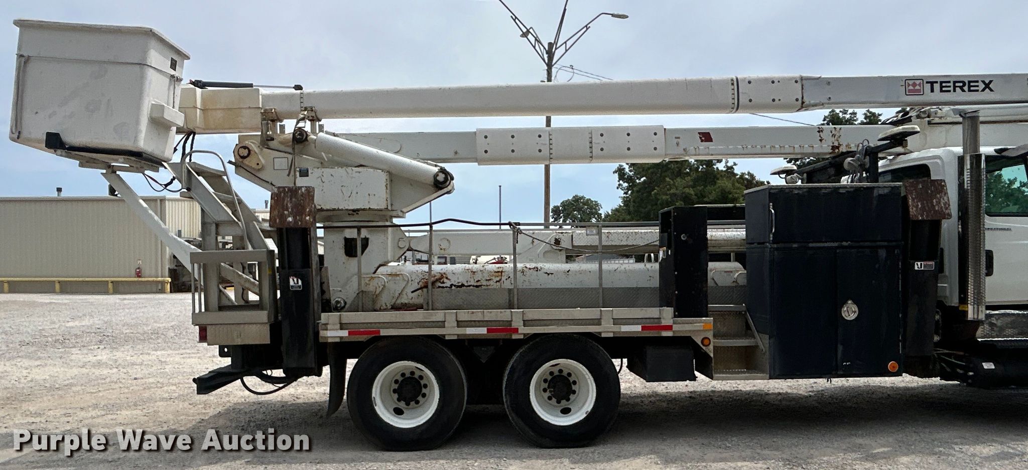 2006 International 7600 bucket truck. Miles: 60,869 on odometer, Hours: 7,797 on meter, VIN: 1HTWXAHT26J252378, Unit #: 205026. Engine Displacement: 10.8L, Cylinders: 6, Fuel type: Diesel. Transmission Automatic. Chassis Axles: Tandem, Suspension: Spring over walking beam, Brakes: Air, PTO. Interior AC, Heat, Heated mirrors, Cruise control, Auxiliary controls. Features Bed Dakota Bodies 48-CB, Serial: DB07426, 21' L x 96" W, Boom 2005 Terex Hi-Ranger RM75-90, Serial: 205102798, Maximum lift capacity: 800 lbs, Maximum lift height: 90', Boom type: Articulating, Insulated, Telescopic, Man basket, Boom controls Ground, Platform/ basket, Certification valid through: 12/24. Tires Front: 425/66R22.5, Rear: 11R22.5. Oklahoma title. Title distribution may be delayed up to 14 days from verification of funds. TLS Group, Inc. Tulsa, OK 74107
