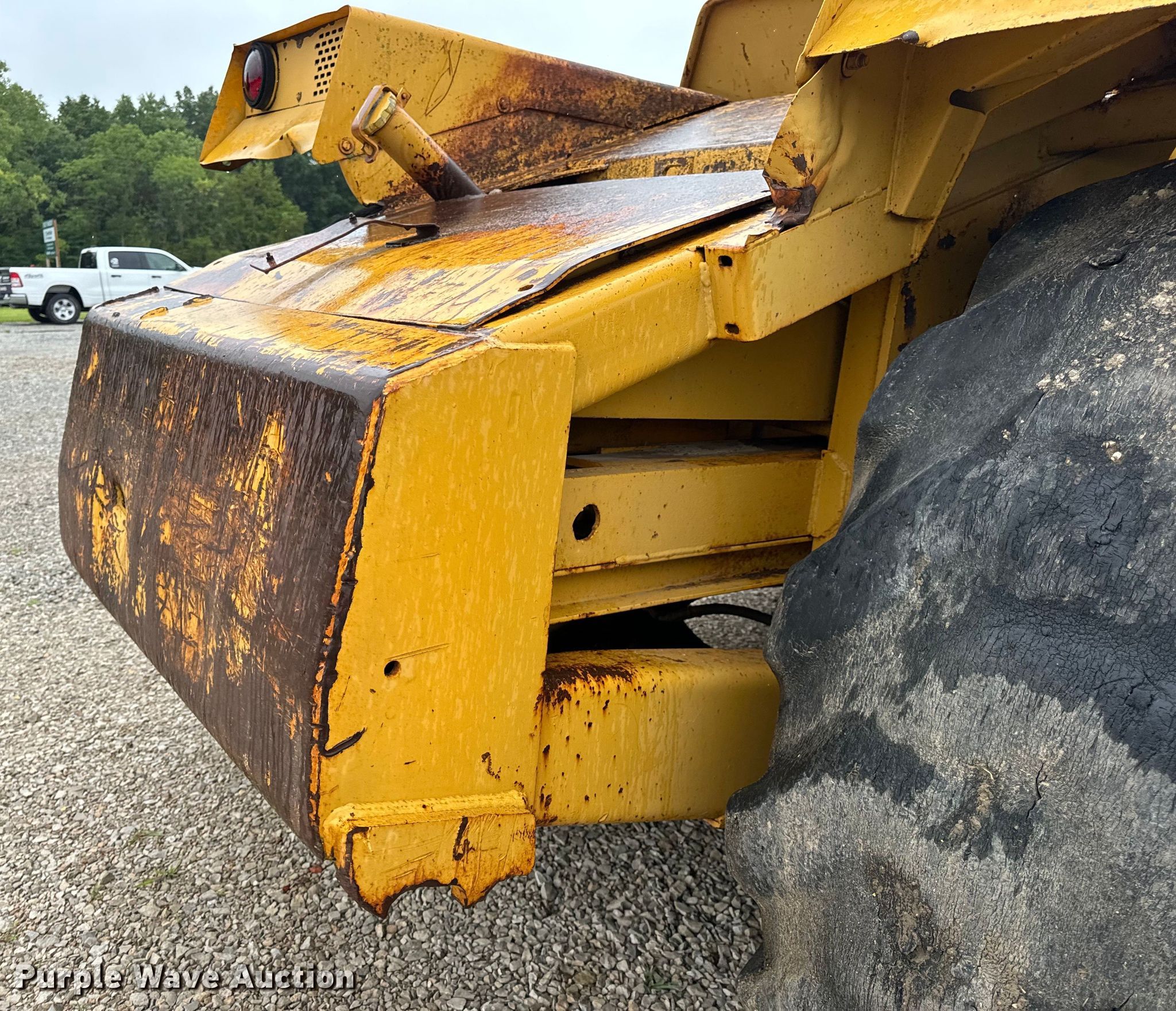 1981 John Deere 862 elevating scraper. Hours: Unknown, Serial: 004053T. Engine John Deere, Displacement: 10.1L, Cylinders: 6, Fuel type: Diesel, HP: 250. Transmission Powershift, 6F - 1R. Chassis Brakes: Hydraulic. Operators station Enclosed cab, Heat. Features Bowl capacity: 16 cu.yd., Elevator reverse, Scraper controls: Lever controls, Rear push block. Tires Front: 23.5-25, Rear: 26.5-25. Notes Glass cracked, Non-operational hour meter, Unknown operating condition of elevator reverse. Richter Excavating & Plumbing. Warrensburg, MO 64093