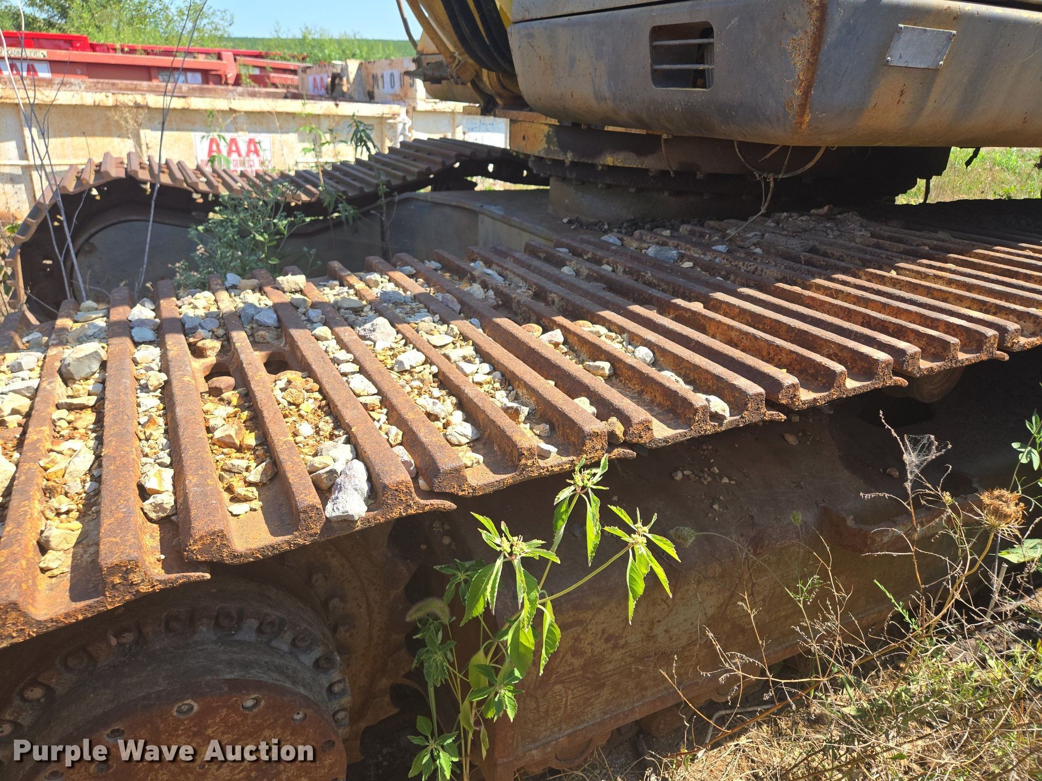 1996 Kobelco SK300LC excavator. Hours: Unknown, Serial: YCU0504. Engine Cummins, Cylinders: 6, Fuel type: Diesel. Transmission Hydrostatic. Operators station Enclosed cab. Features Auxiliary hydraulics, Boom Standard, Stick Stick length: 13' 9", Bucket Width: 35", Teeth: 4. Tracks Width: 33", Steel, Grouser pads: Triple. Notes Glass missing, Wiring damaged, Non-operational unit. AAA Disposal Service, Inc. Buckner, MO 64016