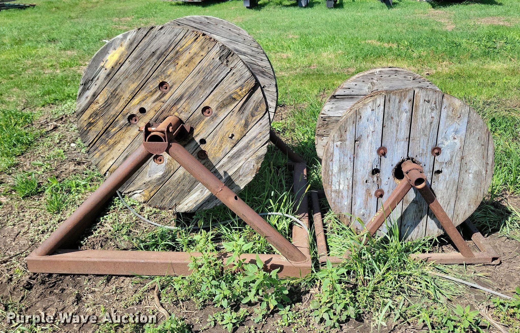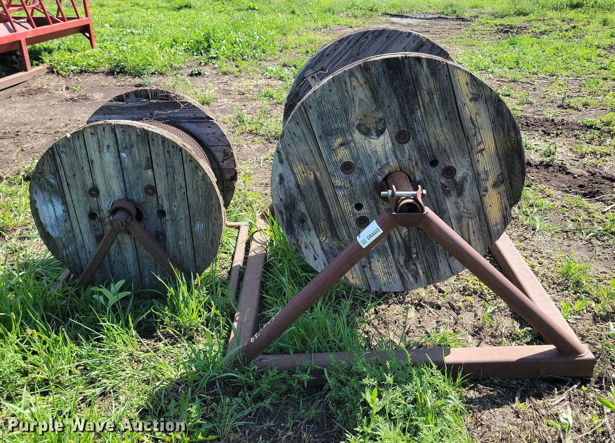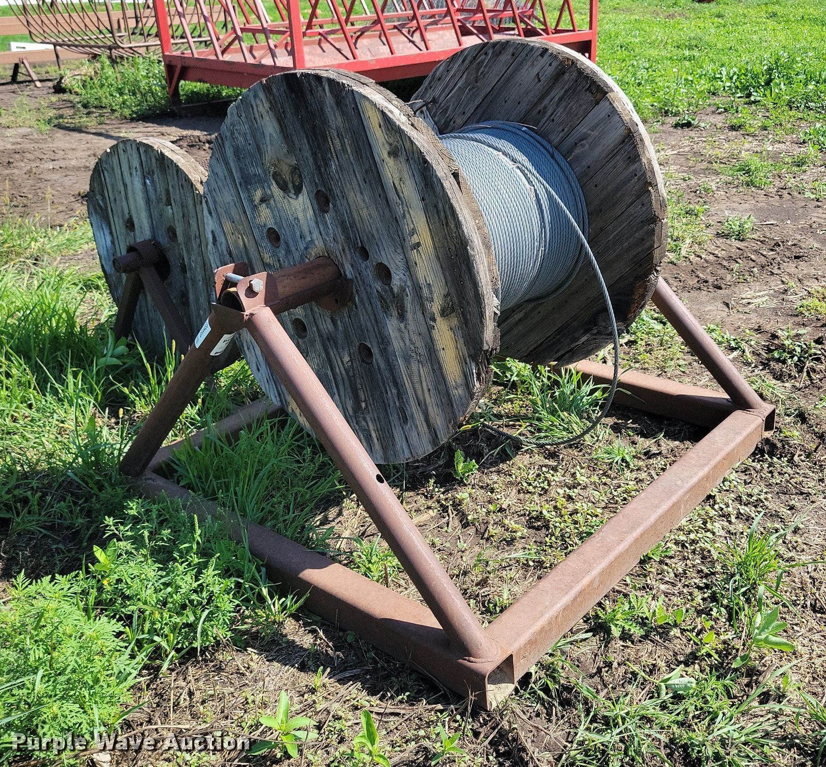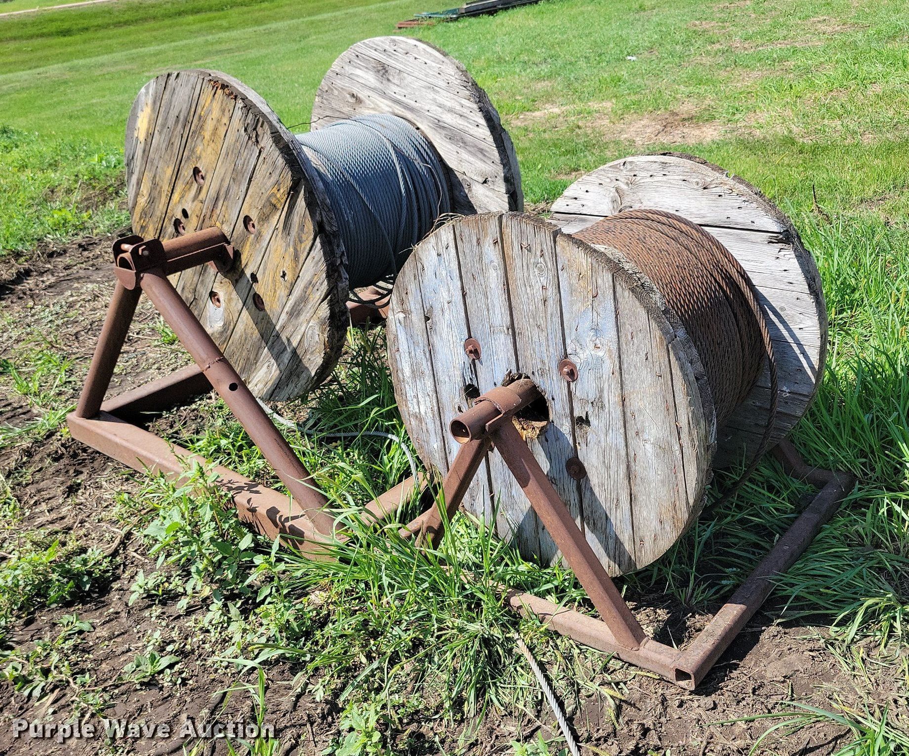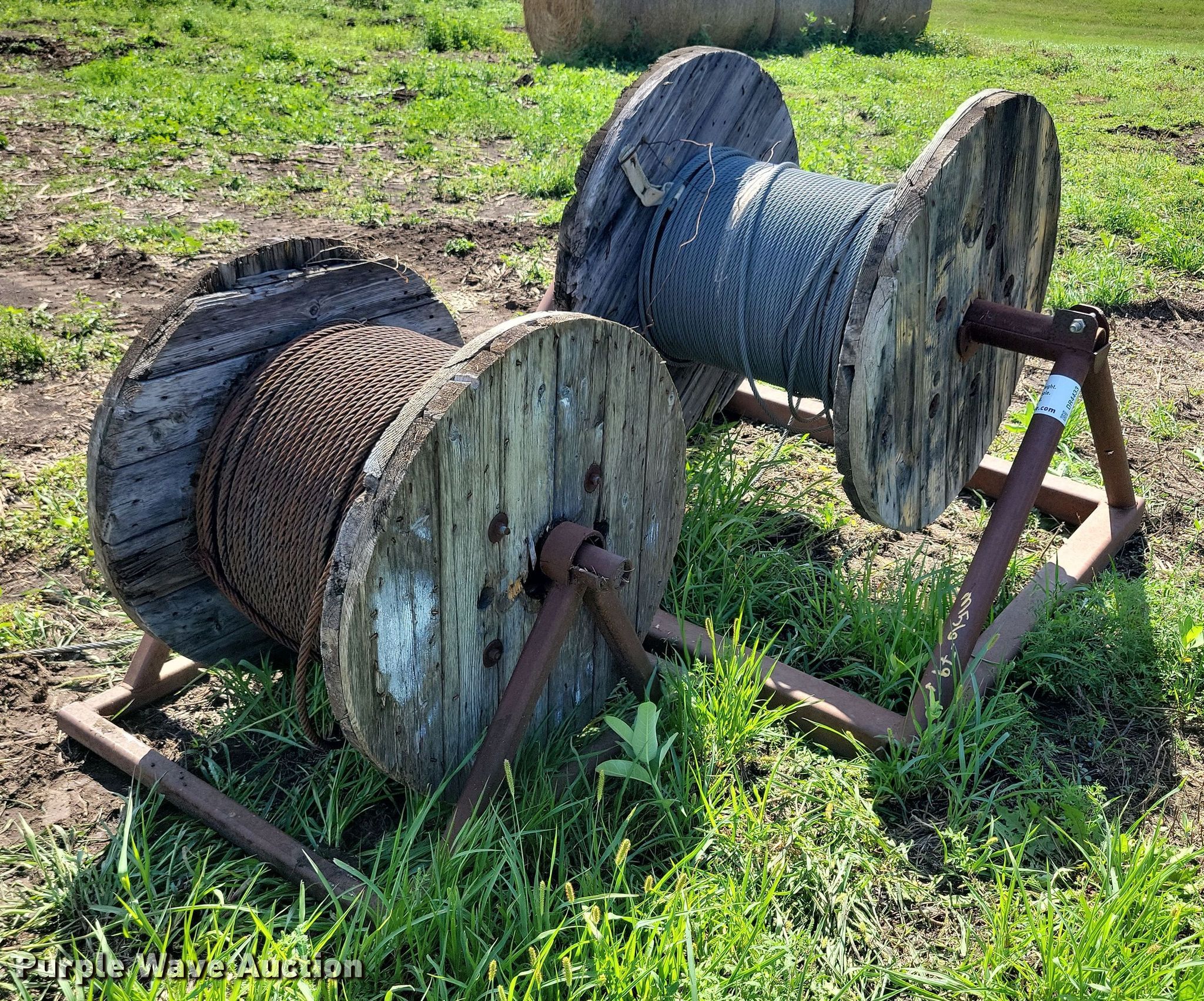 Purple Wave is selling a used Tools in South Dakota. This item is a (2) spools of cable with the following: 1/2" diameter, 5/8" diameter, A-frame stands