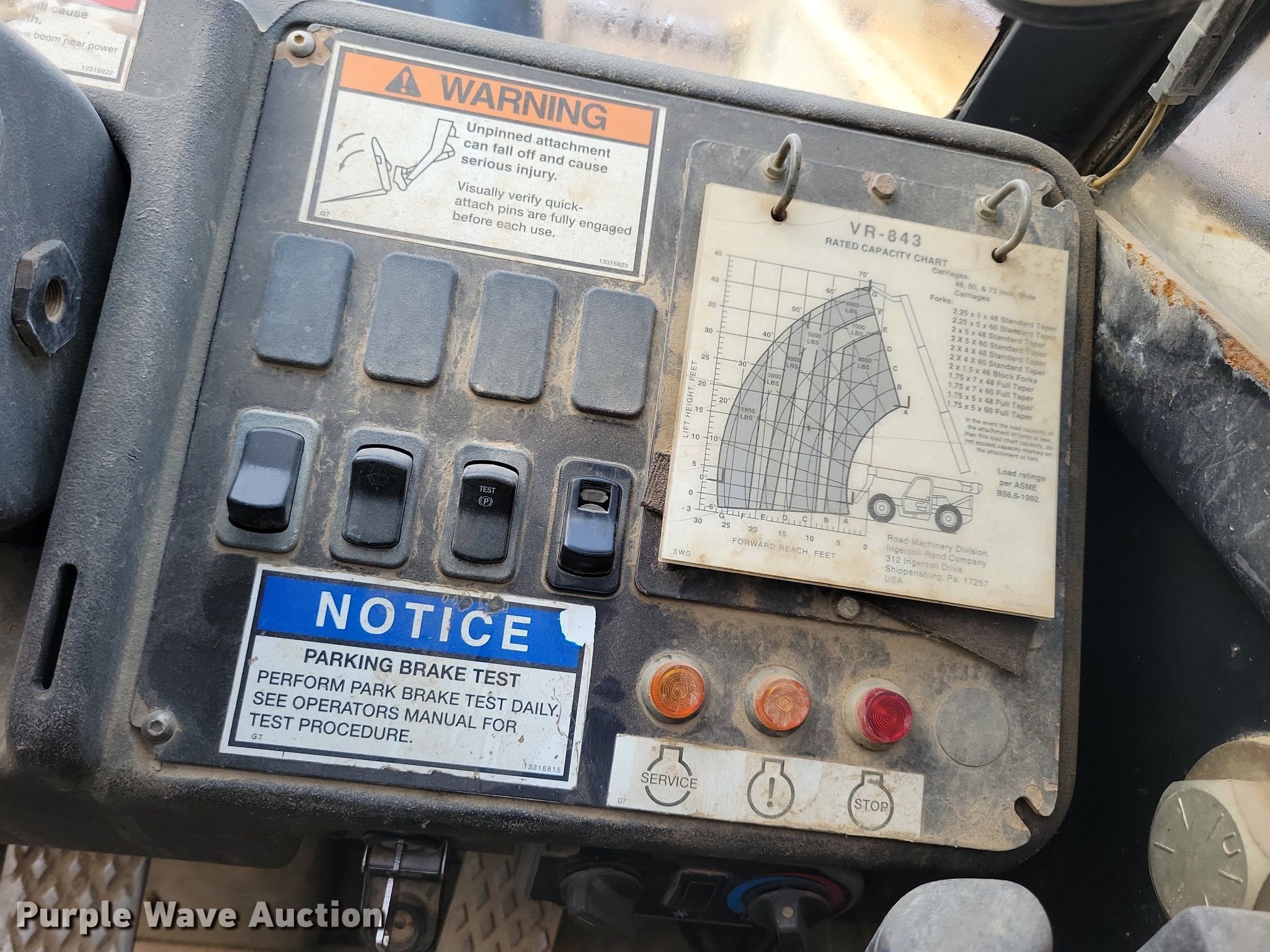 Purple Wave is selling a used Telehandler in South Dakota. This item is a 2003 Ingersoll-Rand VR-843C telehandler with the following: Hours: 9,660 on meter, Serial: 173823
