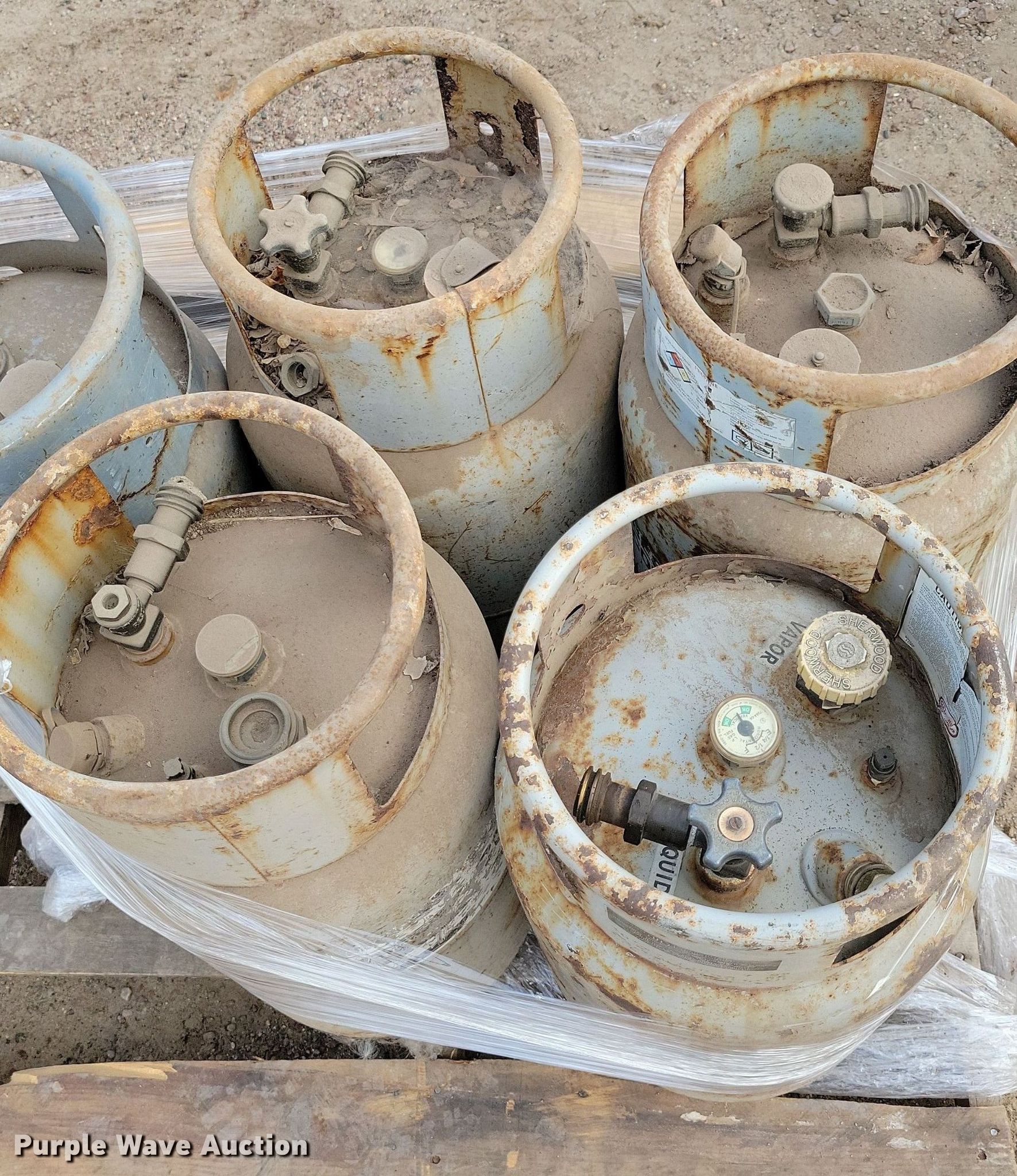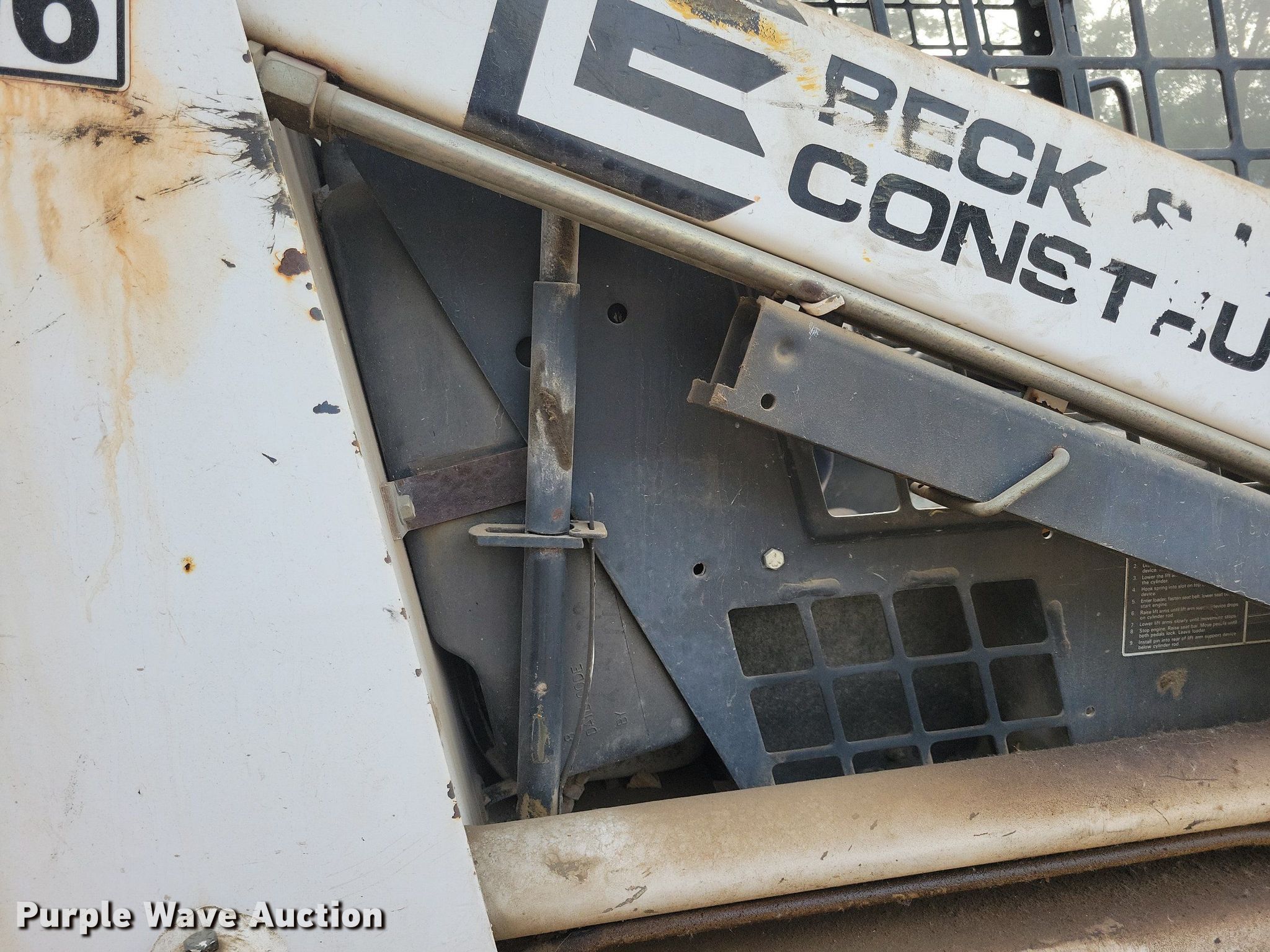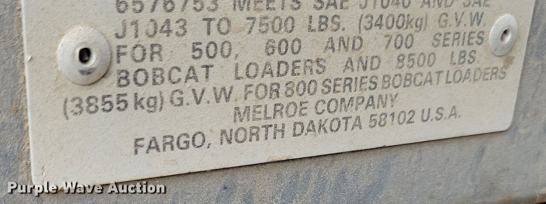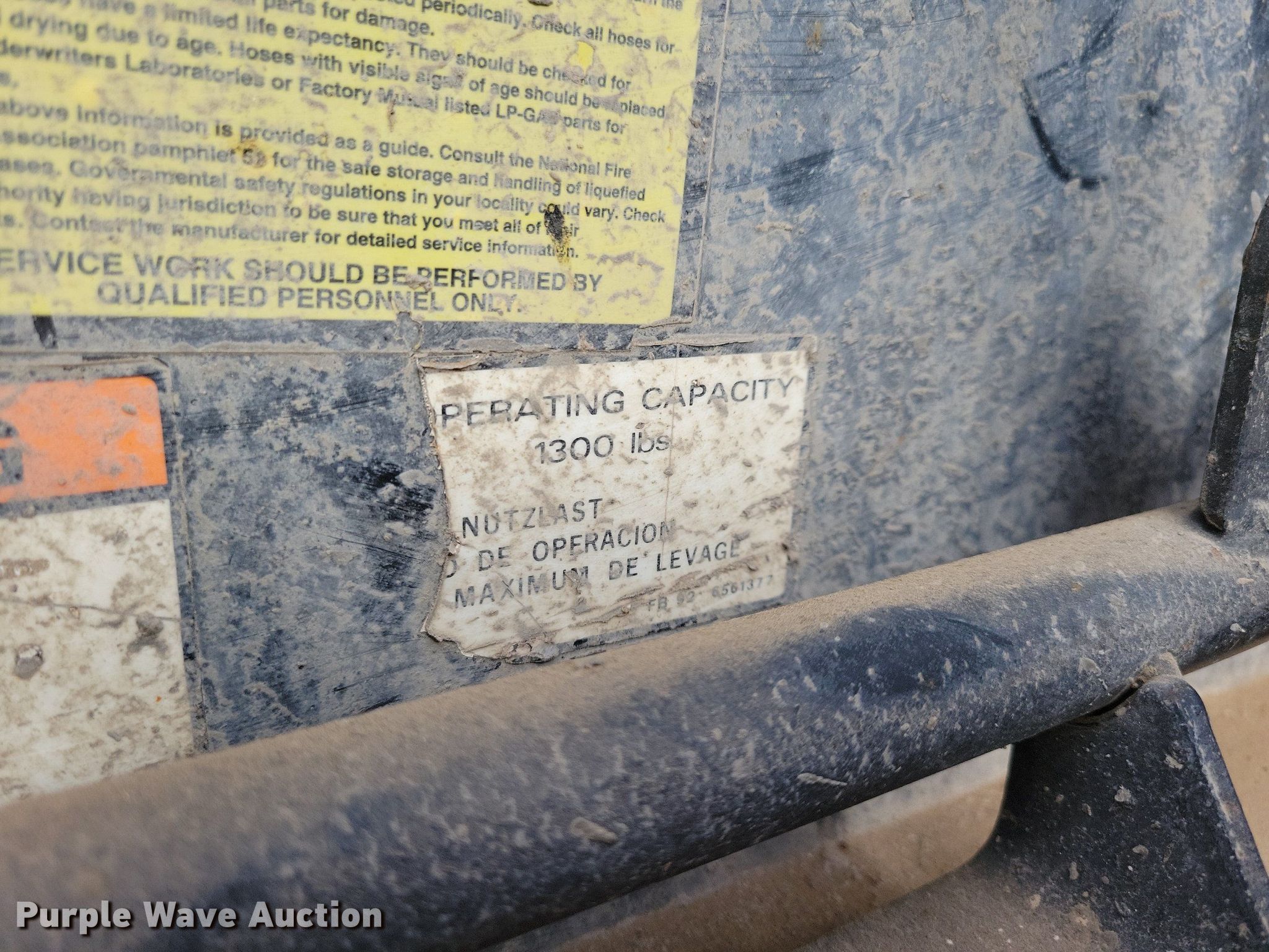 1993 Bobcat 742B skid steer loader. Hours: 1,040 on meter, Serial: 509418626. Engine Cylinders: 4, Fuel Type: LPG. Transmission Hydrostatic. Operators station OROPS, Bucket control: Foot. Features Auxiliary hydraulics, Quick coupler: Manual, Bucket Width: 67", Low profile, Skid steer scraper. Tires Size: 10-16.5. Notes (5) additional LPG tanks included, Safety arm cylinder issues, weak. Beck & Hofer Construction. Sioux Falls, SD 57104