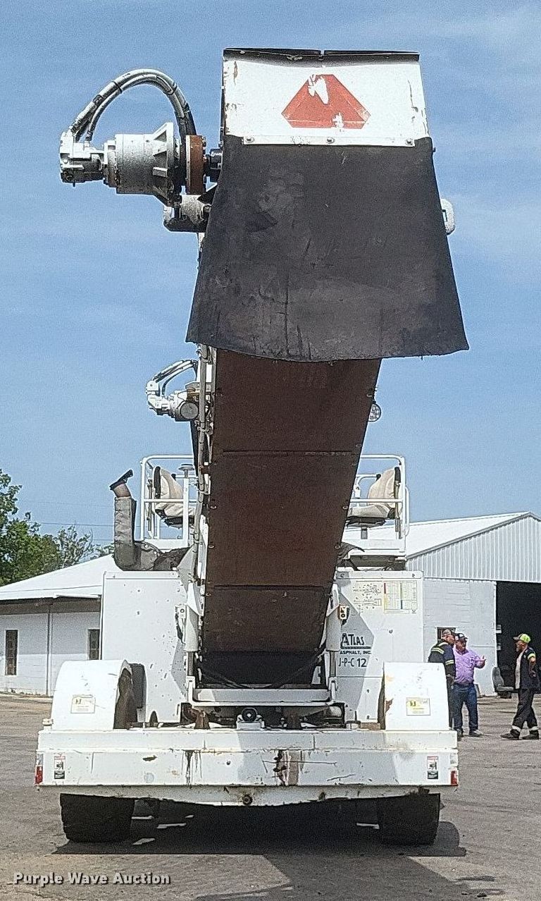 2012 Roadtec MTV1000D material transfer machine. Hours: 4,727 on meter, Serial: MTV1000D-160, Unit #: J-P-C 12. Engine Caterpillar C9, Serial: JSC20057, Cylinders: 6, Fuel type: Diesel. Transmission Hydrostatic. Features Hopper Width: 10' W, Vibratory, Conveyor: 14'L x 32"W Hydraulic adjust. Tires Size: 17.5-25. Atlas Asphalt, Inc.. Jonesboro, AR 72401