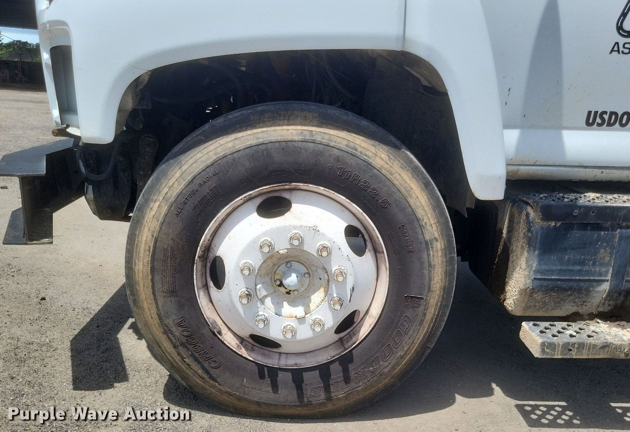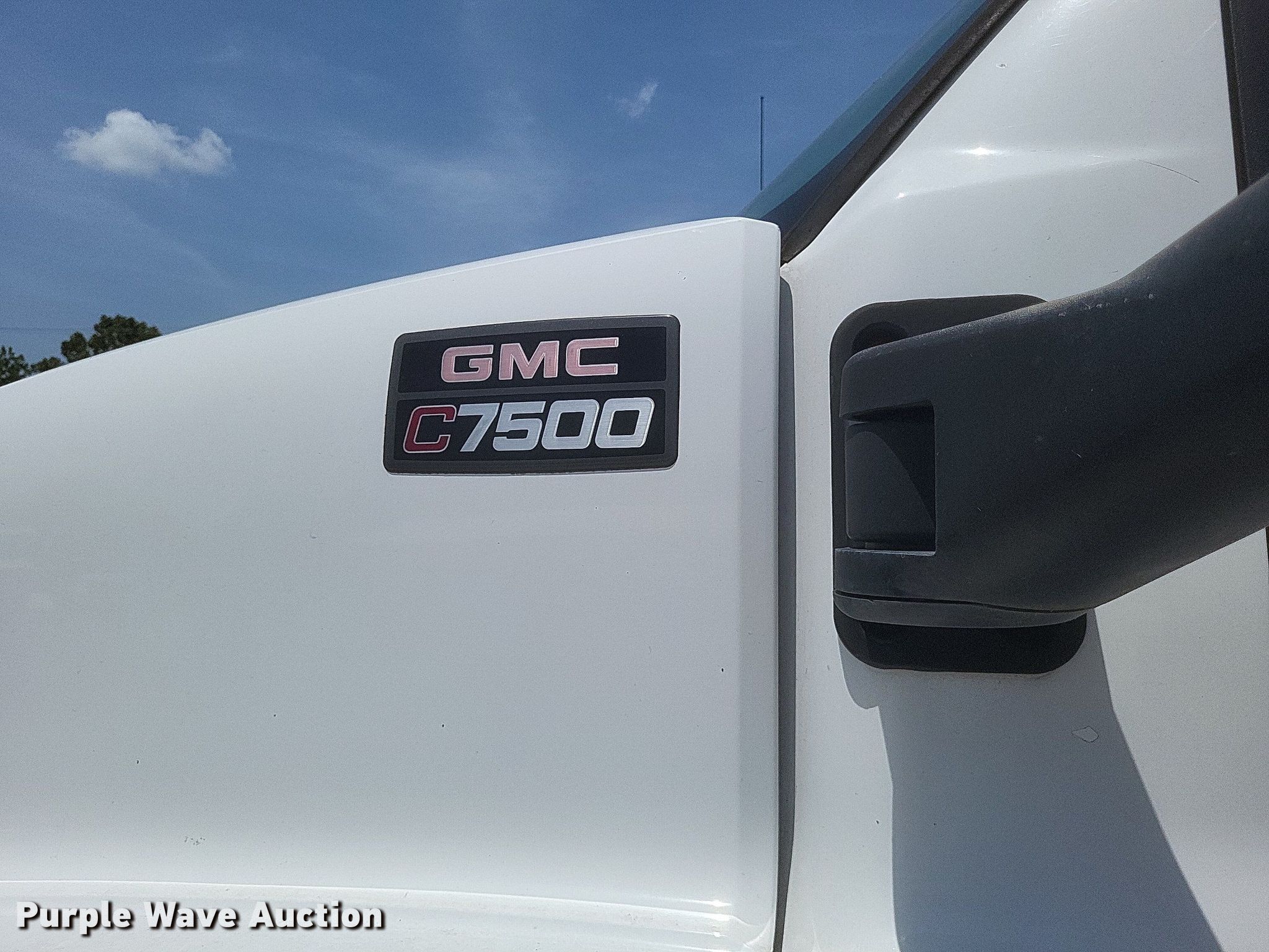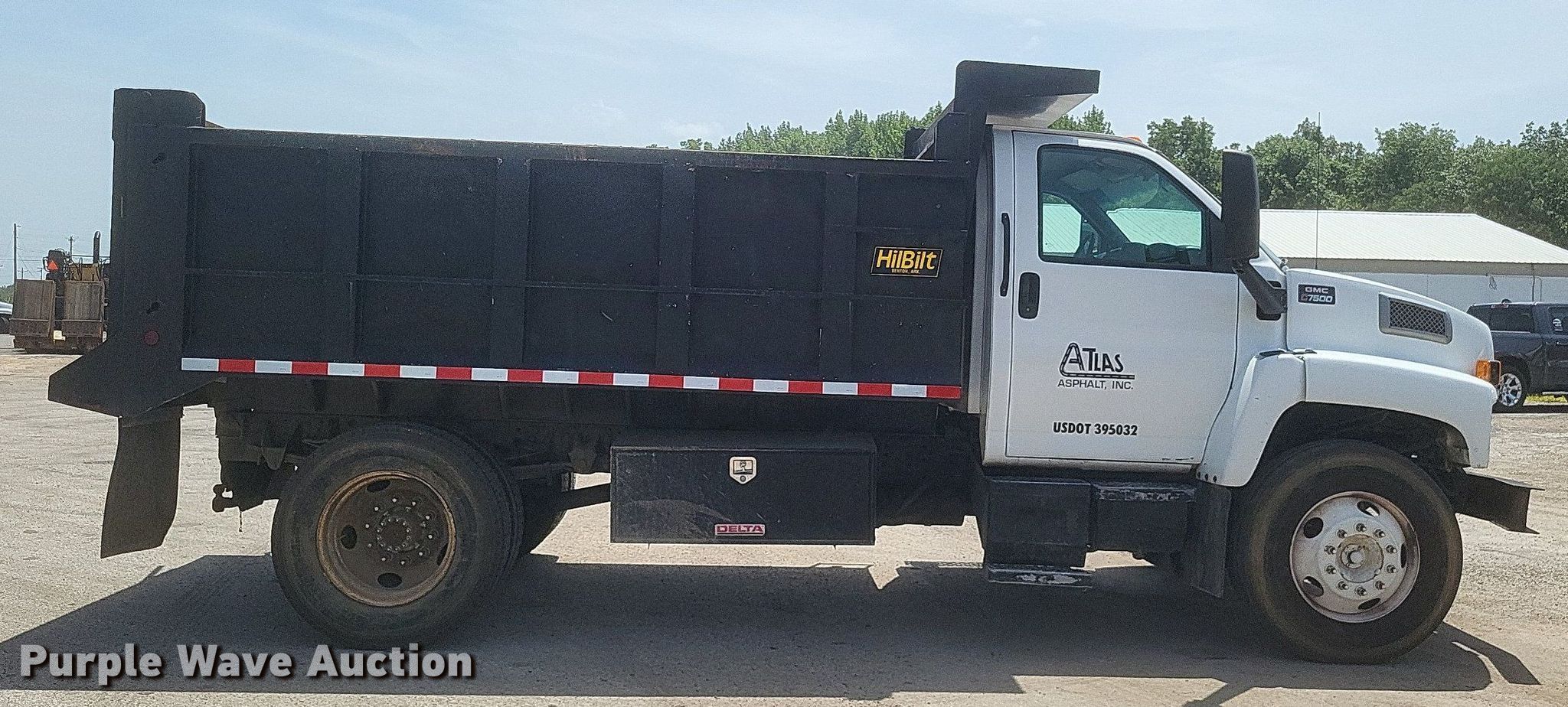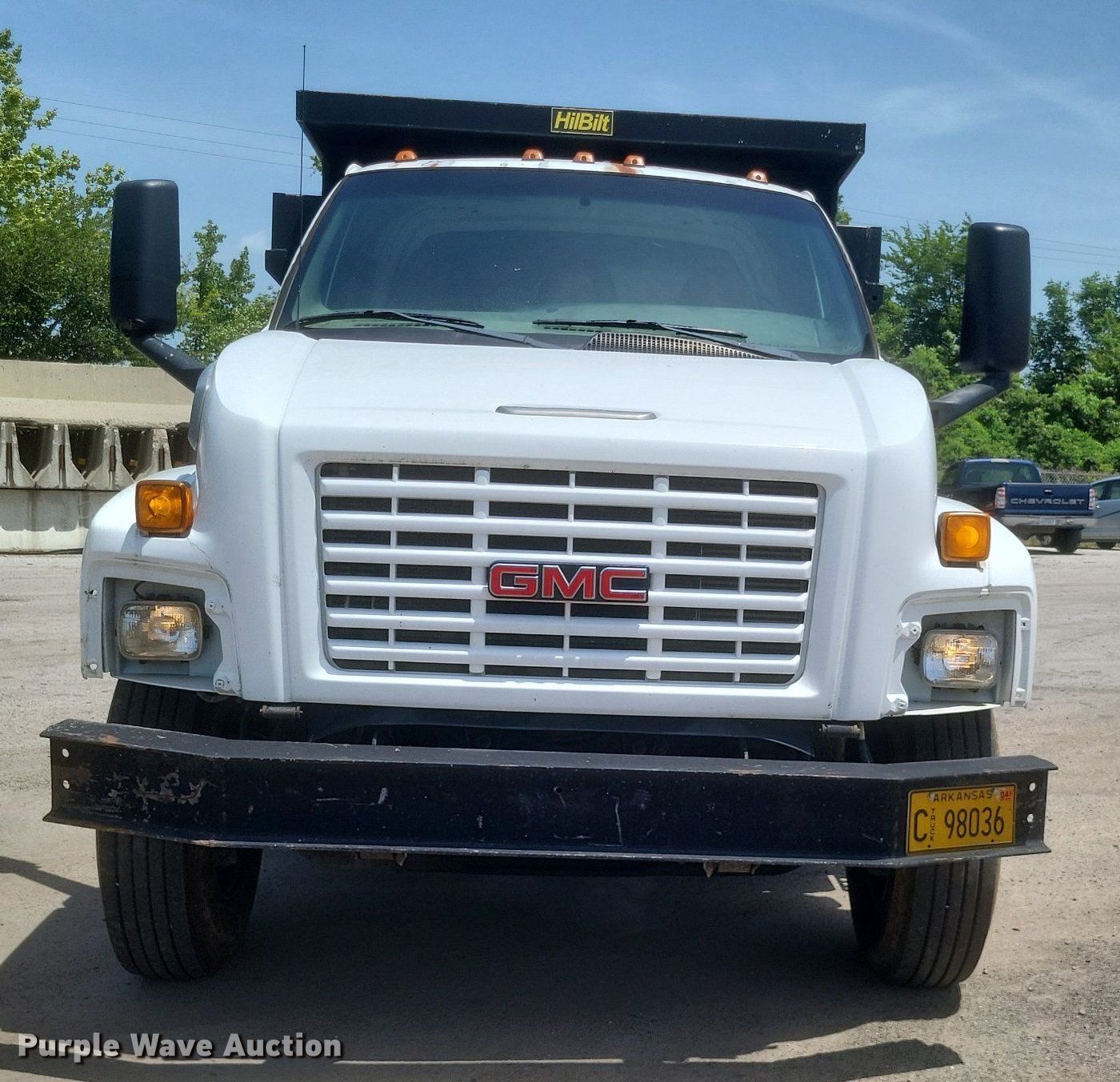 2004 GMC C7500 dump truck. Miles: 179,182 on odometer, VIN: 1GDJ7C1C24F902528. Engine Caterpillar C7, Displacement: 7.2L, Cylinders: 6, Fuel type: Diesel. Transmission Automatic. Chassis Axles: Single, Suspension: Spring, Brakes: Hydraulic, GVWR: 11,770 lbs FAWR: 8,000 lbs, RAWR: 19,000 lbs. Interior AC, Heat, Brake controller. Features Dump bed Hilbilt 1210-12, 12' x 8' W, Side height: 42", Bed type: Steel, Ram: Single, End gate: Manual. Tires Front: 11R22.5, Rear: 295/75R22.5. Notes Dash warning indicator: Service oil, Engine issues. Arkansas title. Title distribution may be delayed up to 30 days from verification of funds. Atlas Asphalt, Inc.. Jonesboro, AR 72401