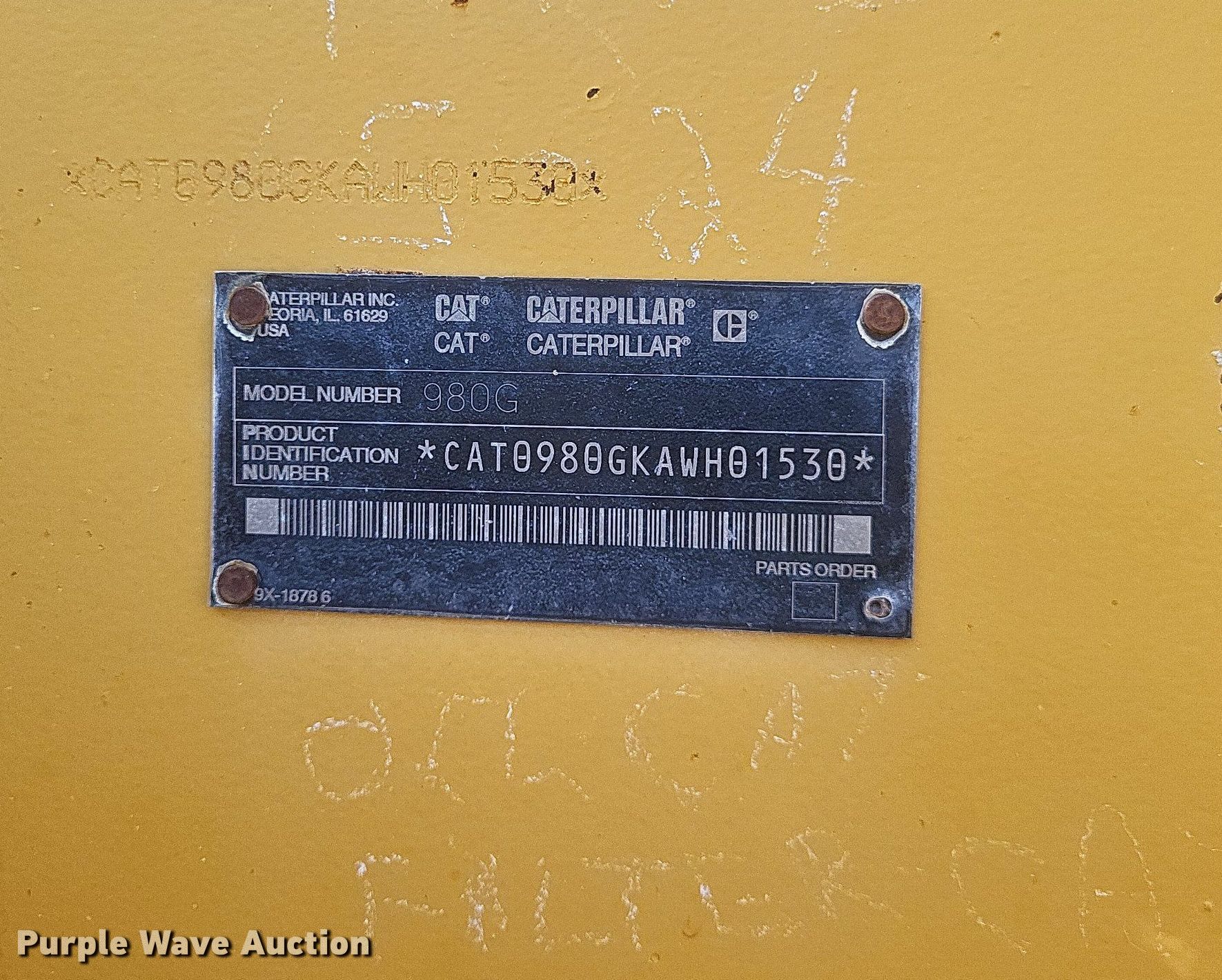 Purple Wave is selling a used Wheel Loader in Arkansas. This item is a 2004 Caterpillar 980G Series II wheel loader with the following: Hours: 32,292 on meter, Serial: CAT0980GKAWH01530