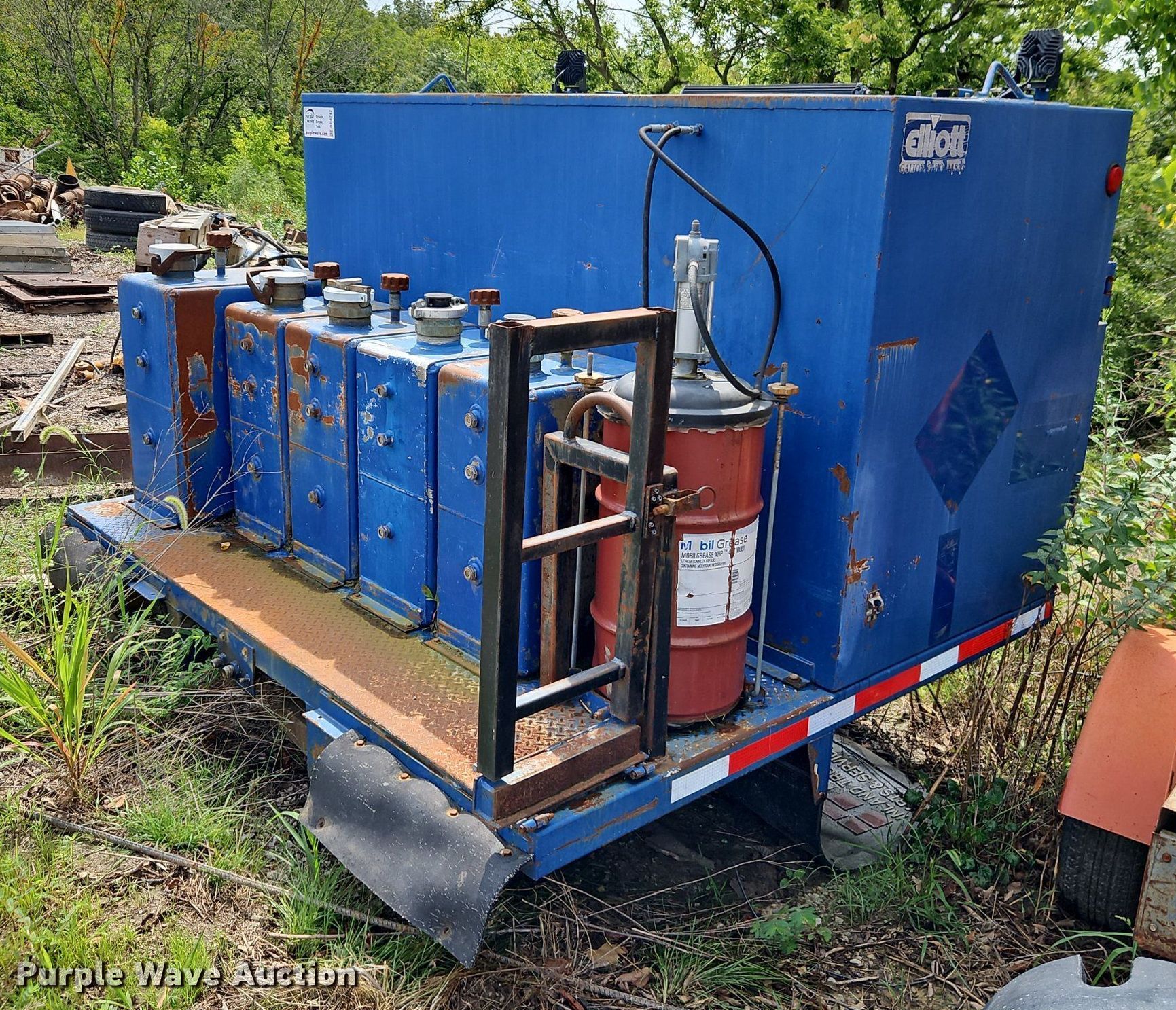 Purple Wave is selling a used Truck Part and Attach. in Missouri. This item is a Elliott fuel / lube truck distribution unit with the following: Oil/lube system, Hose reels, Nozzles, Pump, Reservoirs, Hydraulic fluid, Grease, Motor oil, Used oil, Nozzles, Pump,