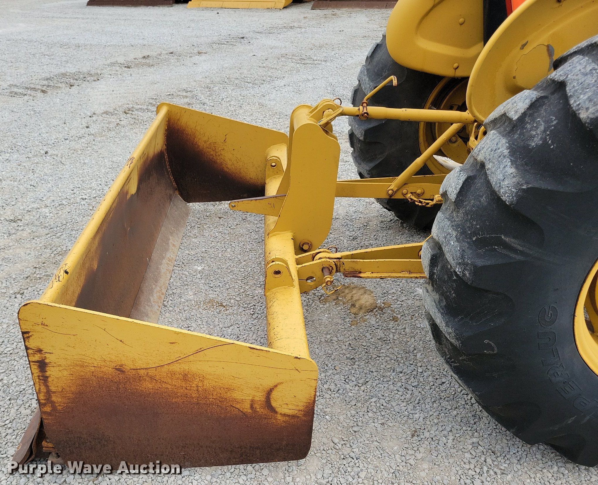 1987 Ford 345D landscape tractor. Hours: 2,074 on meter, Serial: C768854. Engine Cylinders: 3, Fuel type: Diesel. Transmission Manual, 6F - 4R. Chassis Differential lock. Features Loader Bucket Ford, Width: 67", Box blade Width: 80". Tires Front: 11L-16SL, Rear: 16.9-24. McCleary Excavating Co Inc. 11795 70th Ave. Blue Grass, IA 52726