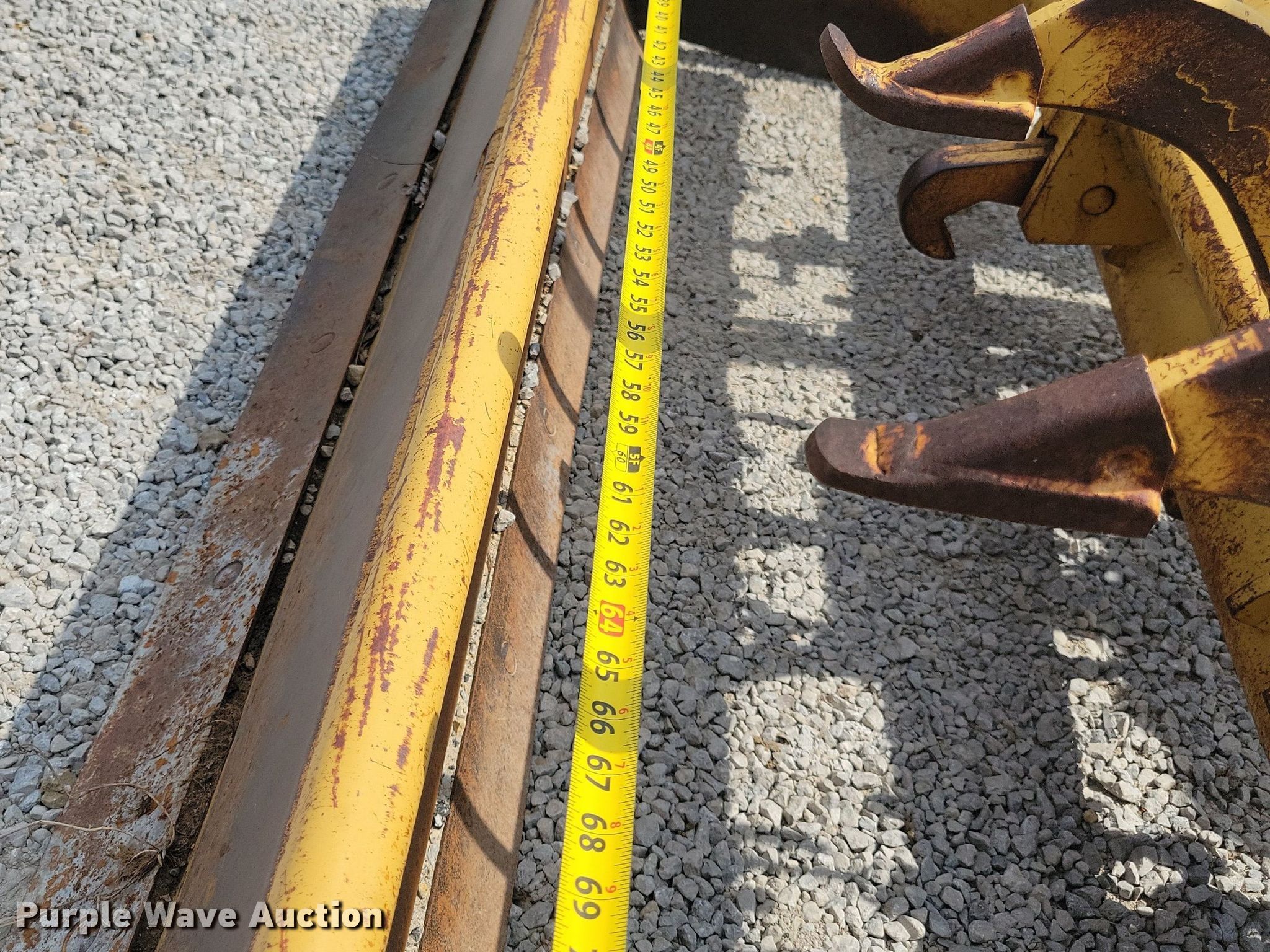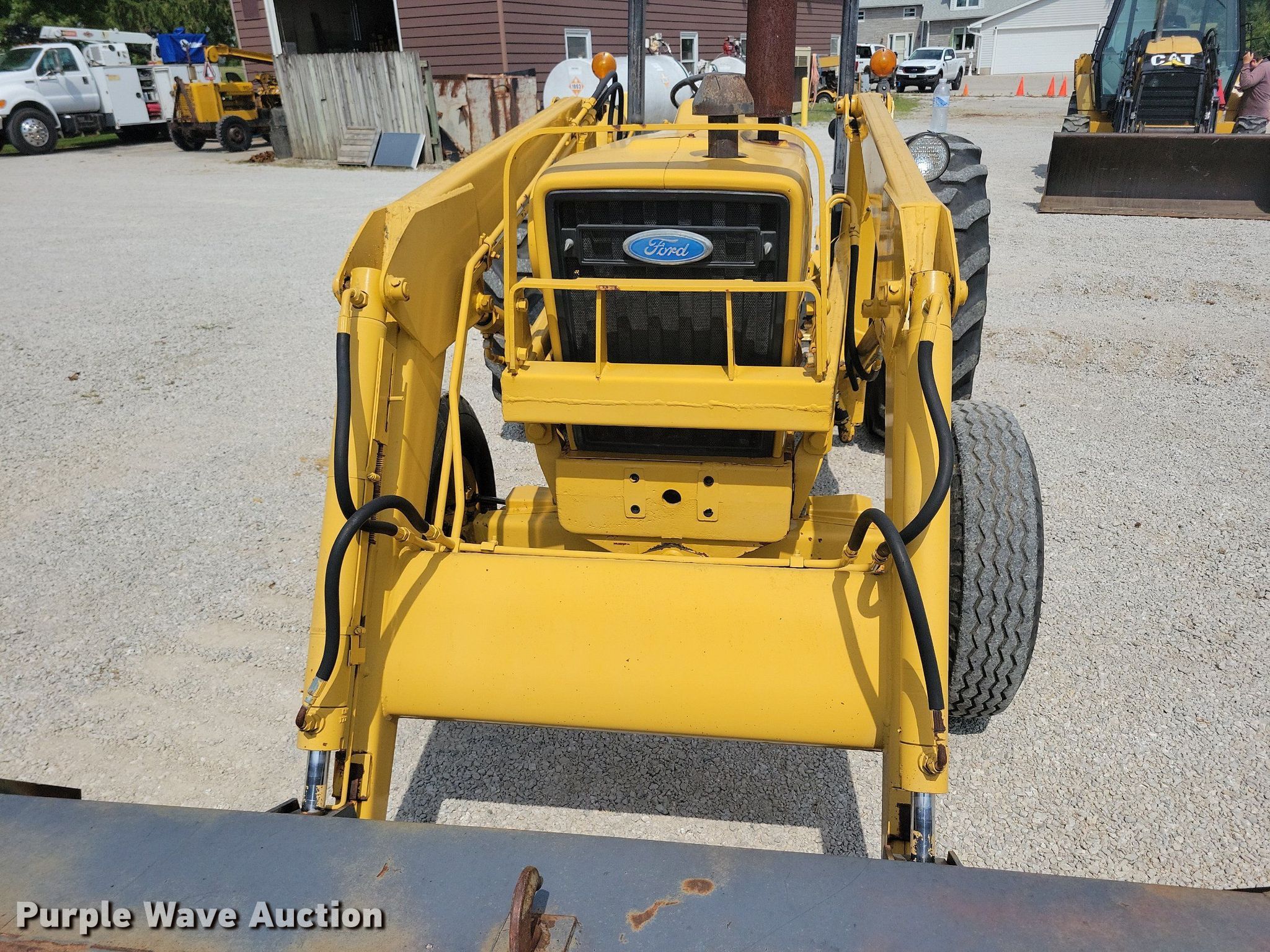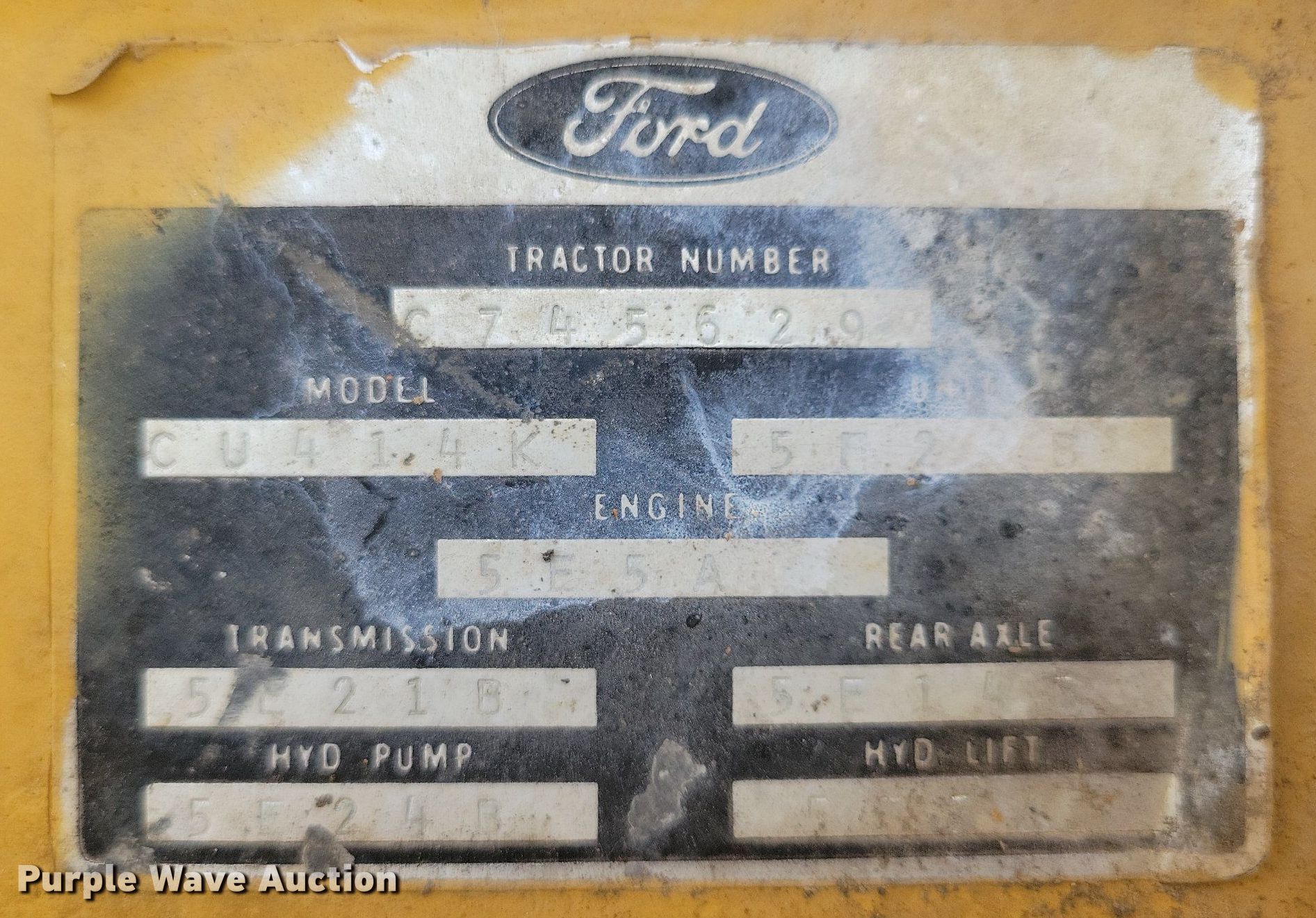 1985 Ford 345D landscape tractor. Hours: 3,114 on meter, Serial: C745629. Engine Cylinders: 3, Fuel type: Diesel. Transmission 6F - 4R. Chassis Differential lock. Features Loader Bucket Ford, Width: 67", Box blade Width: 79", Cutting edge: Rear, Ripper shanks: 7. Tires Front: 8.00-16, Rear: 14.9-28. McCleary Excavating Co Inc. 11795 70th Ave. Blue Grass, IA 52726
