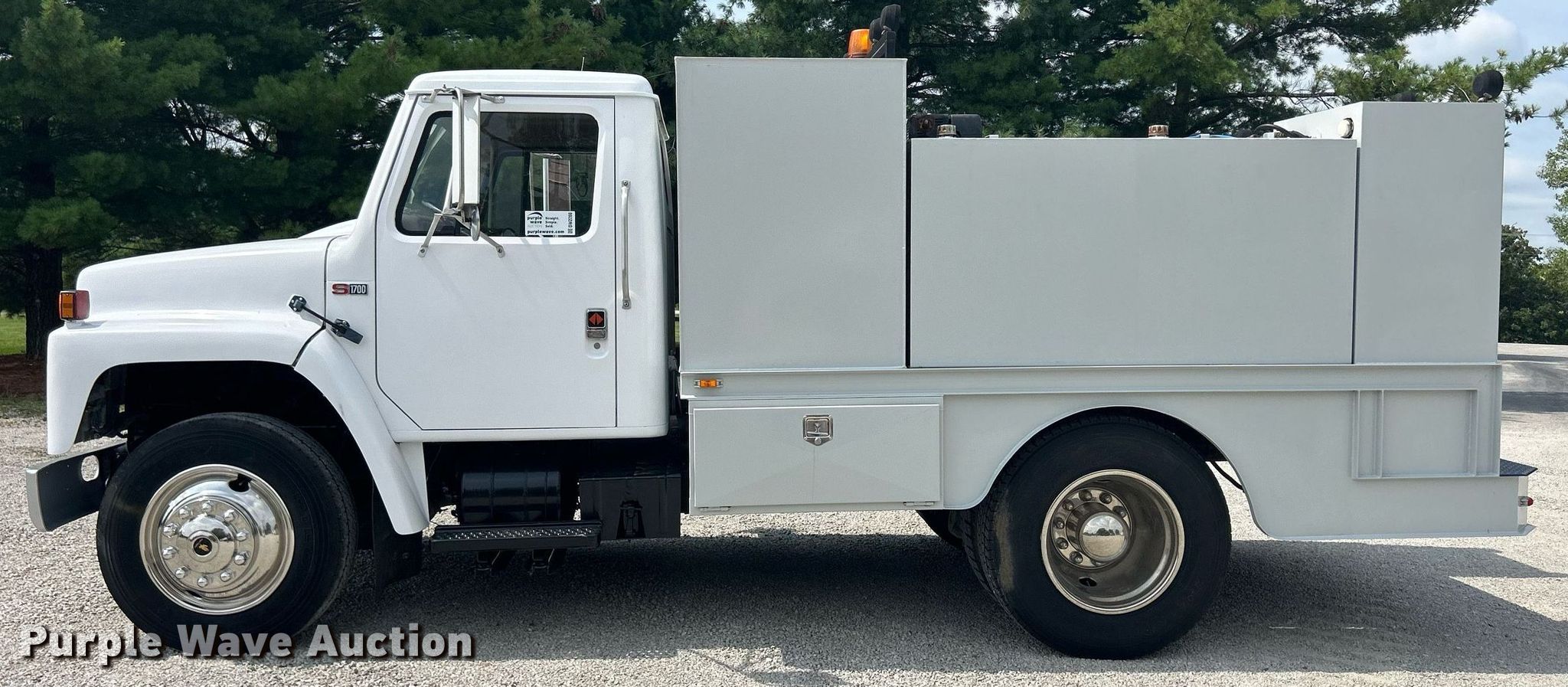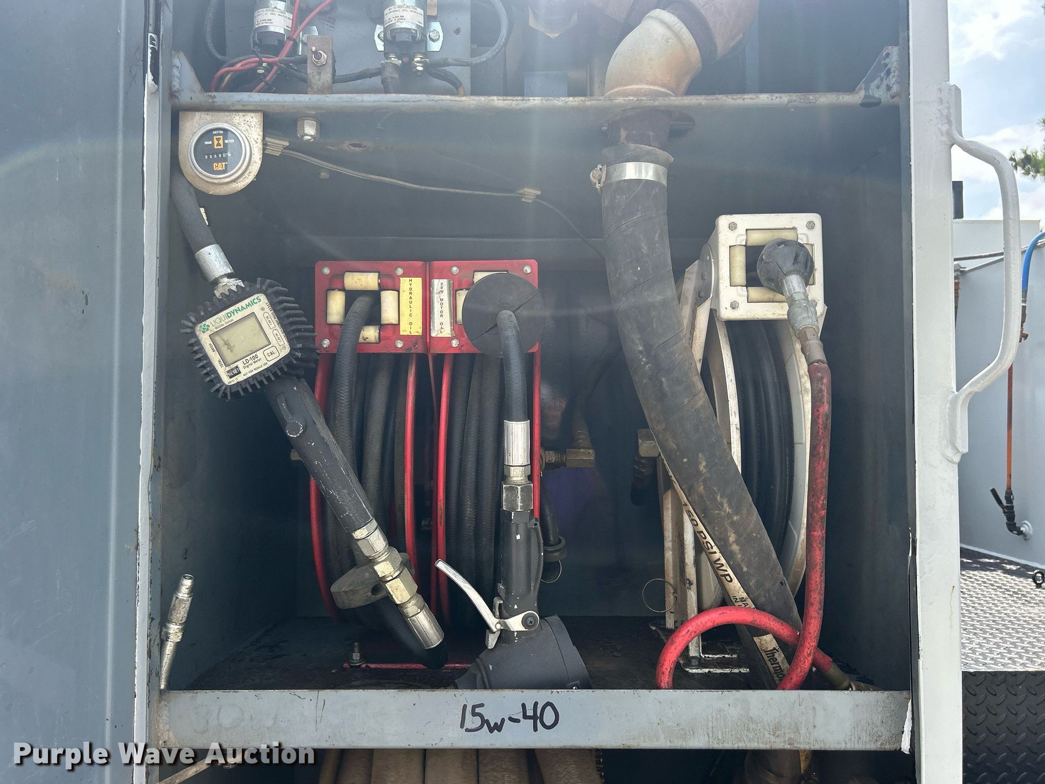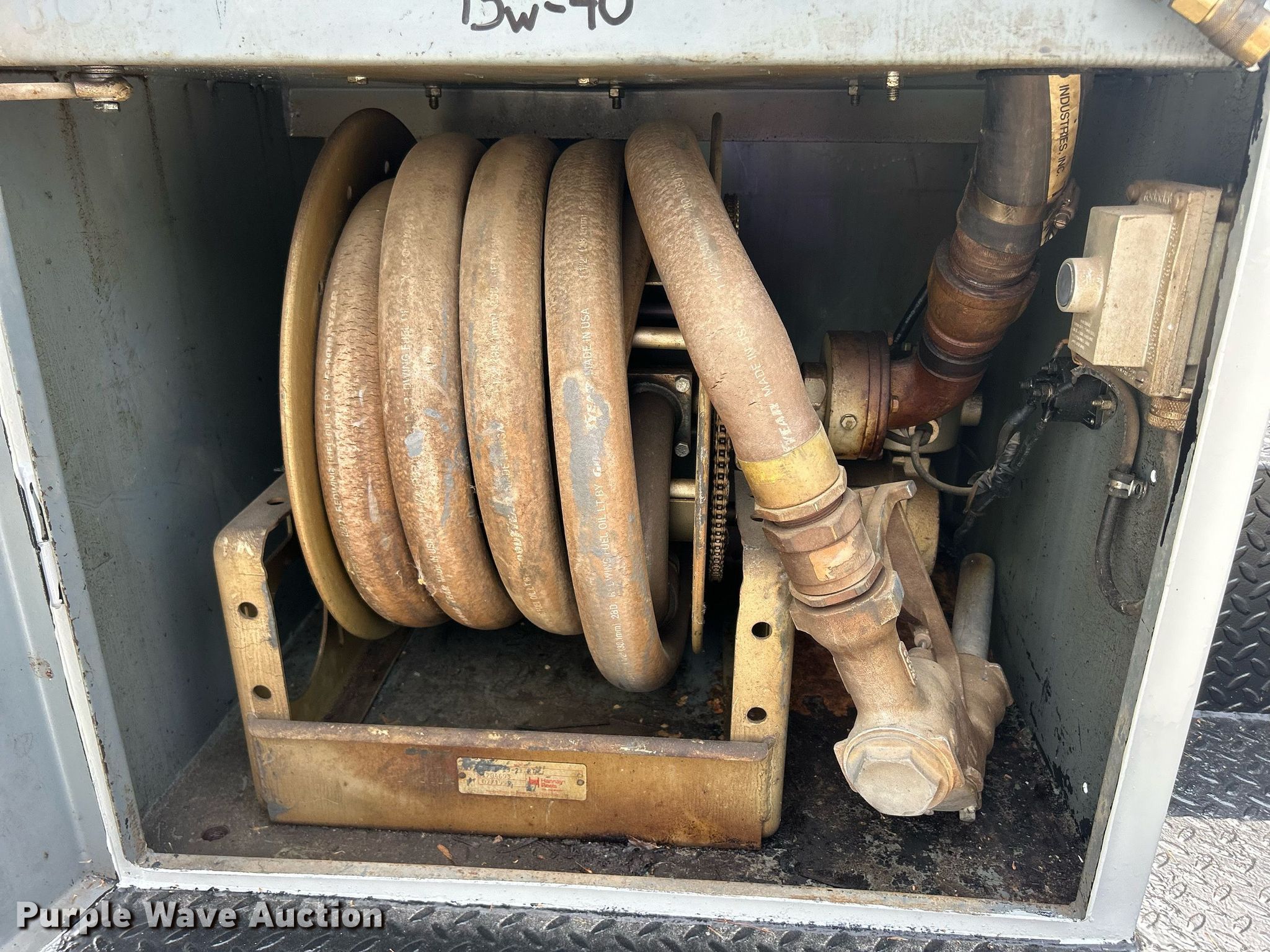 1987 International 1754 fuel / lube truck. Miles: 213,873 on odometer, VIN: 1HSLCHXN2HH494533. Engine International, Displacement: 9.0L, Cylinders: 8, Fuel type: Diesel. Transmission Manual, Speed: 5, plus 2. Chassis Axles: Single, Suspension: Spring, Brakes: Air. Interior Heat. Features Bed / tank Capacity: 1,200 gallons, 12' L x 99" W, Compartments: 5, Hose reels: 6, Nozzles, Oil/lube reservoirs Hydraulic fluid, Motor oil, Used oil, Air Compressor Engine Honda GX340, Fuel type: Gas, Hp: 11.. Tires Front: 255/80R22.5, Rear: 295/75R22.5. Notes Pumps not included. Iowa title. McCleary Excavating Co Inc. 11795 70th Ave. Blue Grass, IA 52726