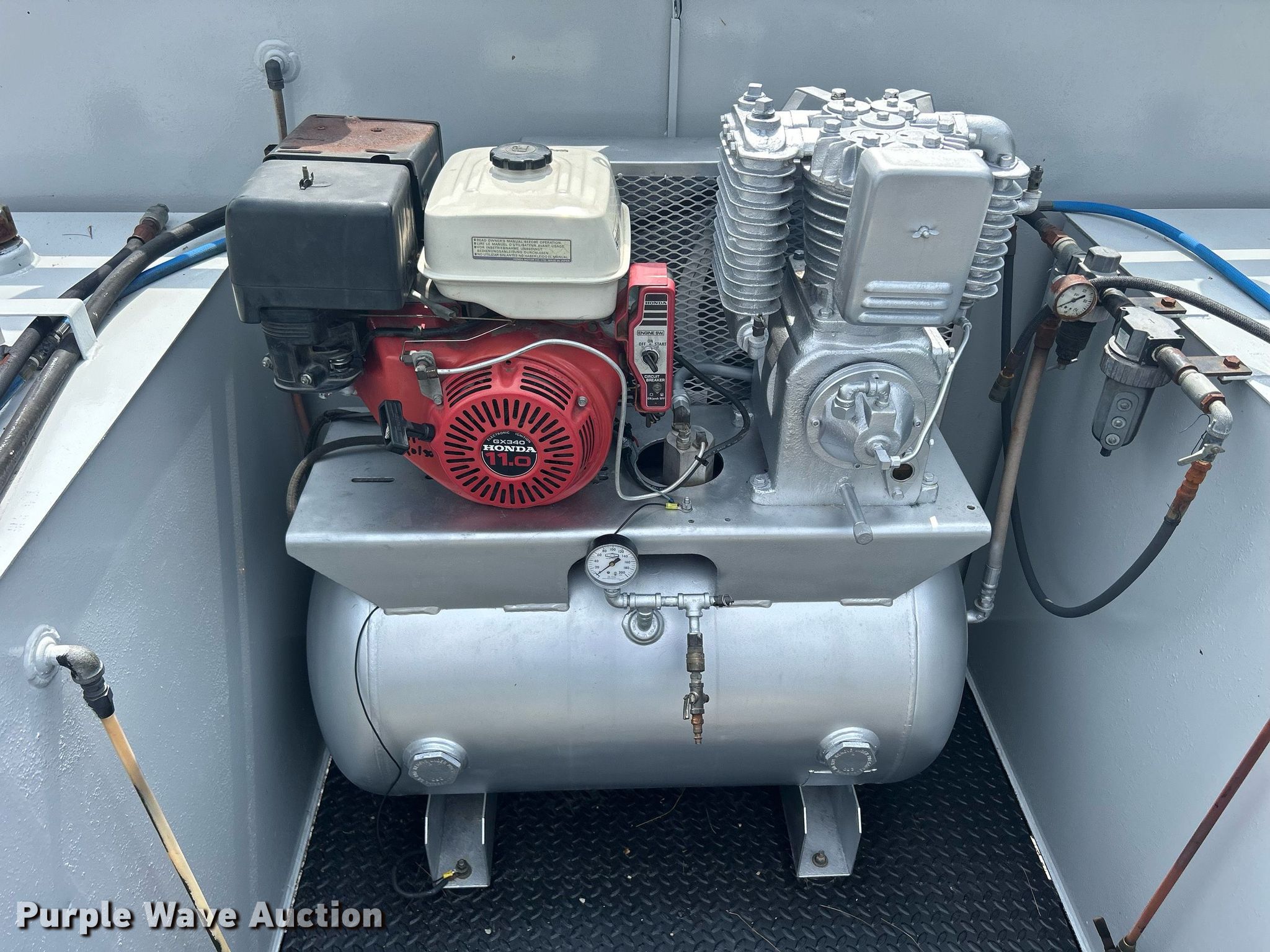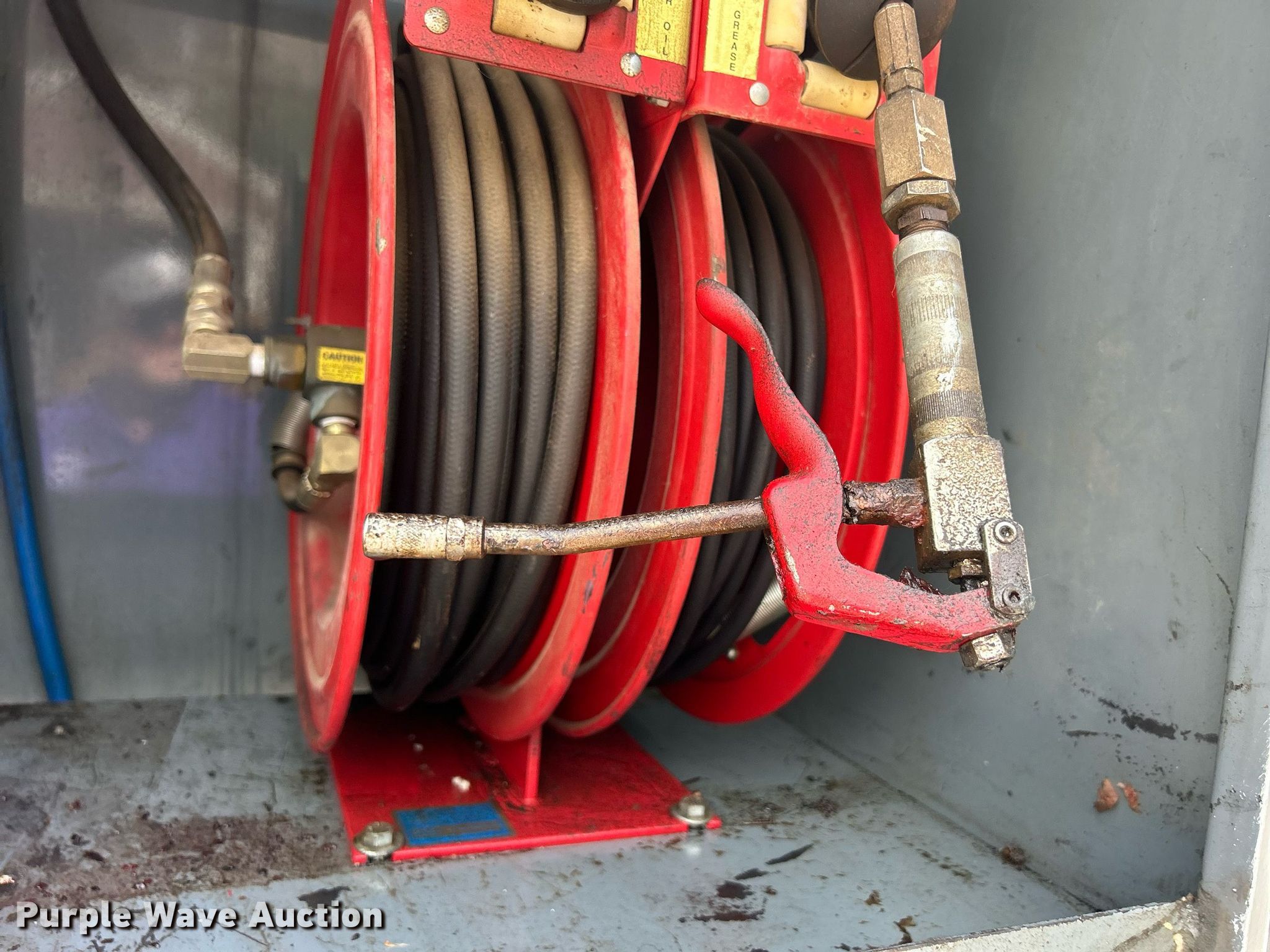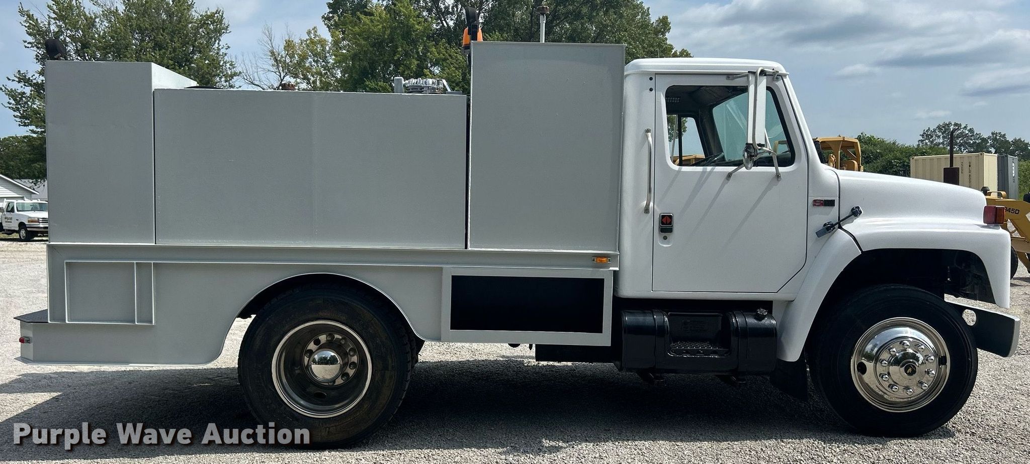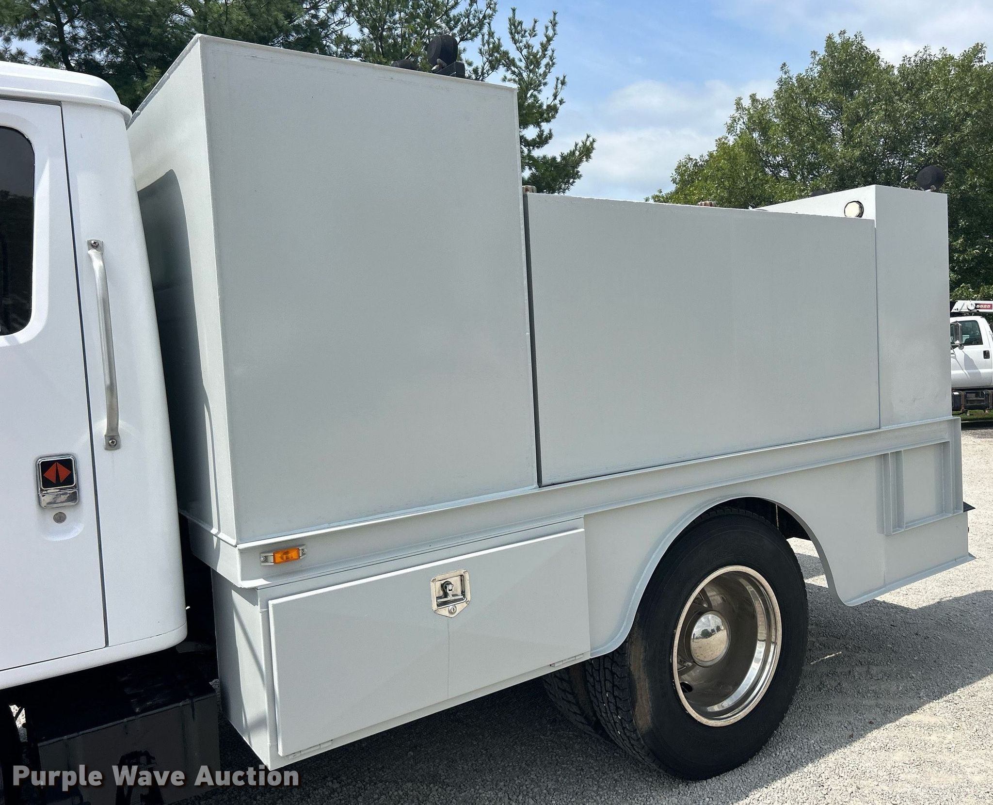 1987 International 1754 fuel / lube truck. Miles: 213,873 on odometer, VIN: 1HSLCHXN2HH494533. Engine International, Displacement: 9.0L, Cylinders: 8, Fuel type: Diesel. Transmission Manual, Speed: 5, plus 2. Chassis Axles: Single, Suspension: Spring, Brakes: Air. Interior Heat. Features Bed / tank Capacity: 1,200 gallons, 12' L x 99" W, Compartments: 5, Hose reels: 6, Nozzles, Oil/lube reservoirs Hydraulic fluid, Motor oil, Used oil, Air Compressor Engine Honda GX340, Fuel type: Gas, Hp: 11.. Tires Front: 255/80R22.5, Rear: 295/75R22.5. Notes Pumps not included. Iowa title. McCleary Excavating Co Inc. 11795 70th Ave. Blue Grass, IA 52726