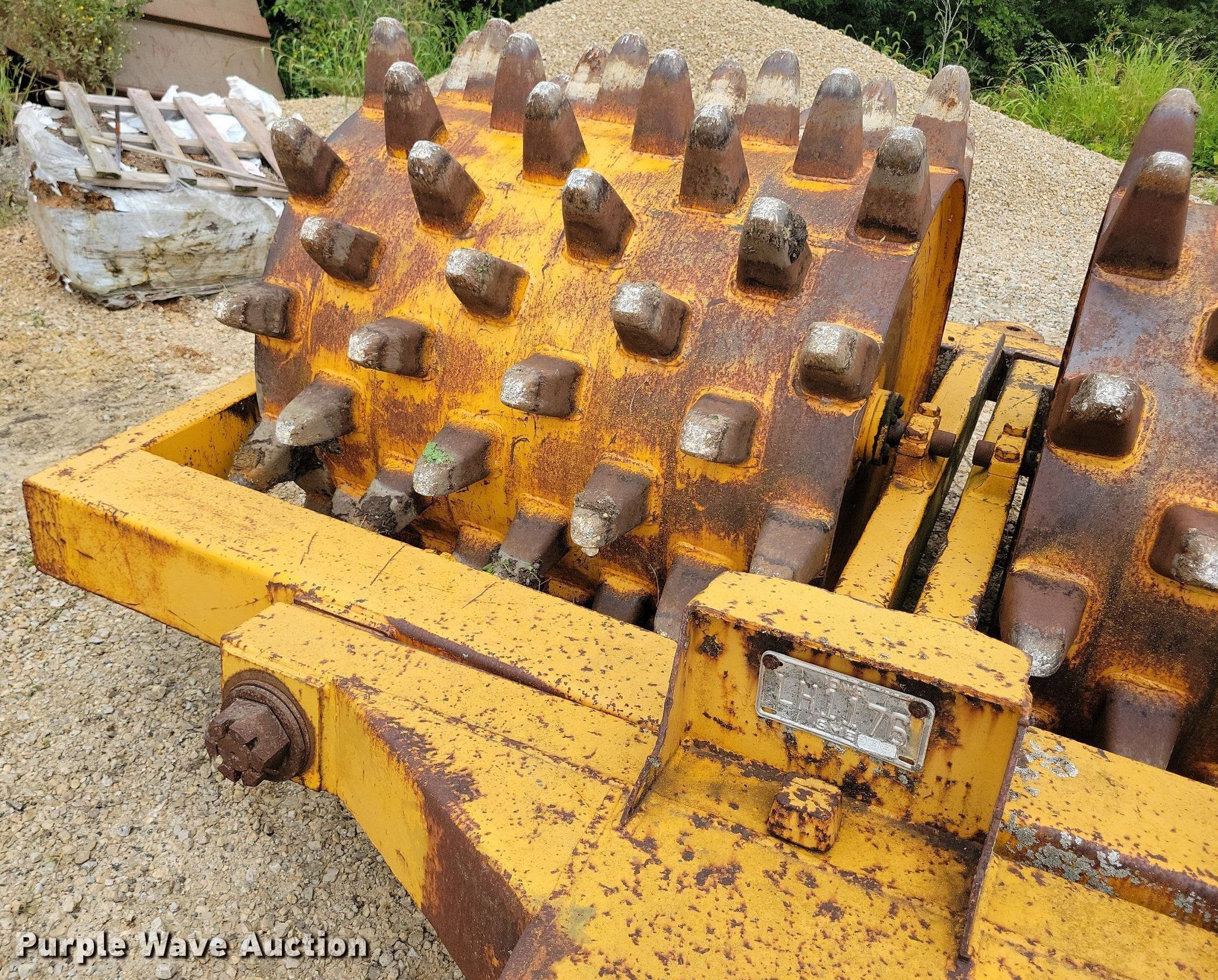 Purple Wave is selling a used Pull Type Roller Compactor in Iowa. This item is a American Steel Works wedge foot roller with the following: Drum: Wedge foot, Side drum, Width: 48", Diameter: 40", Side drum, Width: 48", Diameter: 40", Drum scrapers: Rear