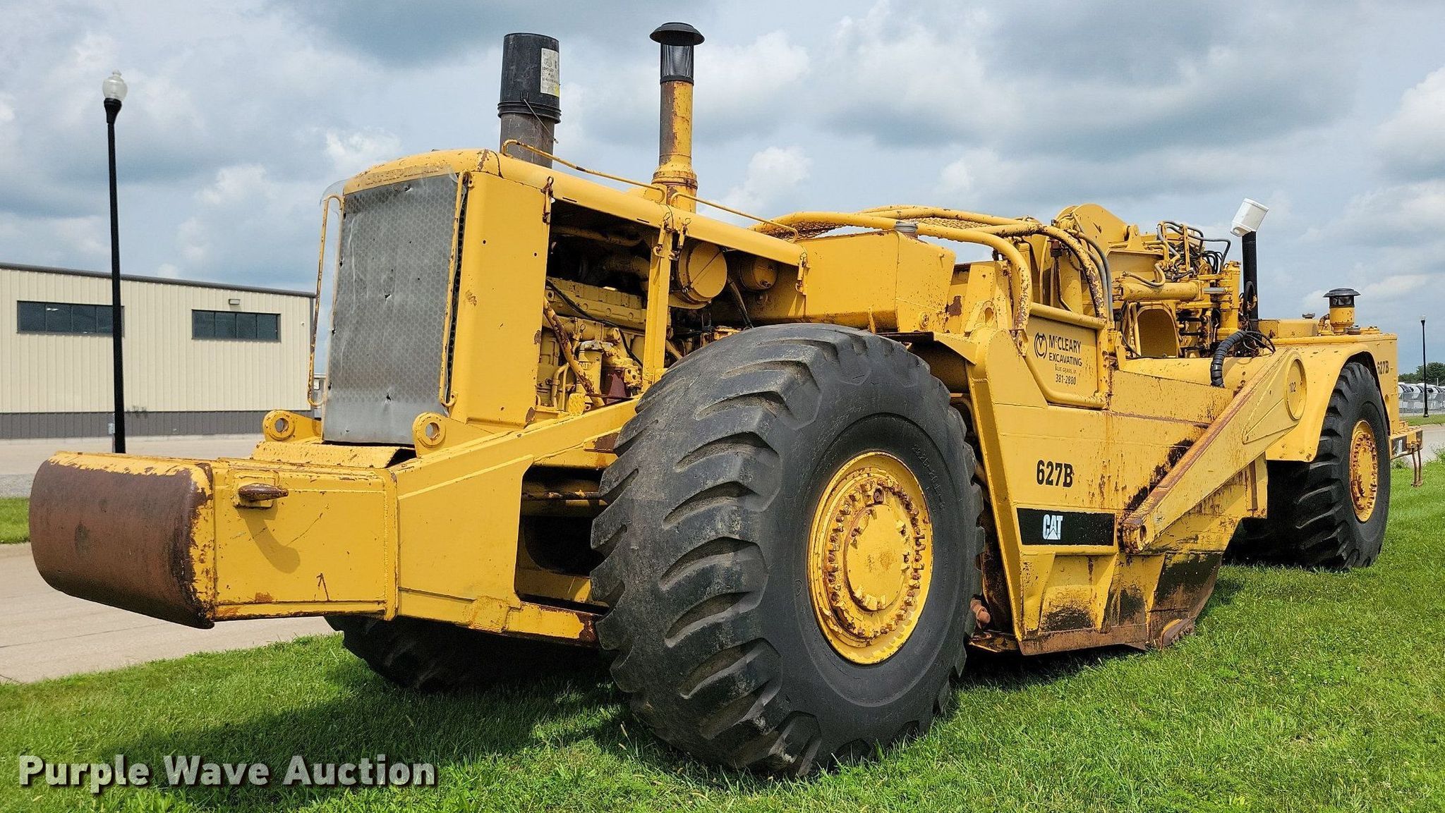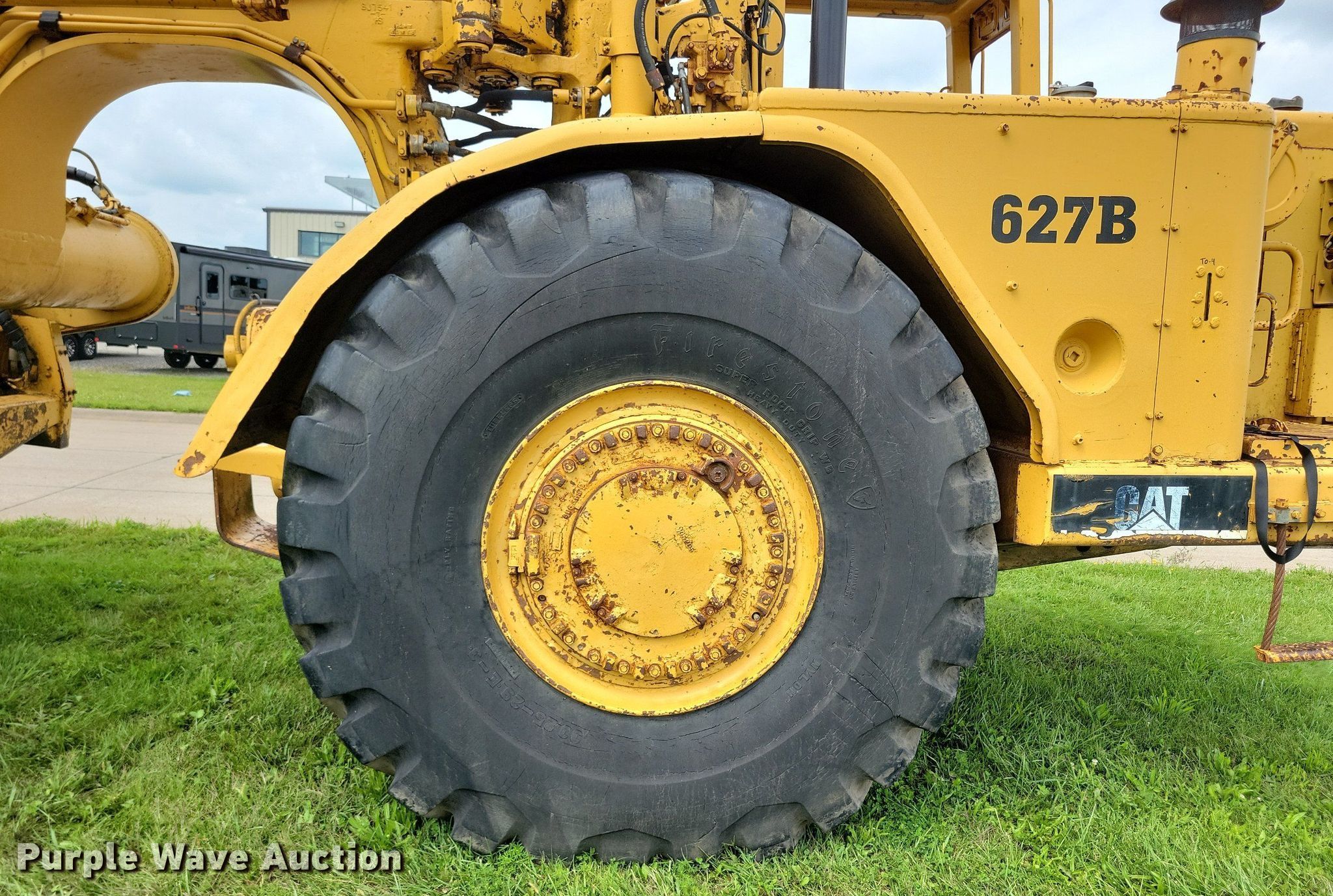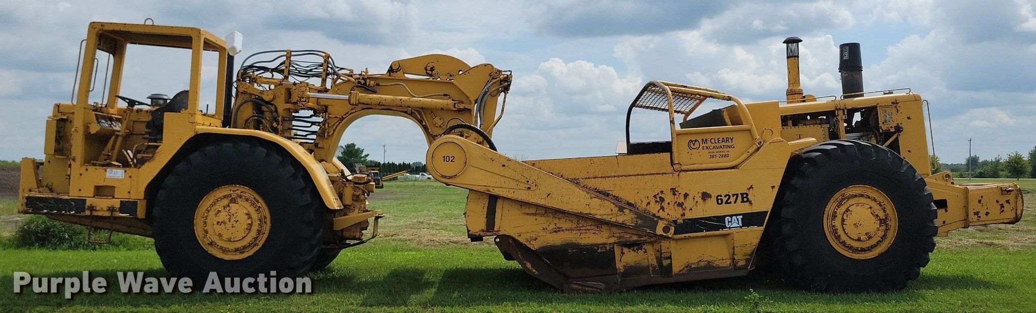 Purple Wave is selling a used Conventional Scraper in Iowa. This item is a 1976 Caterpillar 627B conventional scraper with the following: Hours: 5,530 on meter, Serial: 14S635, Unit #: 102
