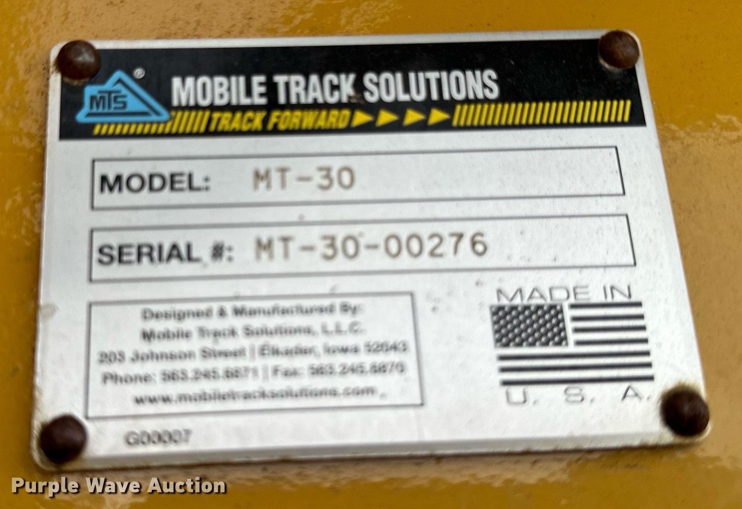 2016 MTS MT-30 scraper. Serial: MT-30-00276. Chassis Brakes: Hydraulic. Features Cushion hitch, Hydraulic lift, Rear push block, Hitch: Scraper. Tires Size: 29.5R29. Notes Tractor not included. McCleary Excavating Co Inc. Blue Grass, IA 52726