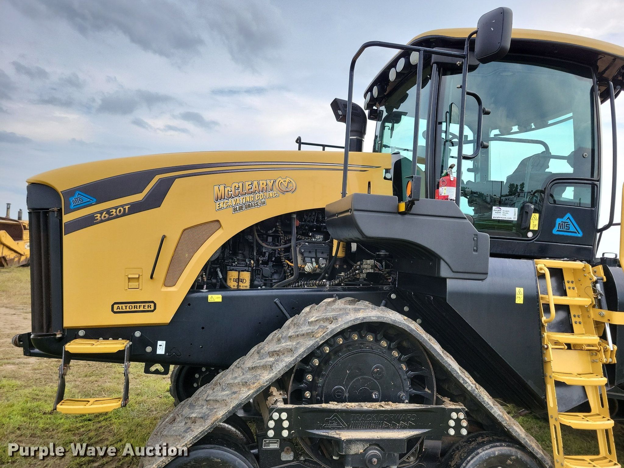 2016 MTS 3630T 4WD tractor. Hours: 6,079 on meter, Serial: MTS-T-01019. Engine Caterpillar C18 Acert, Serial: N8F00669, Displacement: 18.1L, Cylinders: 6, Fuel type: Diesel, HP: 630, kW: 470. Transmission Powershift, 16F - 4R, Differential lock. Operators station AC, Heat. Features Seven pin outlet, Hydraulic remote sets Rear: 3. Tracks Brand: Camso, Width: 30". Notes Scraper not included. McCleary Excavating Co Inc. Blue Grass, IA 52726